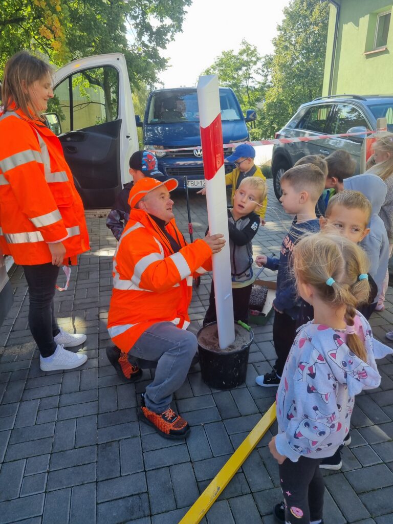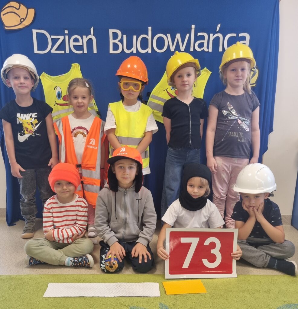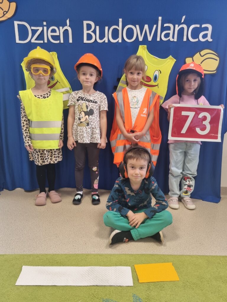 „Dzień Budowlańca”, który świętowany jest 25 września był okazją, by przedszkolakom przedstawić ten ważny zawód. W ramach cyklu zajęć „Poznajemy pracę naszych rodziców” mieliśmy zaszczyt gościć mamę Olusia, która pokazała dzieciom, jak wygląda proces budowania drogi, jakie pojazdy i maszyny ułatwiają pracę na budowie oraz jak odpowiednio się ubrać, aby zapewnić bezpieczeństwo podczas pracy. Dzieci miały możliwość przymierzenia kasków i innych elementów stroju budowlańca, a także oglądały narzędzia i próbowały posługiwać się nimi. Na koniec przedszkolaki dostały upominki i dyplomy przygotowane przez mamę i Olusia z naszej grupy.