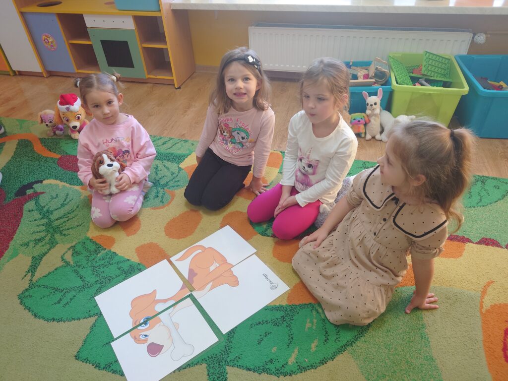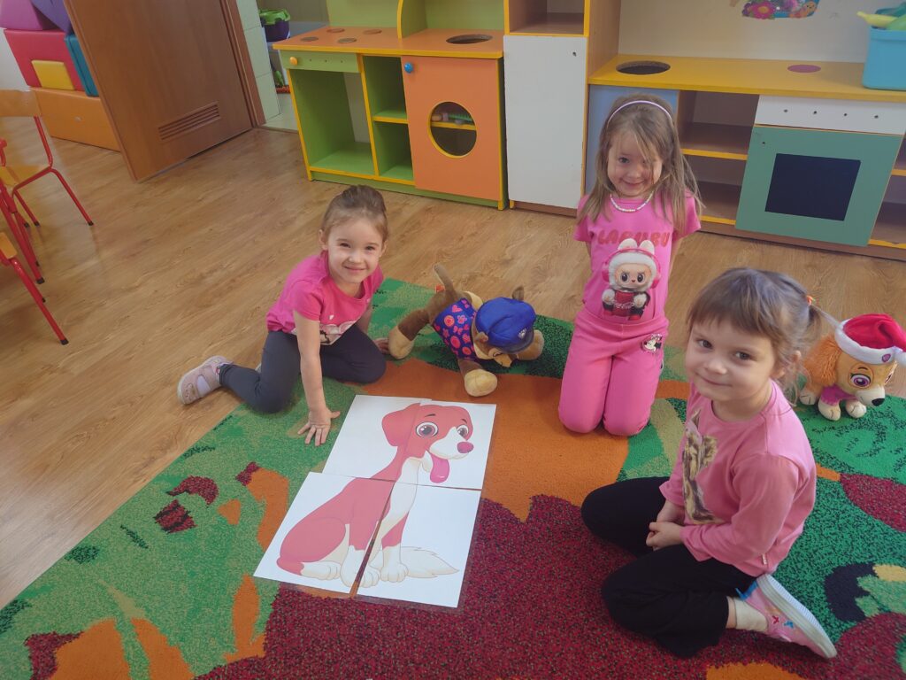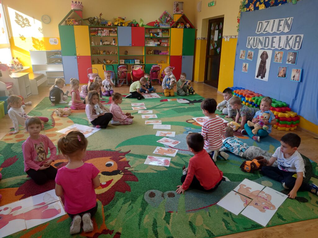 W dniu 24 października w grupie Fiołki obchodziliśmy Dzień Kundelka. Tego dnia dzieci przyniosły do przedszkola swoje pluszowe pieski-kundelki. Podczas zajęć, zabaw i gier tematycznych uczyły się jak dbać o swoich małych pupili, z radością opowiadały o swoich psach posiadanych w domach. Dowiedziały się również o tym, jak ważny jest szacunek i chęć okazywania pomocy zwierzętom.