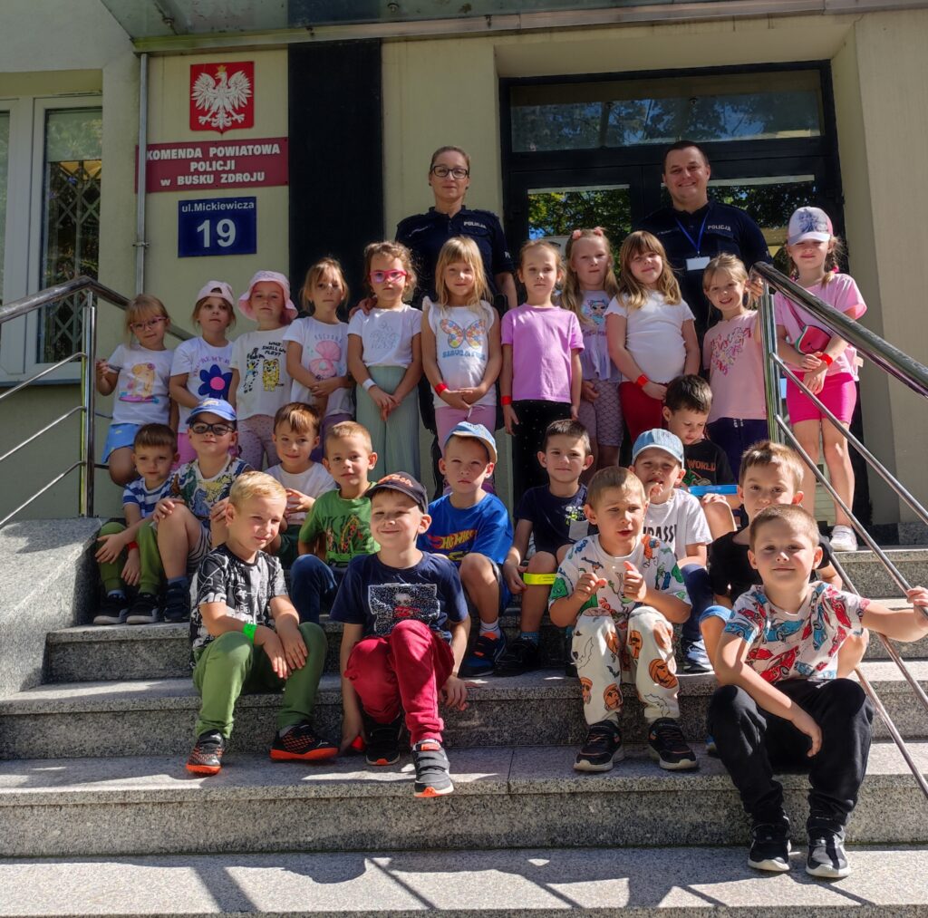 W ramach cyklu zajęć „Poznajemy pracę naszych rodziców” , na zaproszenie mamy Igora i taty Olgierda, przedszkolaki z grupy V – „Bławatków” i VI – „Rumianków” odwiedziły Komendę Powiatową Policji w Busku-Zdroju, gdzie mogły zobaczyć i poznać miejsca, które na co dzień dla cywilów są niedostępne.