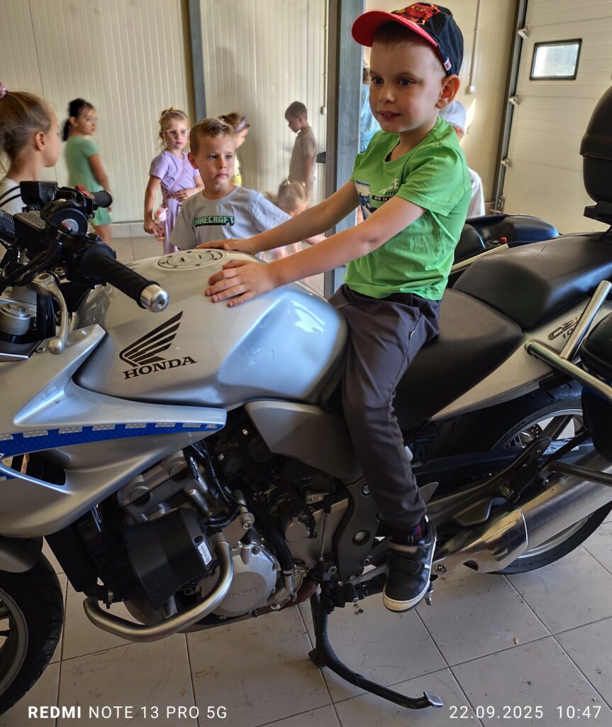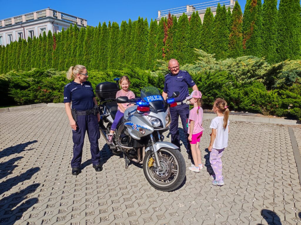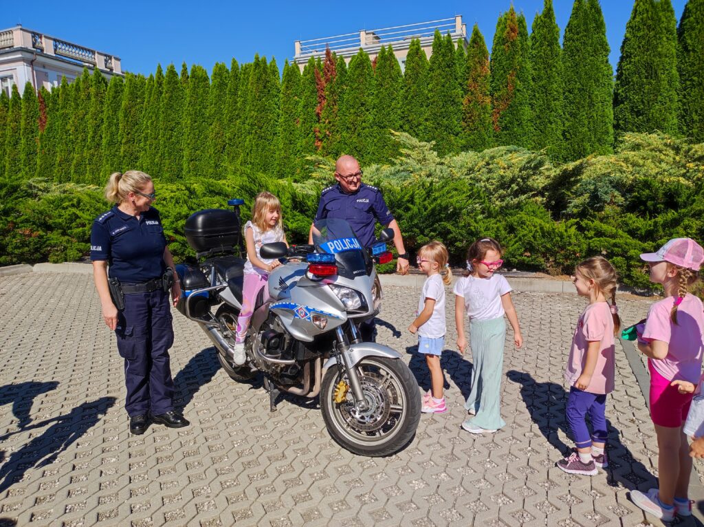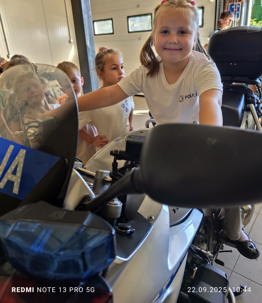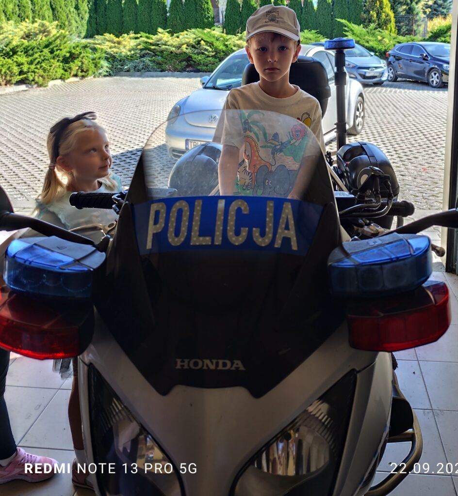 Na początku przedszkolaki zobaczyły stanowisko kierowania i dowiedziały się na czym polega praca policjantów pełniących tam służbę. Kolejnym miejscem był parking przed komendą i stojące na nim policyjne pojazdy. Każdy mógł wejść do samochodu policyjnego, usłyszeć i zobaczyć sygnały dźwiękowe i świetlne. Duże zainteresowanie wśród dzieci wzbudziły również policyjne motory. Z ogromnym zaciekawieniem słuchały opowiadań policjantów, dzięki którym zapoznały się ze specyfiką służby policjantów ruchu drogowego i prewencji. Dzieci zostały zaproszone również do gabinetu Komendanta Policji, który serdecznie ich powitał i poczęstował cukierkami. Pełni wrażeń, bogatsi o nową wiedzę wróciły do przedszkola.