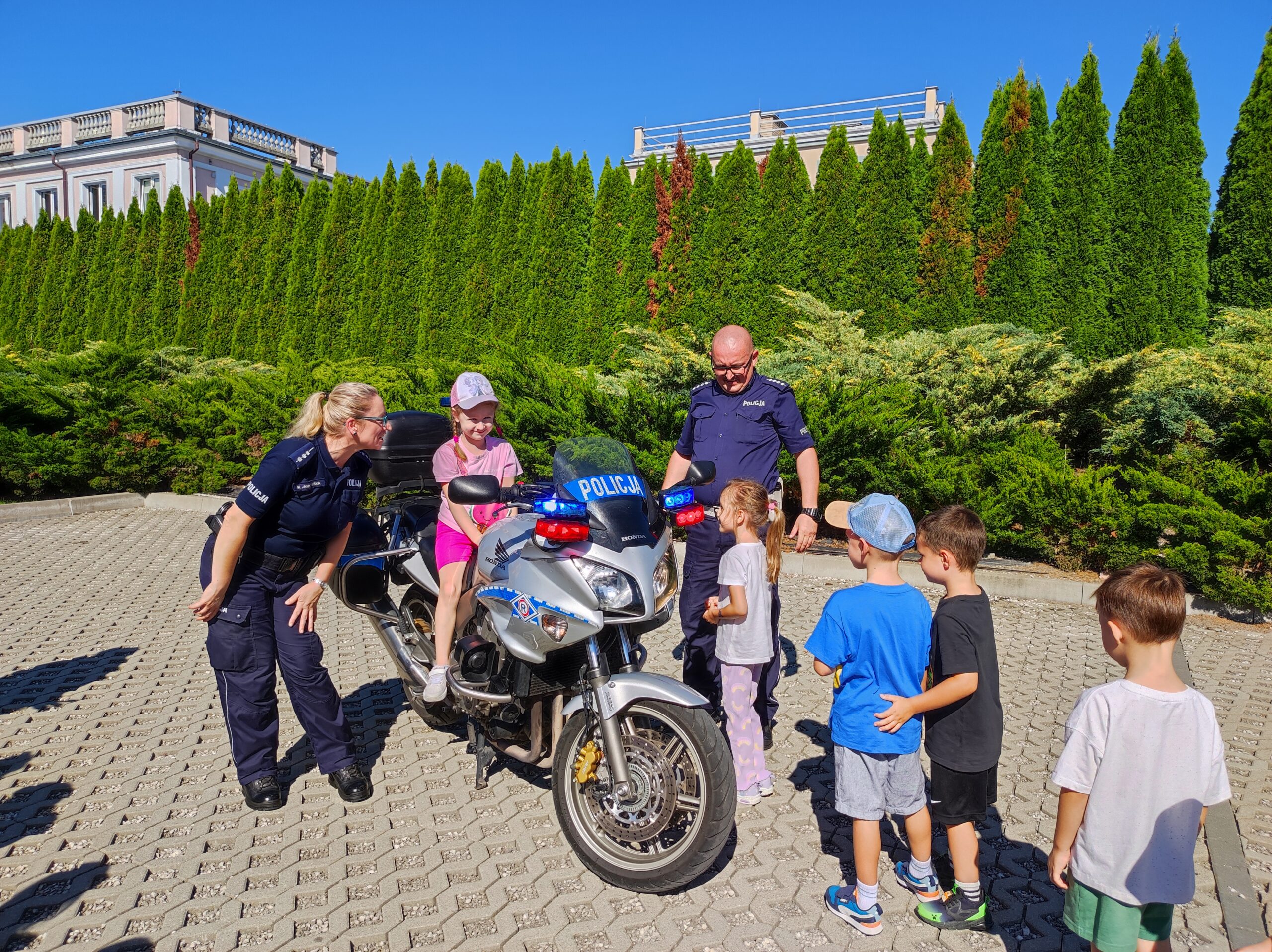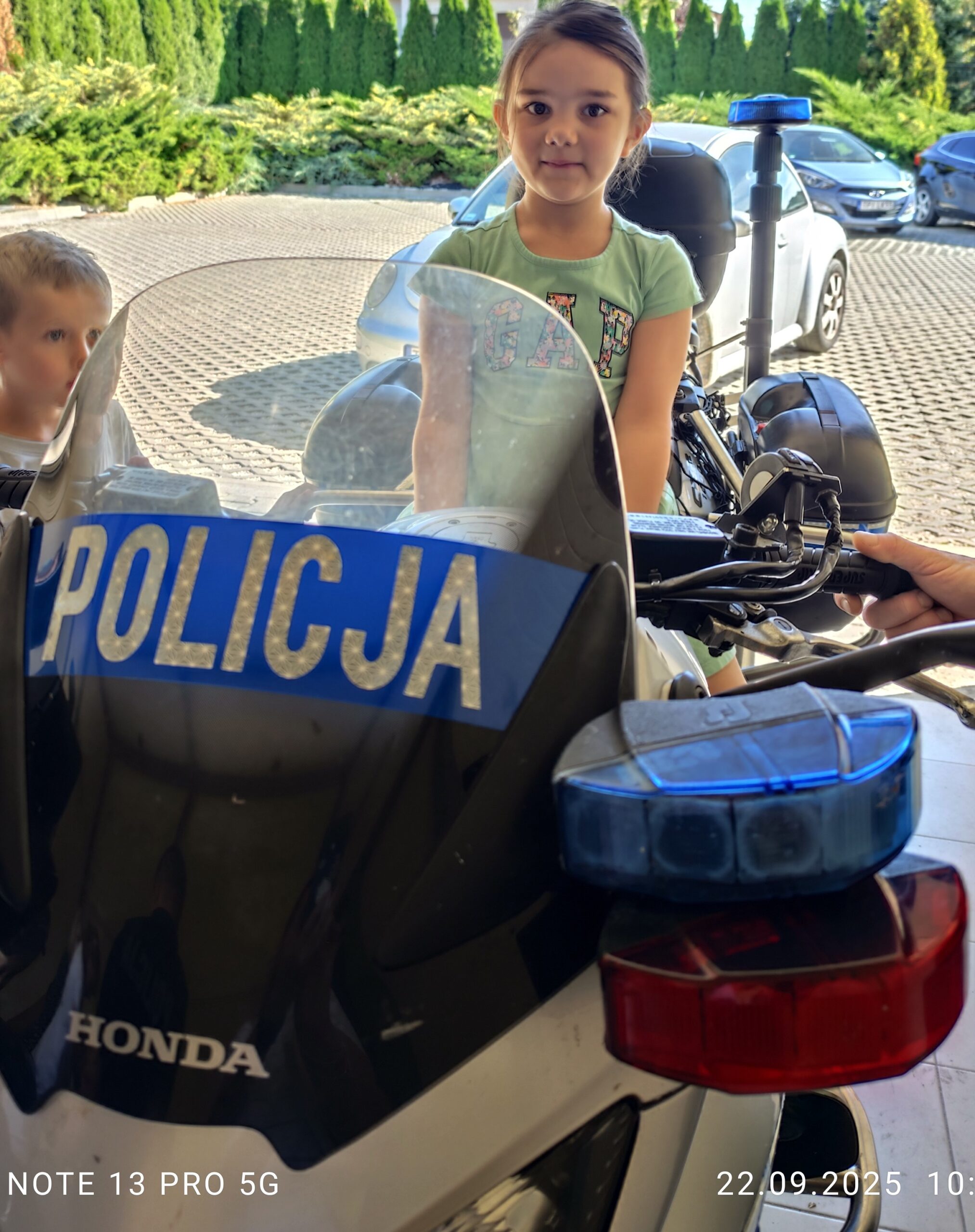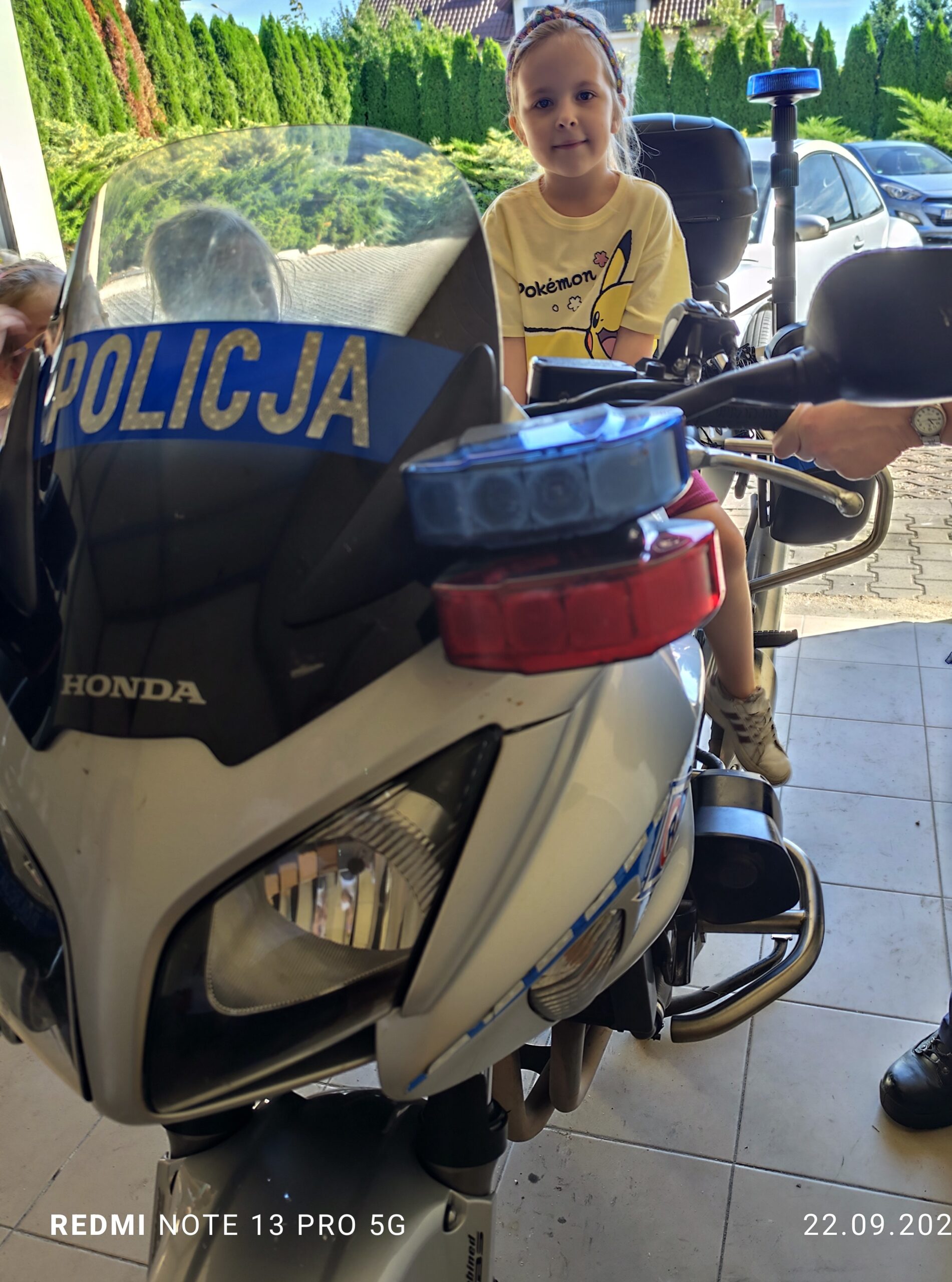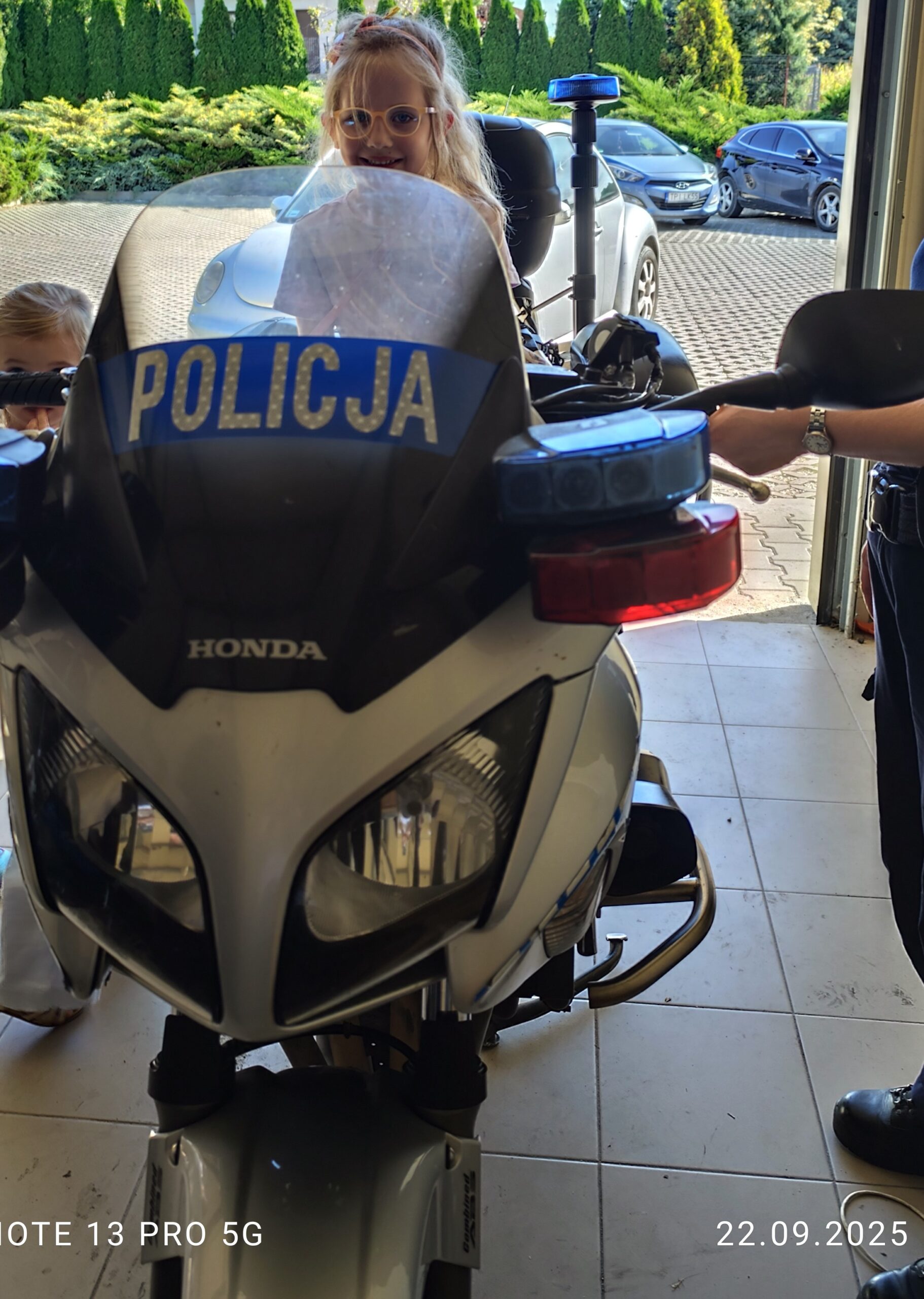 Na początku przedszkolaki zobaczyły stanowisko kierowania i dowiedziały się na czym polega praca policjantów pełniących tam służbę. Kolejnym miejscem był parking przed komendą i stojące na nim policyjne pojazdy. Każdy mógł wejść do samochodu policyjnego, usłyszeć i zobaczyć sygnały dźwiękowe i świetlne. Duże zainteresowanie wśród dzieci wzbudziły również policyjne motory. Z ogromnym zaciekawieniem słuchały opowiadań policjantów, dzięki którym zapoznały się ze specyfiką służby policjantów ruchu drogowego i prewencji. Dzieci zostały zaproszone również do gabinetu Komendanta Policji, który serdecznie ich powitał i poczęstował cukierkami. Pełni wrażeń, bogatsi o nową wiedzę wróciły do przedszkola.