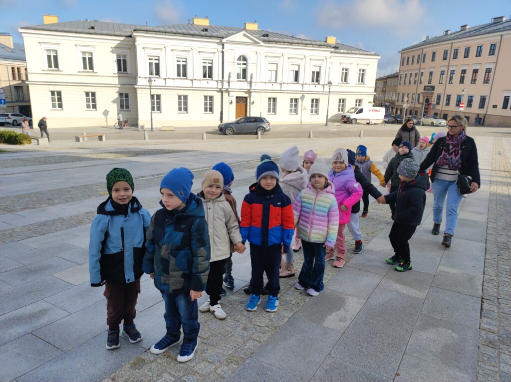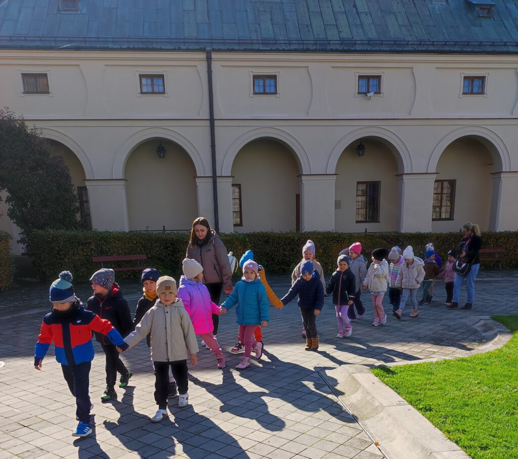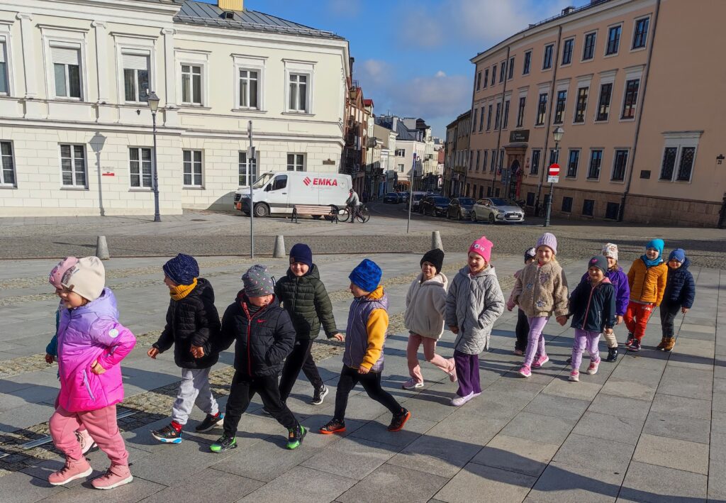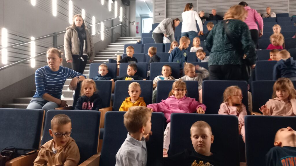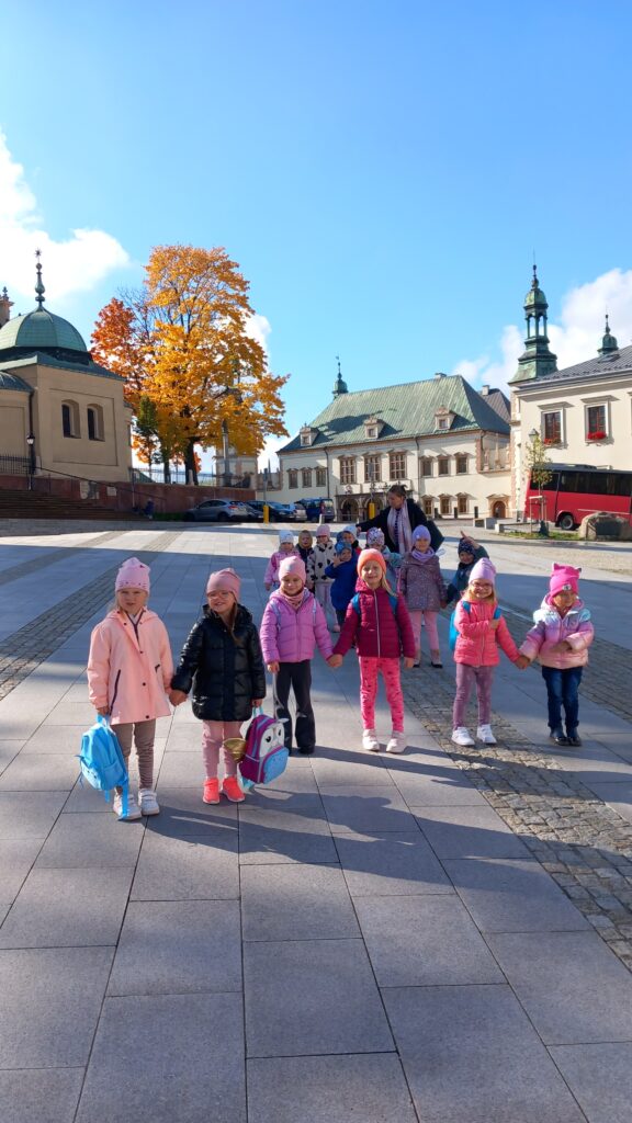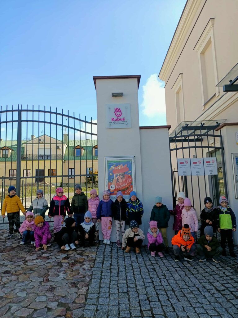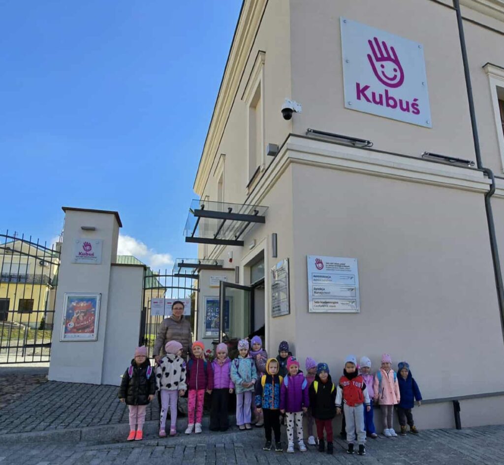 Dzieci z grup Szafirki, Krokusy i Bławatki wybrały się na wycieczkę do Teatru „Kubuś” w Kielcach, gdzie obejrzały spektakl „Mały Tygrysek Pietrek”. Przedstawienie opowiadało o strachu, odwadze i pokonywaniu własnych lęków. Mali widzowie z dużym zainteresowaniem śledzili przygody tygryska i żywo reagowali na jego perypetie. Po spektaklu wybraliśmy się na spacer po okolicznych uliczkach Kielc, podziwiając jesienne widoki i ciekawe budynki. Dzieci z radością opowiadały o swoich wrażeniach z teatru. To był pełen emocji i radości dzień!