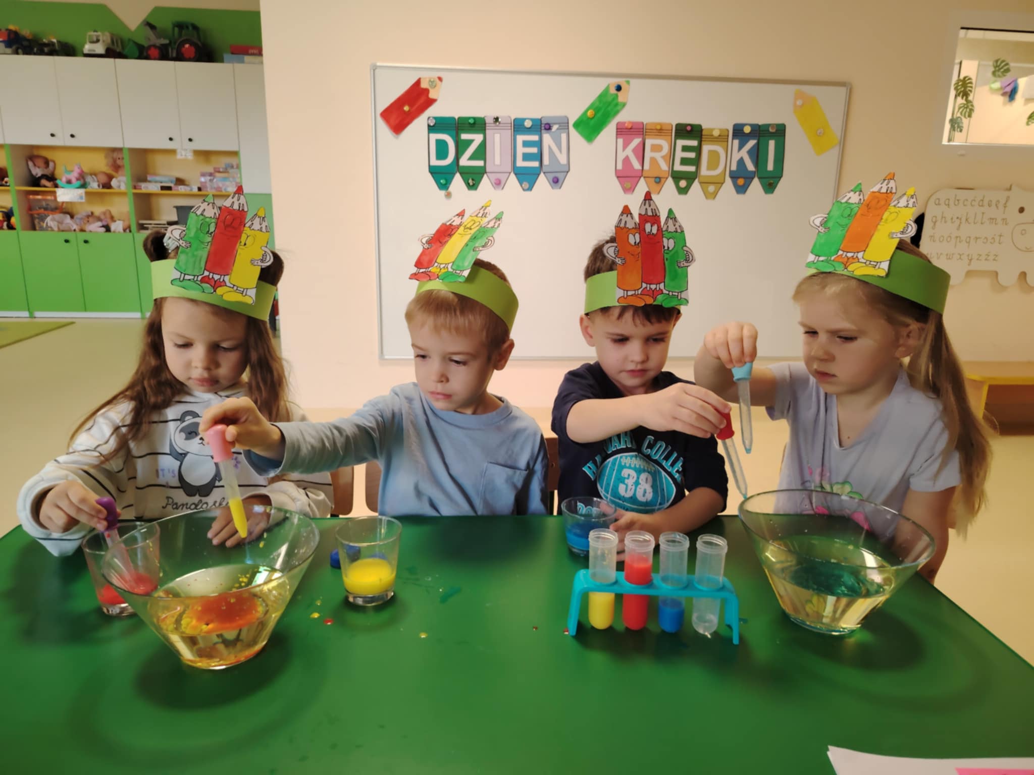Zajęcia i zabawy z okazji „Święta Kredki” w grupie Szafirki.