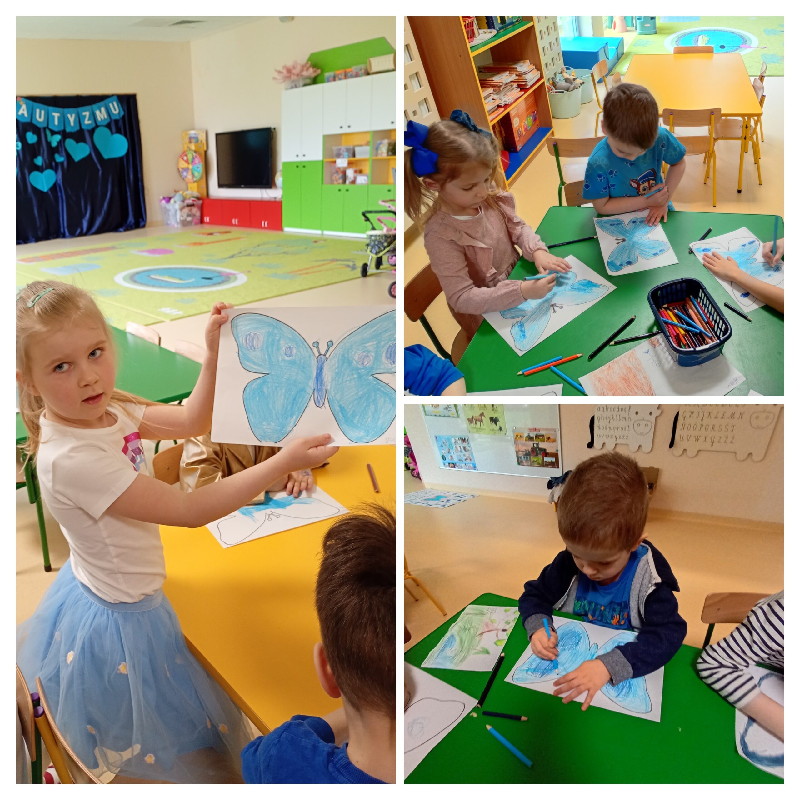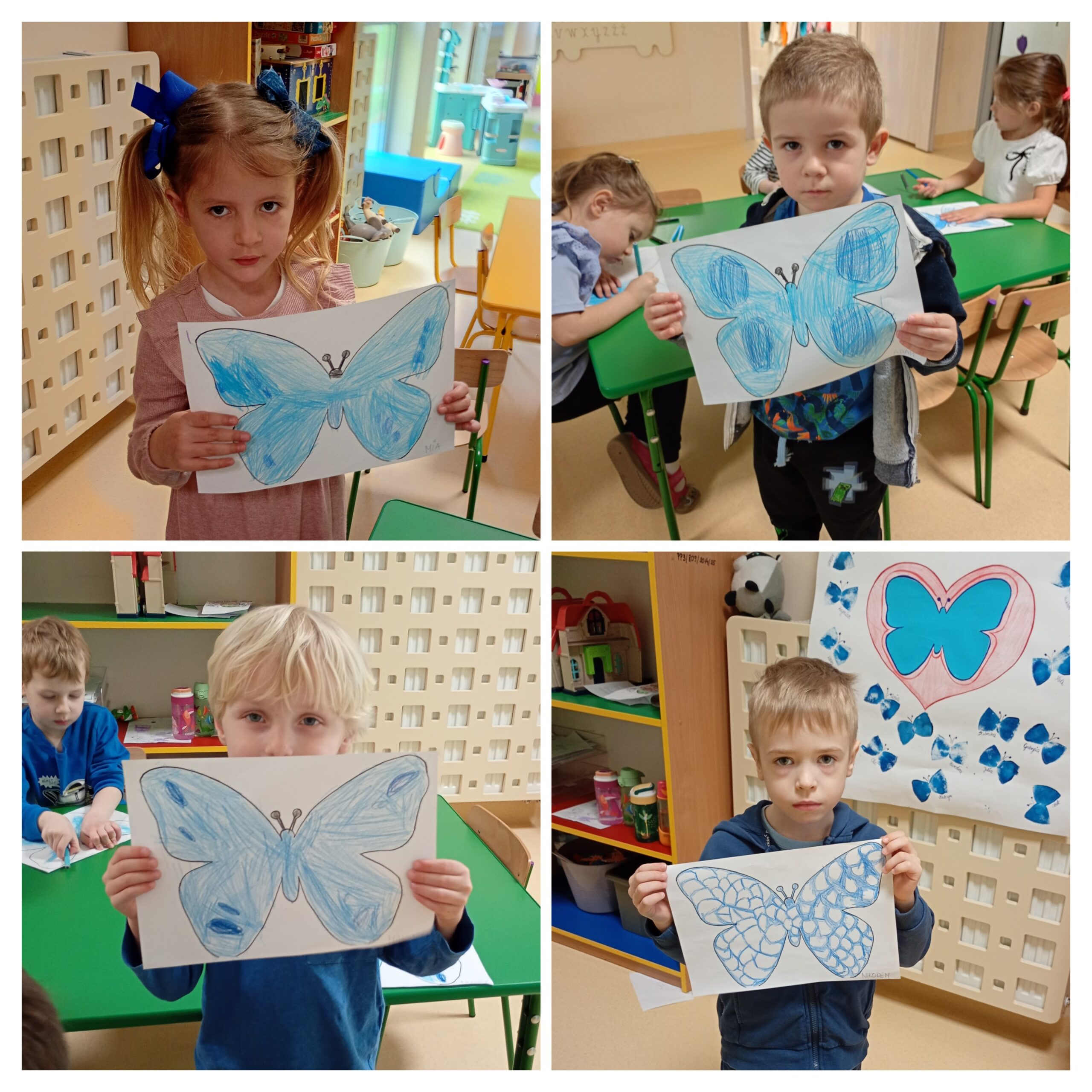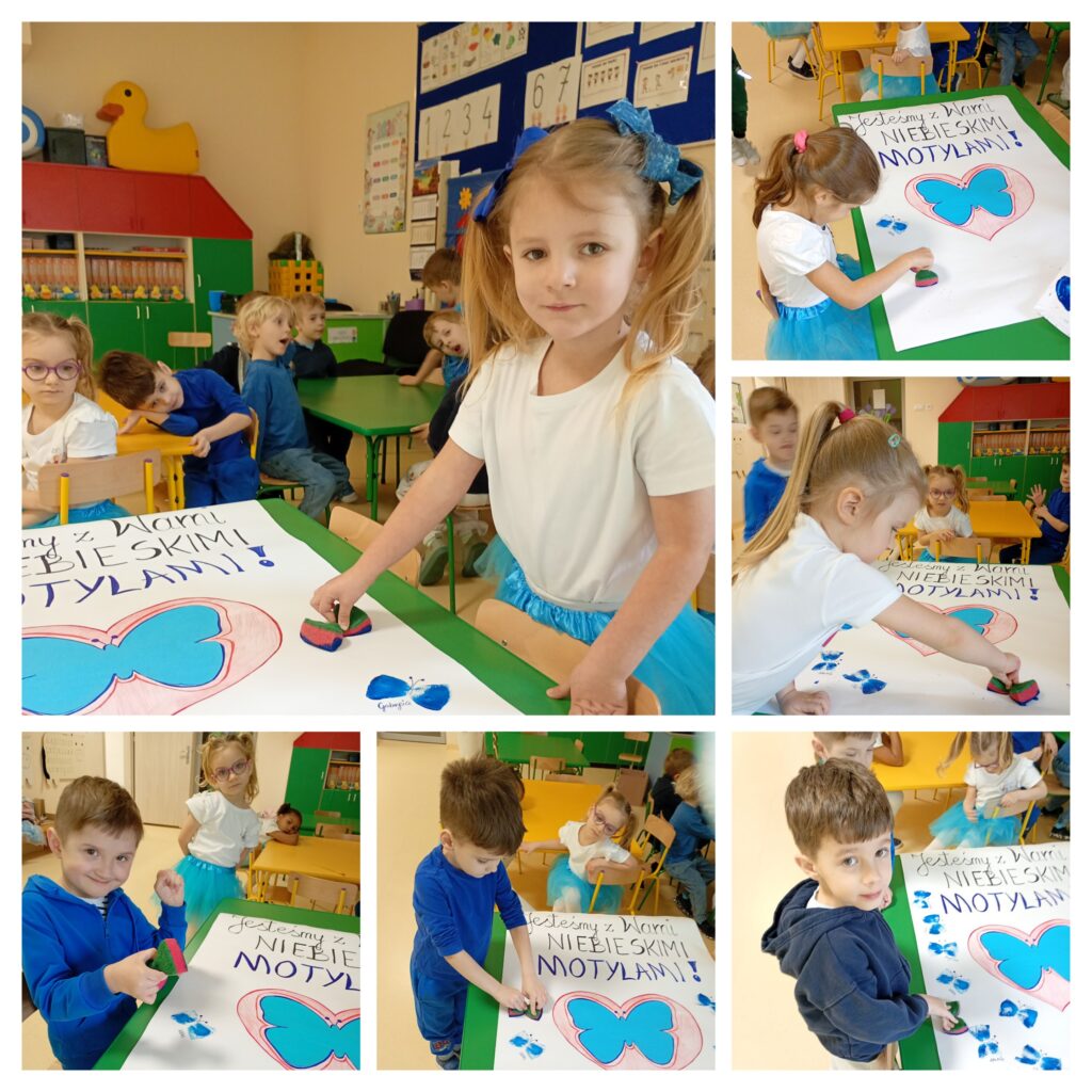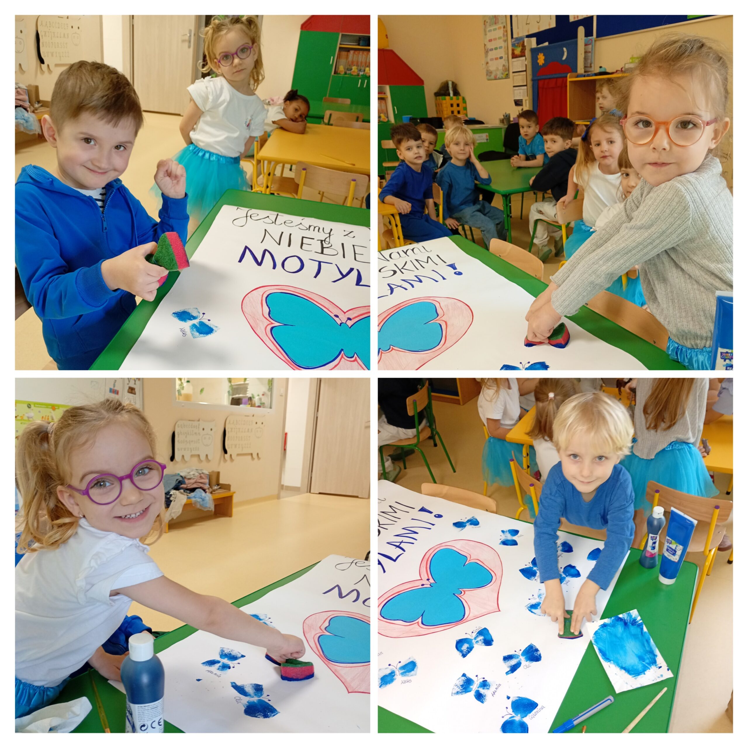 Na zako艅czenie wykonali艣my wsp贸lnie prac臋 plastyczn膮 pt.: ,,Jeste艣my z Wami niebieskimi motylami”馃挋馃.