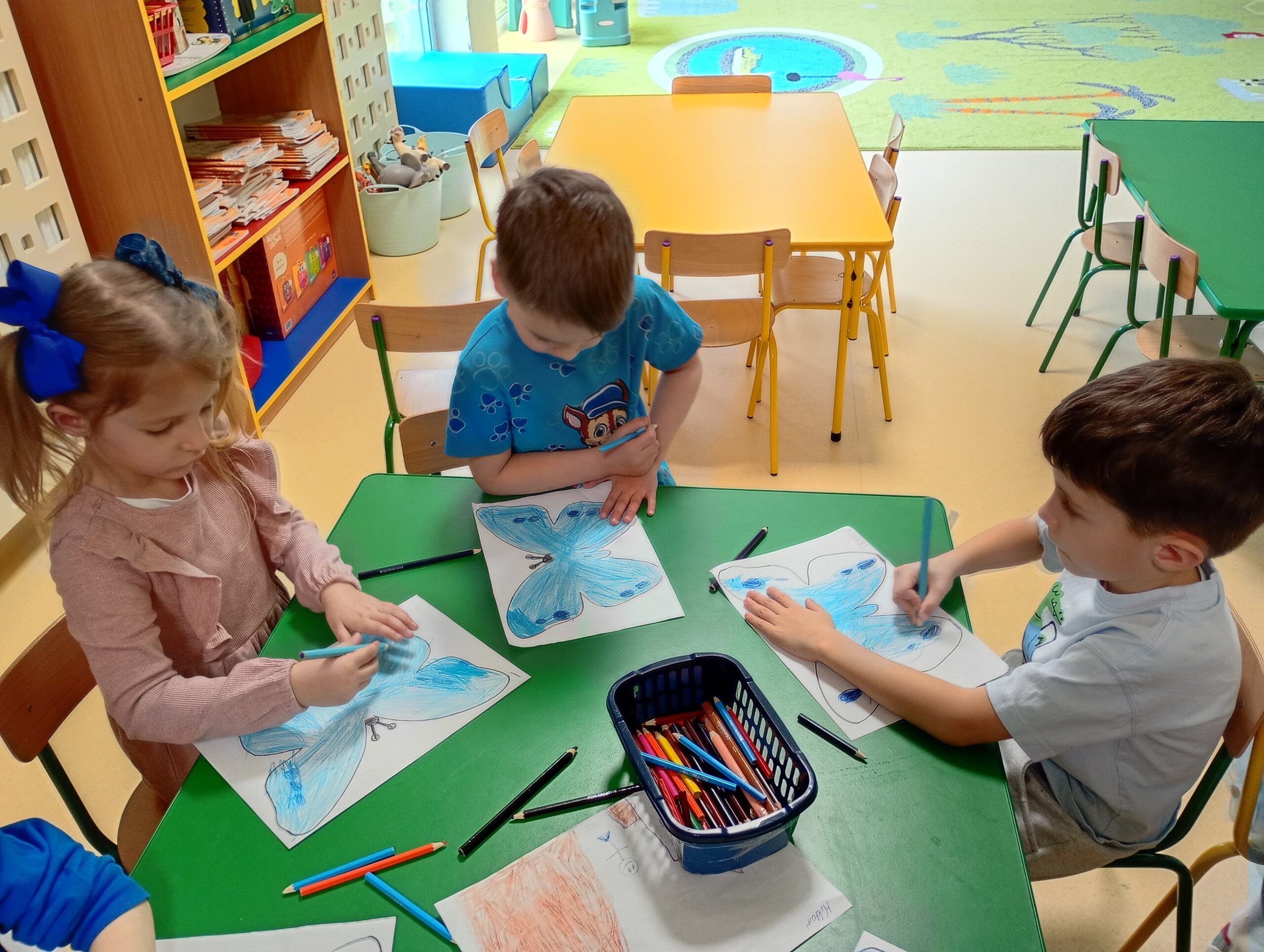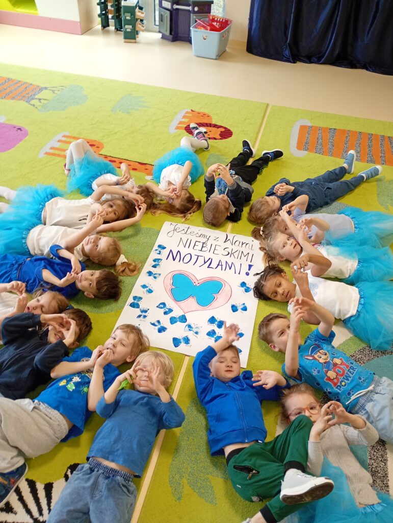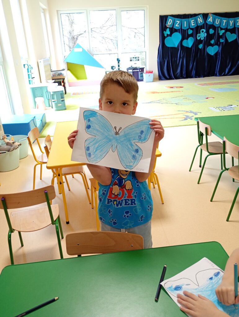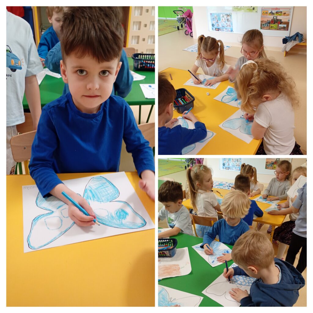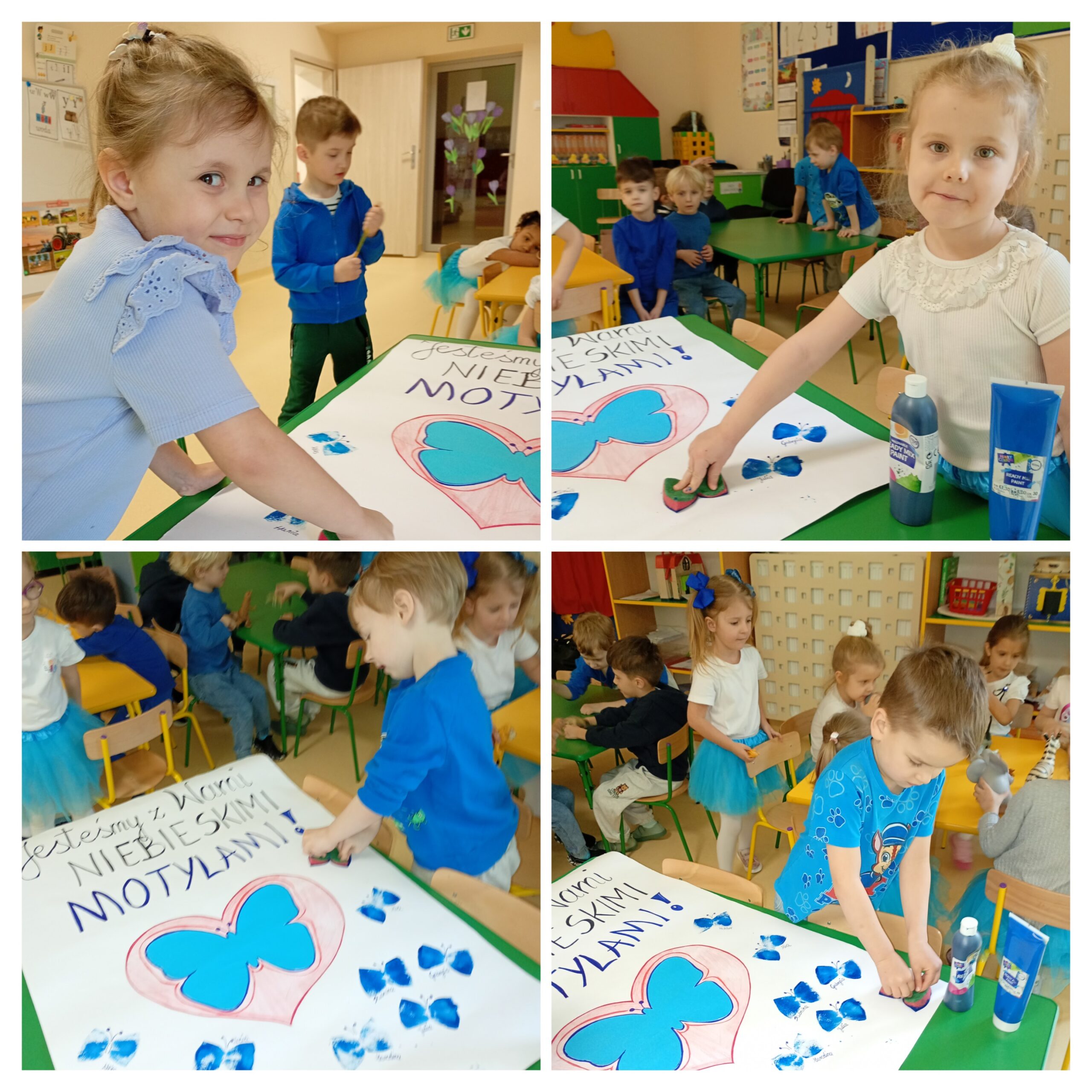 Na zako艅czenie wykonali艣my wsp贸lnie prac臋 plastyczn膮 pt.: ,,Jeste艣my z Wami niebieskimi motylami”馃挋馃.