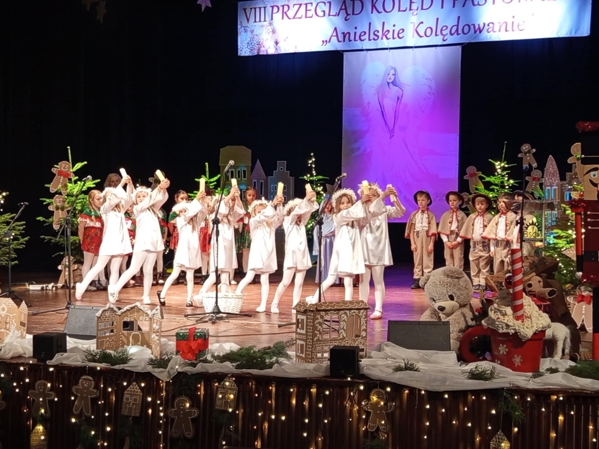 4 grudnia 2025 r. w Buskim Samorządowym Centrum Kultury odbył się VIII Przegląd Kolęd i Pastorałek „Anielskie Kolędowanie”, zorganizowany przez Ośrodek Szkolno-Wychowawczy w Broninie oraz Stowarzyszenie „Daj Dziecku Nadzieję”. Dzieci z grupy Rumianki uświetniły uroczystość nastrojowym występem wokalno-tanecznym. wprowadzając wszystkich w tematykę świąt Bożego Narodzenia. Za wzruszający występ, z rąk Dyrektora Ośrodka Pana Konrada Ładowskiego, przedszkolaki otrzymały piękne upominki.