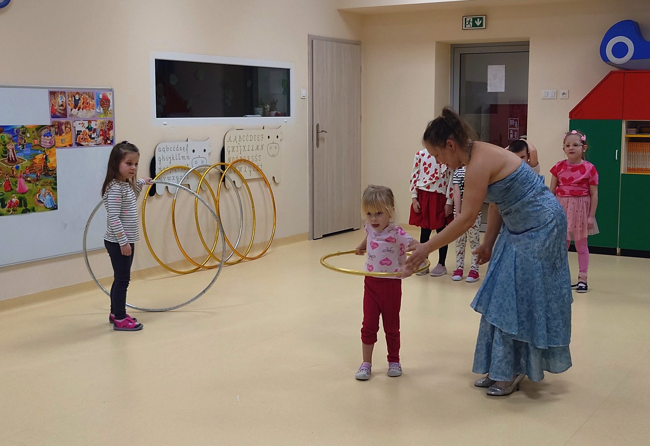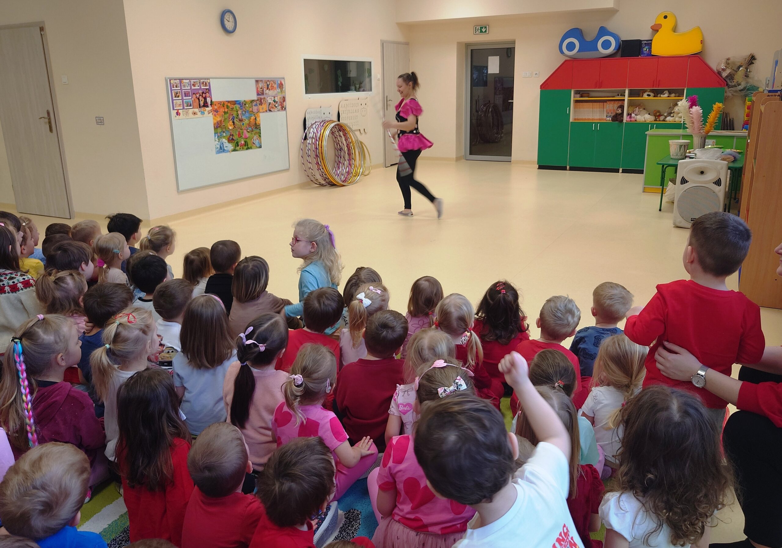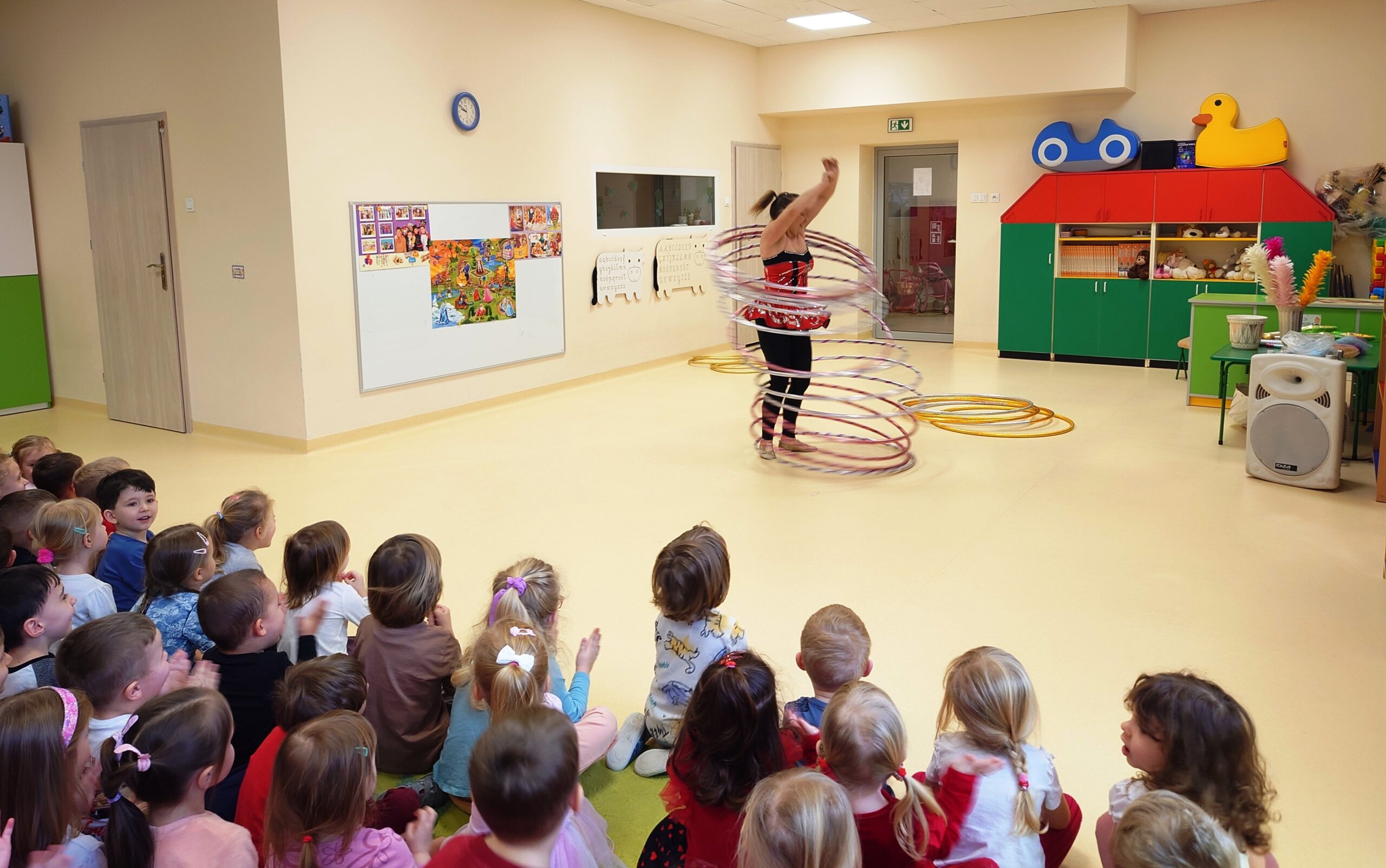 13 lutego mieliśmy okazję gościć w naszym przedszkolu cyrk Kaskada. W sali przedszkolnej zapanowała magiczna atmosfera. Artystka cyrkowa Natalia przedstawiła wiele akrobacji cyrkowych – żonglerkę różnymi przedmiotami, kręcenie hula hop oraz magiczne sztuczki. Chętne przedszkolaki mogły spróbować swych talentów cyrkowych włączając się czynnie do zabawy, co wzbudziło radość wszystkich uczestników. Wspaniały występ cyrkowy dostarczył zebranym mnóstwo miłych wrażeń i przeżyć, bo jak wiadomo wszystkim „śmiech to zdrowie”. Uczestnicy gromkimi brawami podziękowali artystce za wspaniałe widowisko.