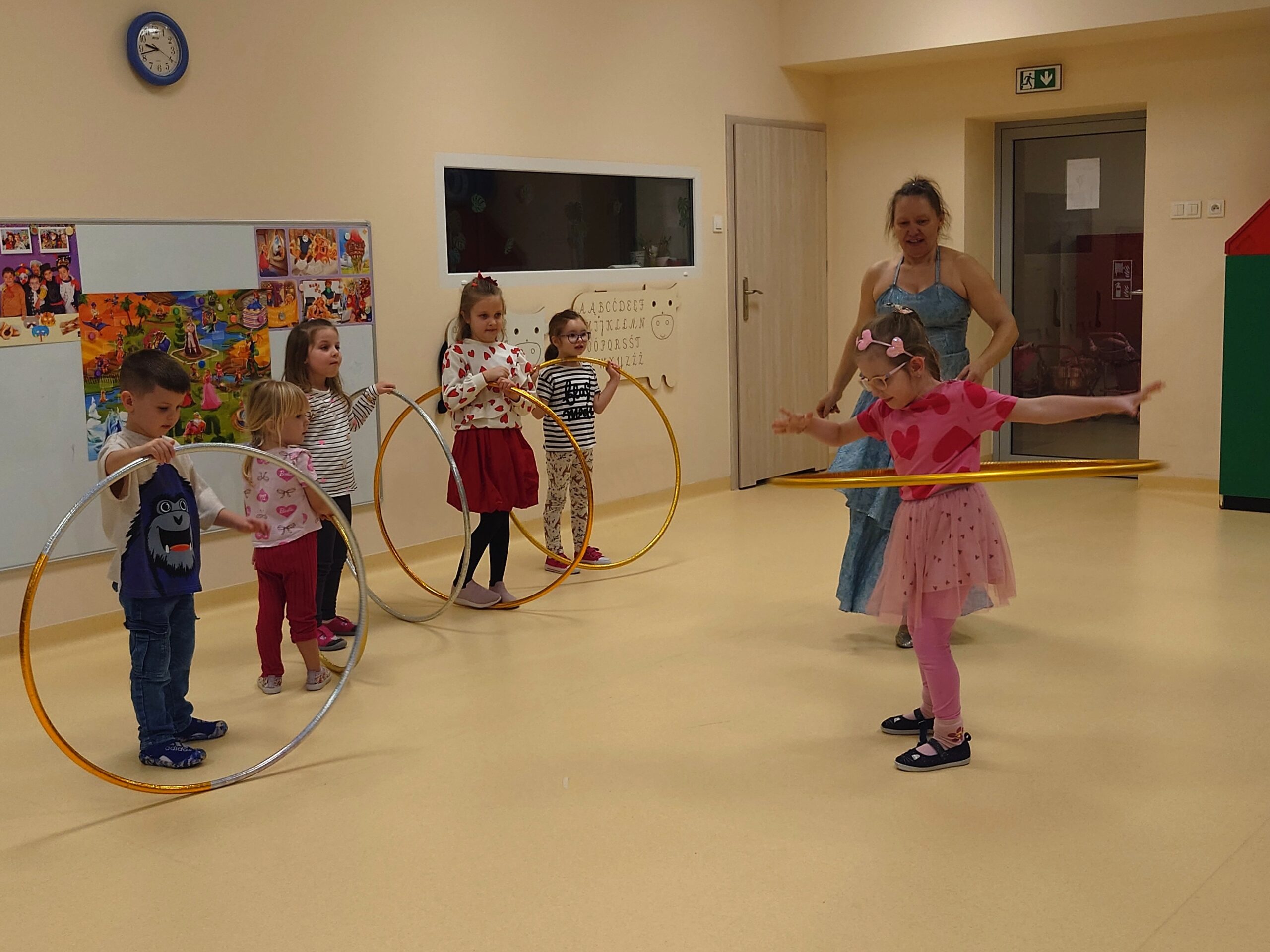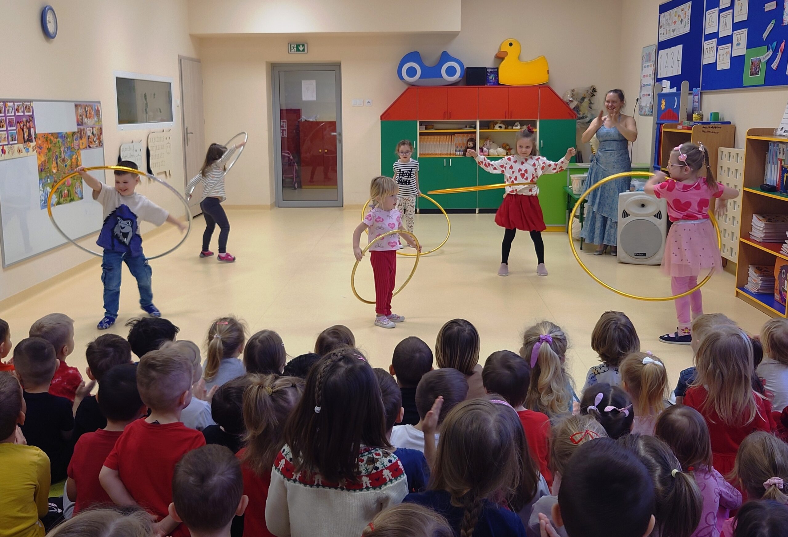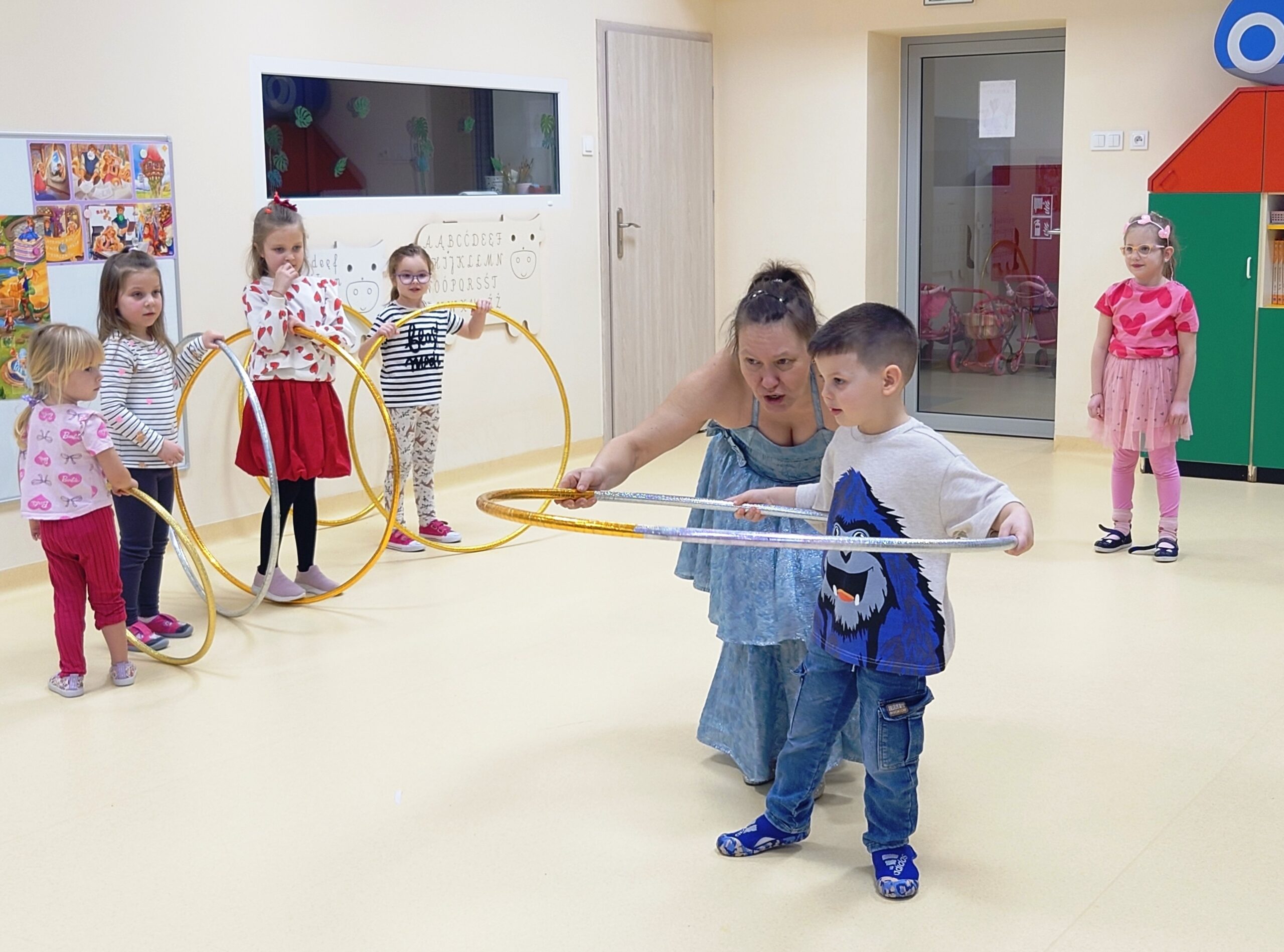 13 lutego mieliśmy okazję gościć w naszym przedszkolu cyrk Kaskada. W sali przedszkolnej zapanowała magiczna atmosfera. Artystka cyrkowa Natalia przedstawiła wiele akrobacji cyrkowych – żonglerkę różnymi przedmiotami, kręcenie hula hop oraz magiczne sztuczki. Chętne przedszkolaki mogły spróbować swych talentów cyrkowych włączając się czynnie do zabawy, co wzbudziło radość wszystkich uczestników. Wspaniały występ cyrkowy dostarczył zebranym mnóstwo miłych wrażeń i przeżyć, bo jak wiadomo wszystkim „śmiech to zdrowie”. Uczestnicy gromkimi brawami podziękowali artystce za wspaniałe widowisko.