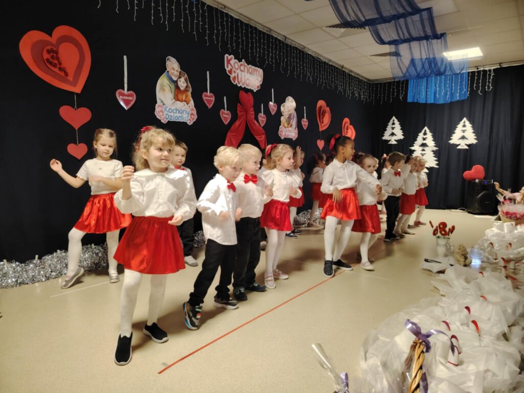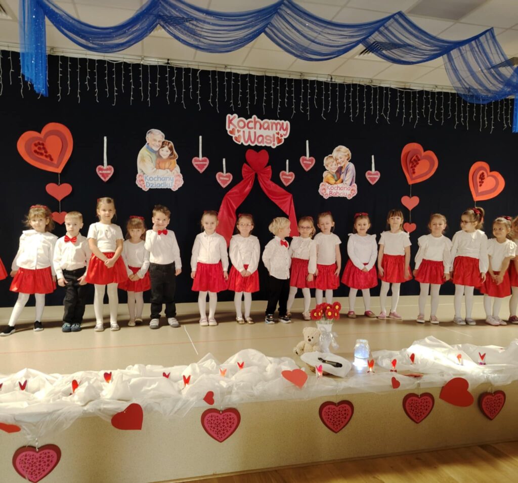 15 stycznia w naszym przedszkolu odbyła się wyjątkowa uroczystość. Grupa Krokusy przygotowała występ z okazji zbliżającego się Dnia Babci i Dziadka. To był dzień pełen radości, uśmiechów i wzruszeń, podczas którego przedszkolaki mogły okazać swoim najbliższym, jak bardzo ich kochają i cenią. Krokusy z ogromnym zaangażowaniem tańczyły, recytowały wiersze, śpiewały piosenki, w których wyraziły swoją miłość i wdzięczność dla babć i dziadków. Na twarzach gości zawitały uśmiechy i łzy wzruszenia, gdy dzieci wręczały własnoręcznie przygotowane laurki oraz lampiony. Każdy moment tej uroczystości był pełen ciepła i rodzinnej atmosfery.
