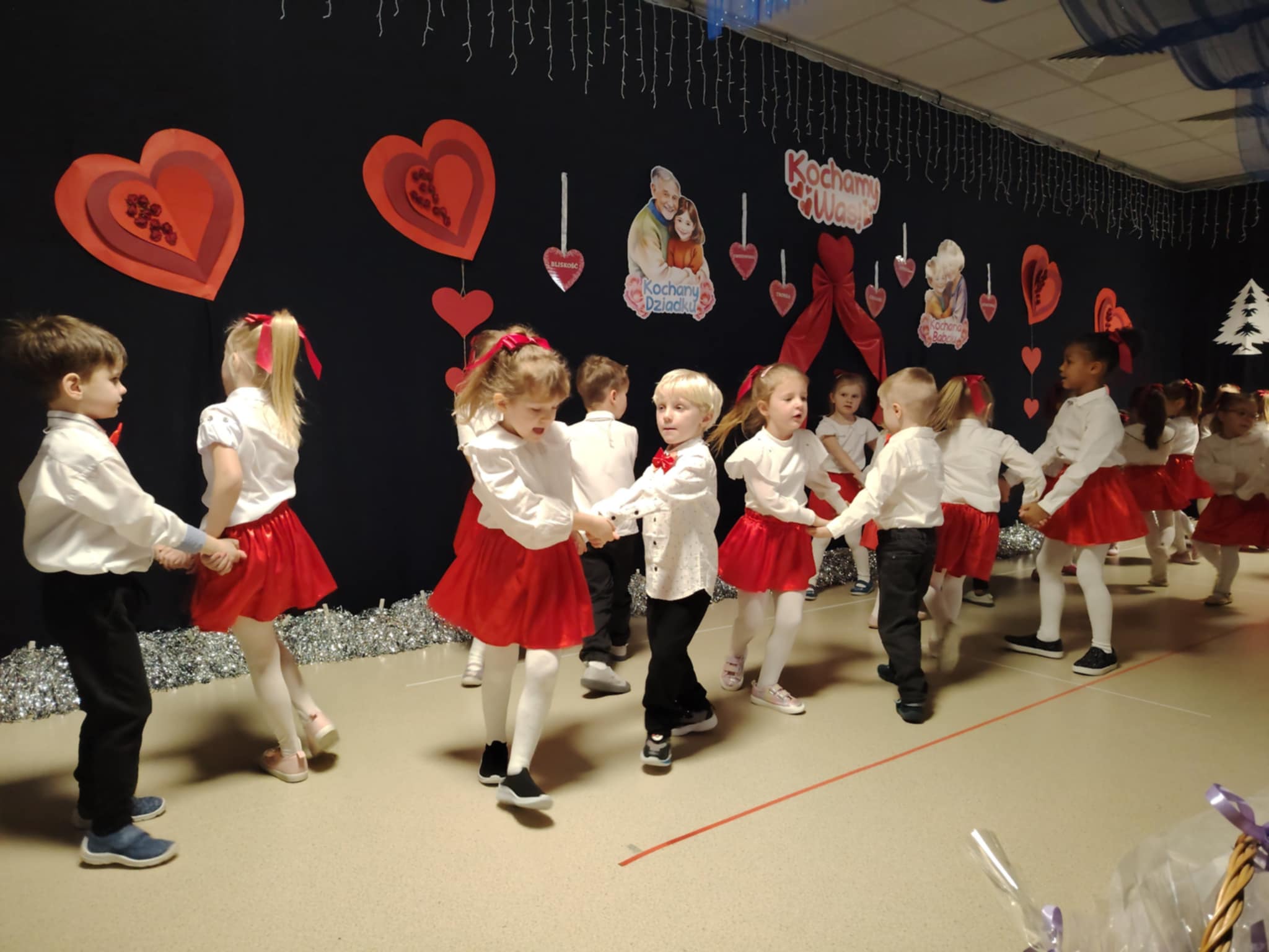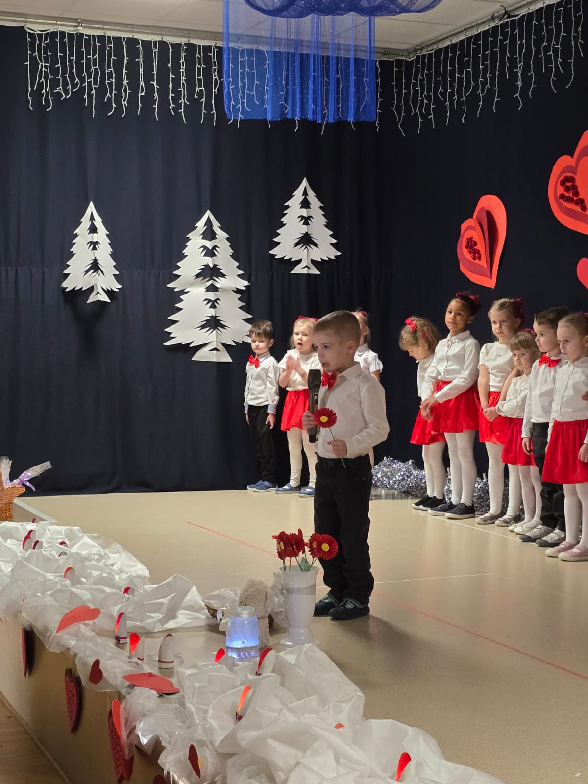 15 stycznia w naszym przedszkolu odbyła się wyjątkowa uroczystość. Grupa Krokusy przygotowała występ z okazji zbliżającego się Dnia Babci i Dziadka. To był dzień pełen radości, uśmiechów i wzruszeń, podczas którego przedszkolaki mogły okazać swoim najbliższym, jak bardzo ich kochają i cenią. Krokusy z ogromnym zaangażowaniem tańczyły, recytowały wiersze, śpiewały piosenki, w których wyraziły swoją miłość i wdzięczność dla babć i dziadków. Na twarzach gości zawitały uśmiechy i łzy wzruszenia, gdy dzieci wręczały własnoręcznie przygotowane laurki oraz lampiony. Każdy moment tej uroczystości był pełen ciepła i rodzinnej atmosfery.