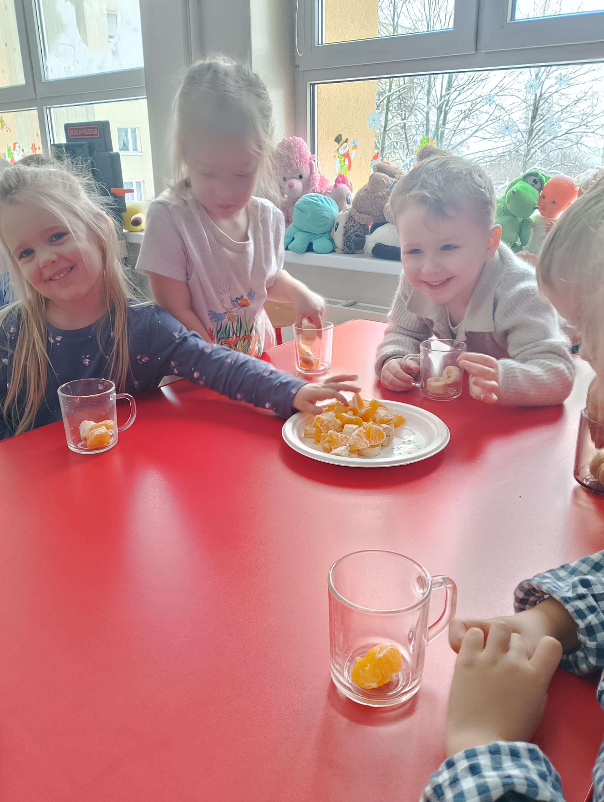 W dniu 8 stycznia 2026 roku w grupie Maki obchodziliśmy Dzień Bitej Śmietany – wyjątkowo słodkie i radosne święto, które sprawiło dzieciom wiele uśmiechu. Podczas zajęć dzieci dowiedziały się, z czego powstaje bita śmietana oraz jak wygląda proces jej przygotowania. Wspólnie obserwowaliśmy, jak z płynnej śmietanki powstaje puszysta, biała masa. Największą atrakcją była oczywiście degustacja. Dzieci z ogromnym entuzjazmem próbowały bitej śmietany, dzieląc się swoimi wrażeniami i radością. Zajęcia przebiegły w miłej, pełnej zaangażowania atmosferze.