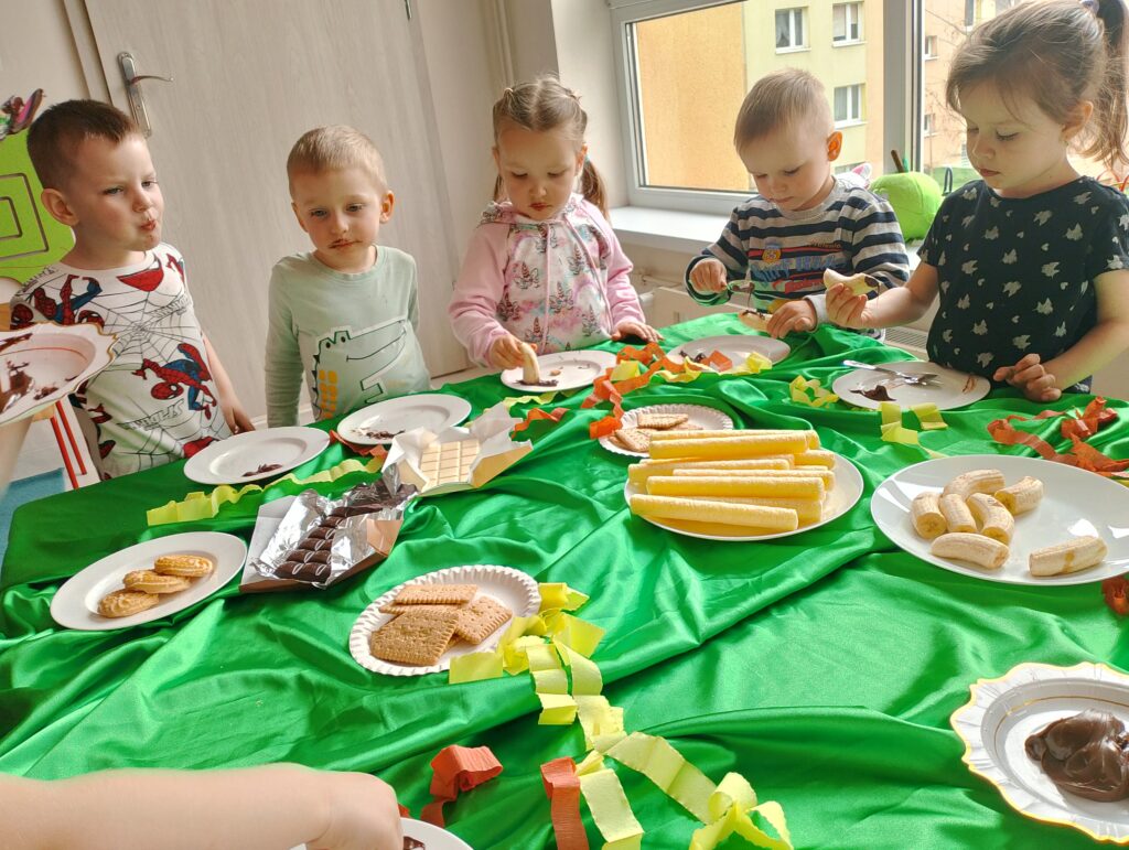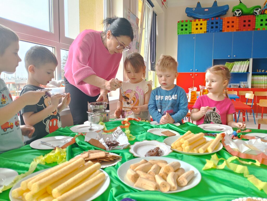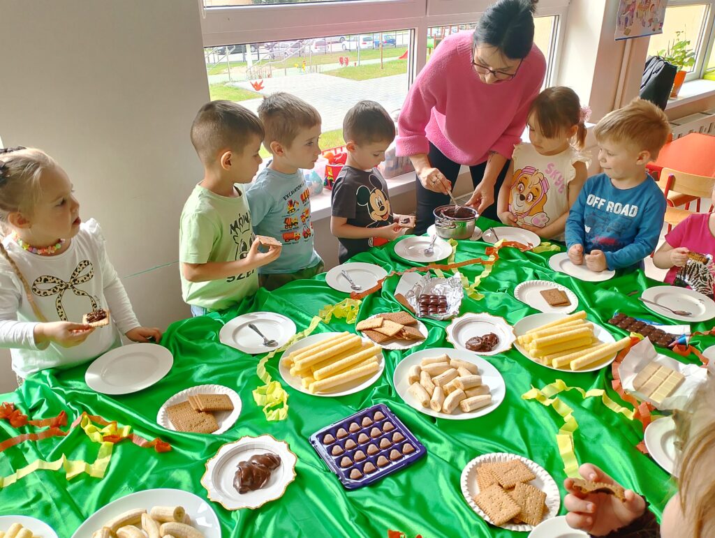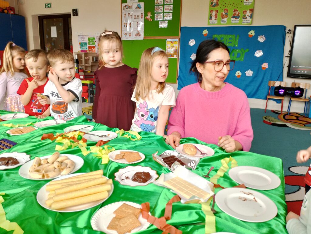 Dzień Czekolady w grupie „Maki” był bardzo radosnym i słodkim wydarzeniem. Dzieci poznały różne rodzaje czekolady, dowiedziały się, jak powstaje, a także brały udział w zabawach  związanych z tym przysmakiem. Najwięcej radości sprawiła degustacja czekolady oraz tworzenie własnych słodkich kompozycji. To był dzień pełen uśmiechu, dobrej zabawy i czekoladowych smaków.