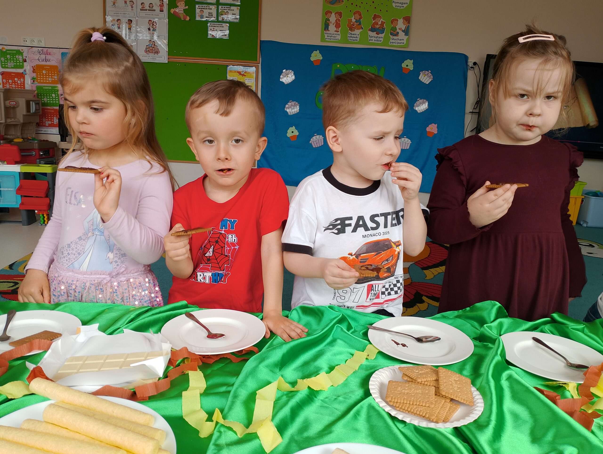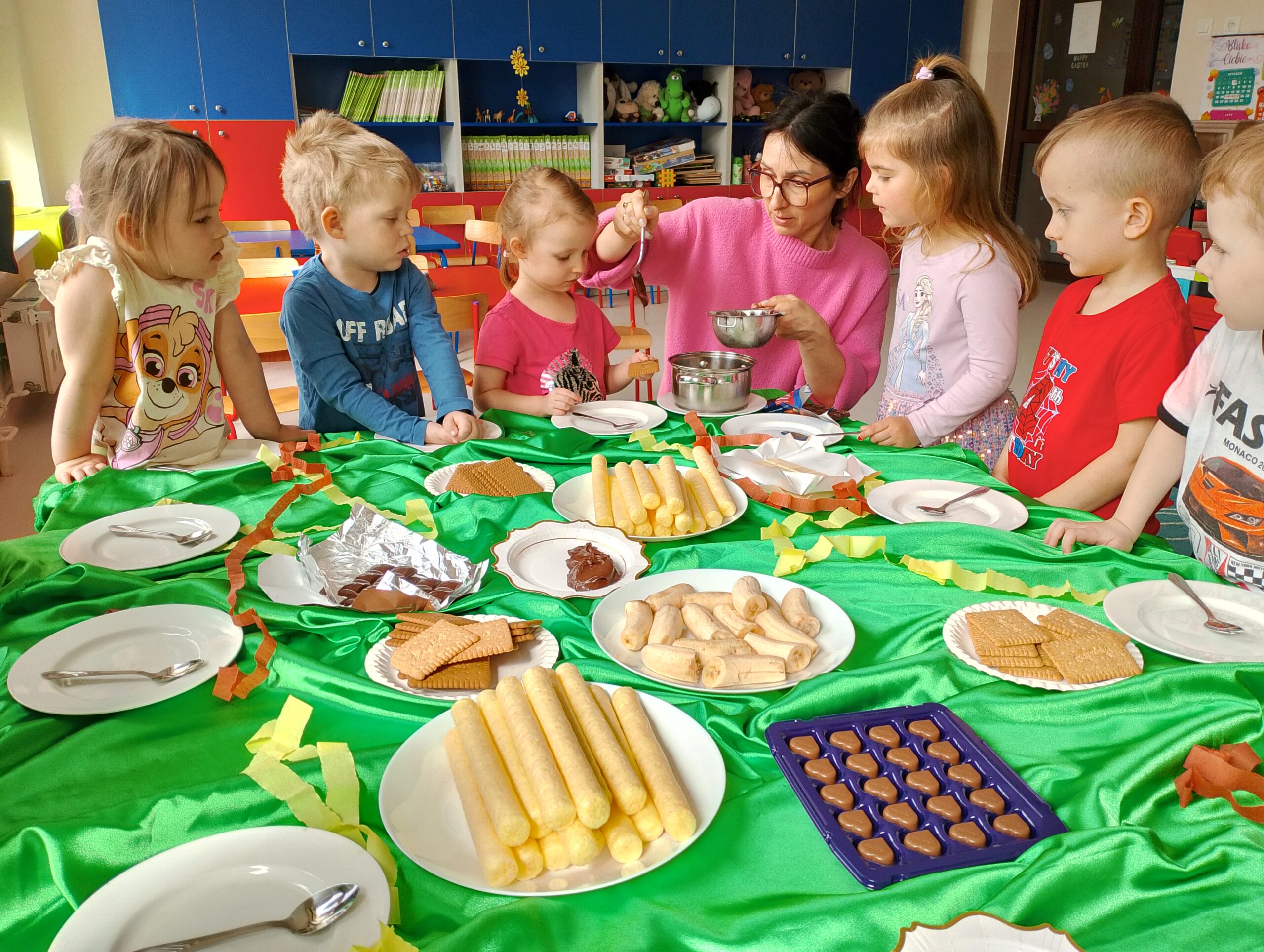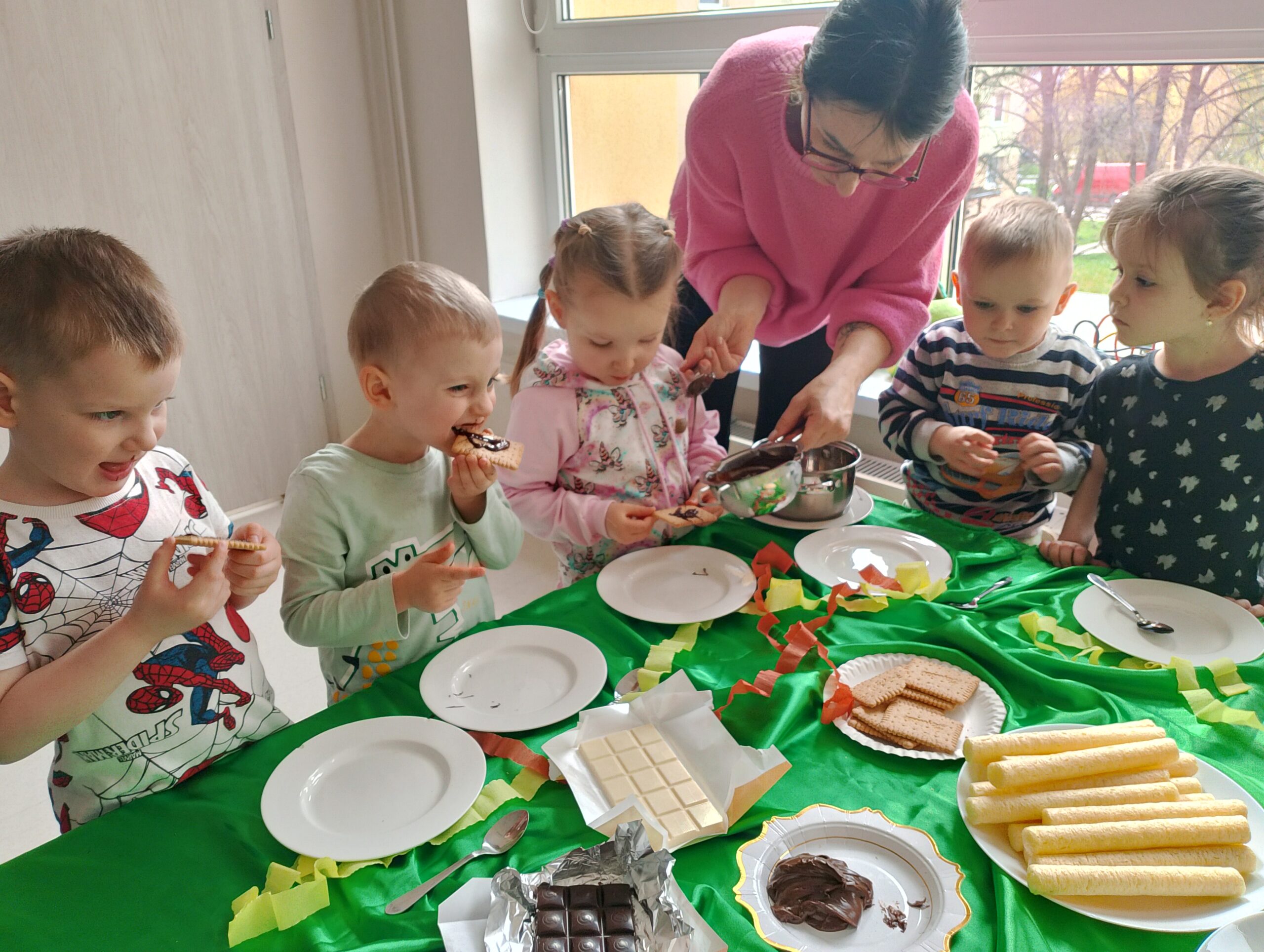 Dzień Czekolady w grupie „Maki” był bardzo radosnym i słodkim wydarzeniem. Dzieci poznały różne rodzaje czekolady, dowiedziały się, jak powstaje, a także brały udział w zabawach  związanych z tym przysmakiem. Najwięcej radości sprawiła degustacja czekolady oraz tworzenie własnych słodkich kompozycji. To był dzień pełen uśmiechu, dobrej zabawy i czekoladowych smaków.
