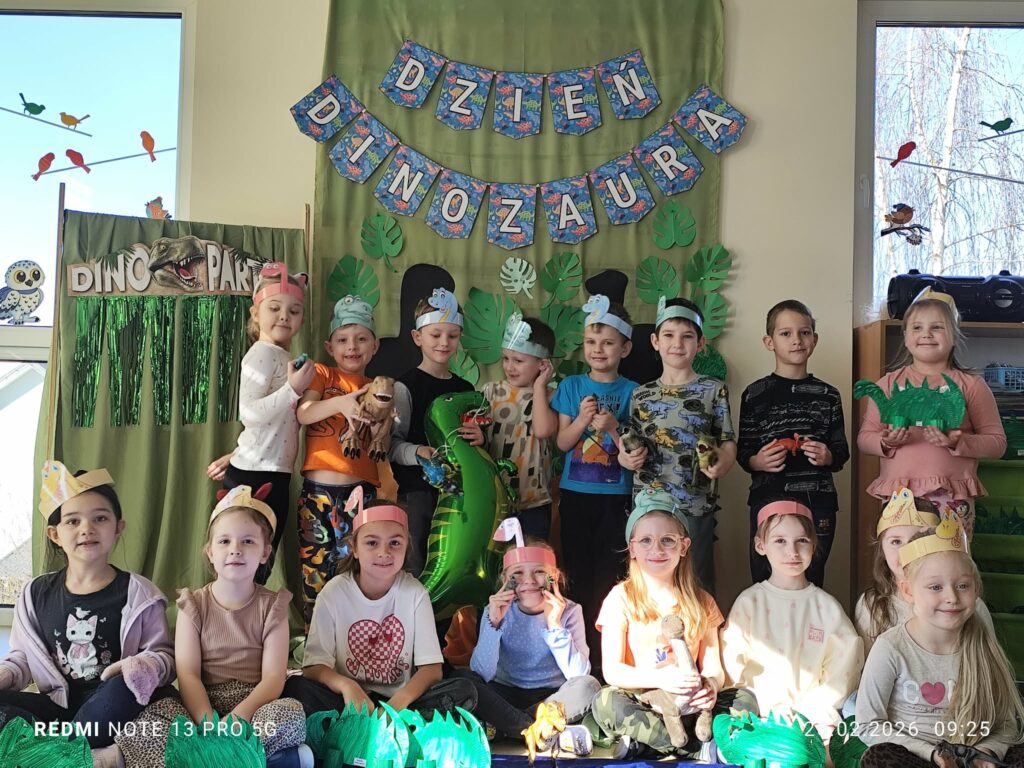 W ubiegłym tygodniu, dzieci z grupy Rumianki świętowały Dzień Dinozaura. Poprzez zabawę i naukę odbyły podróż do świata prehistorycznych gadów. Wcieliły się w paleontologów, szukając „skamielin”, tworzyły prace plastyczne, brały udział w dinozaurowych tańcach i eksperymentach.