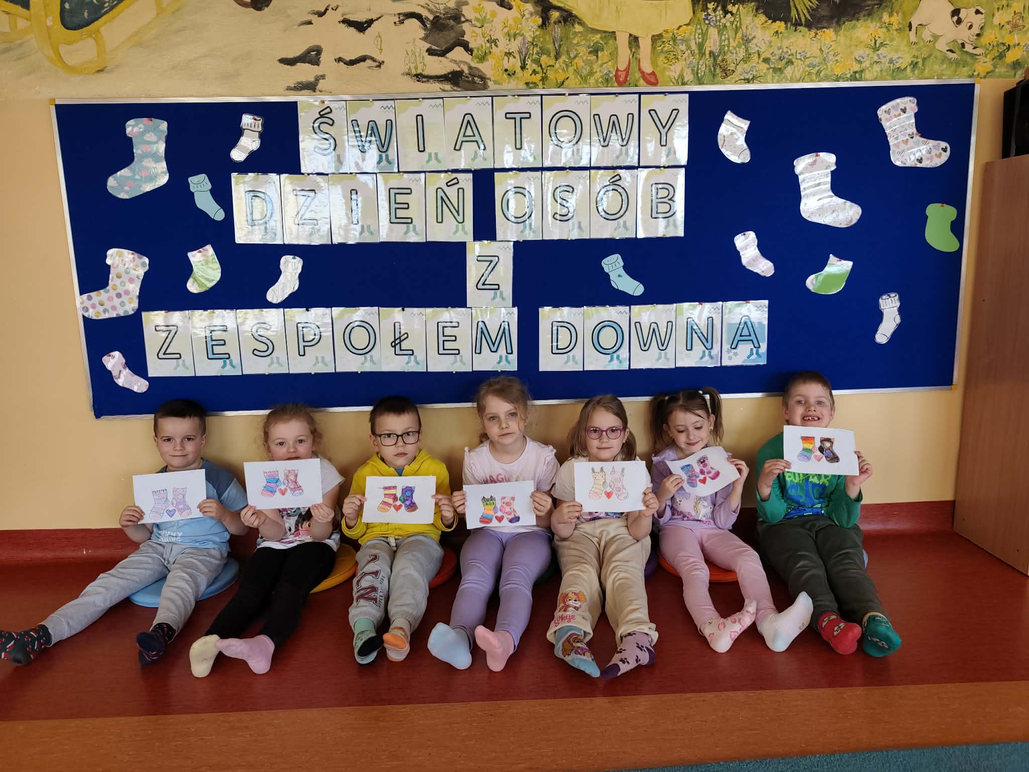 Grupa Szafirki obchodziła Dzień Kolorowej Skarpetki, który jest symbolem solidarności z osobami z zespołem Downa. Tego dnia dzieci przyszły w wesołych, nie do pary skarpetkach, podkreślając, że różnorodność jest czymś pięknym i wartościowym.