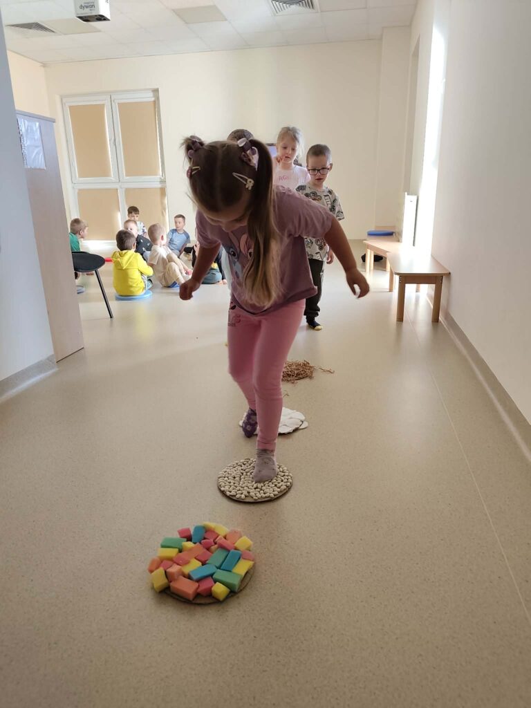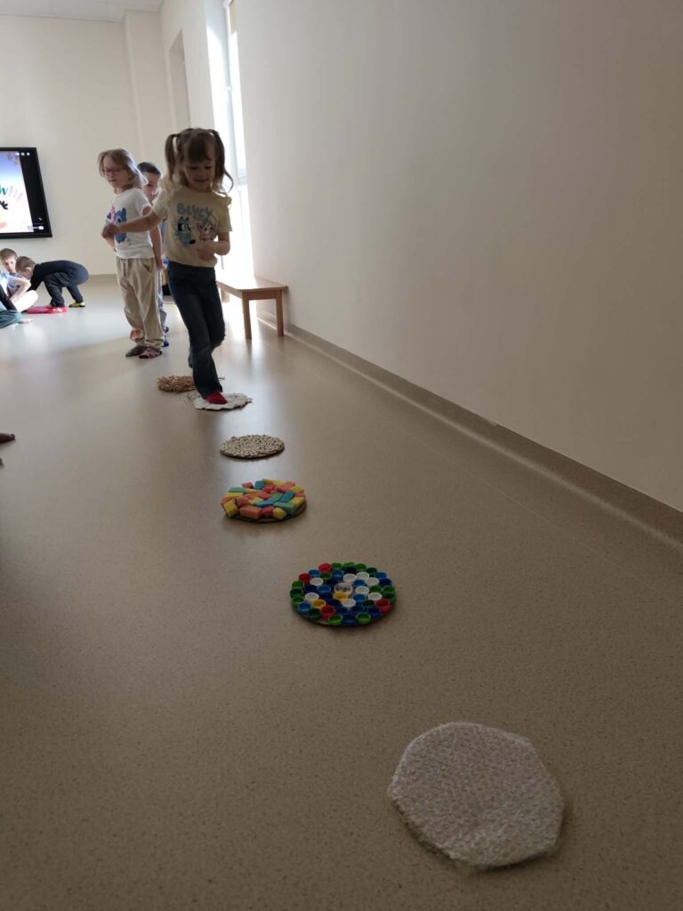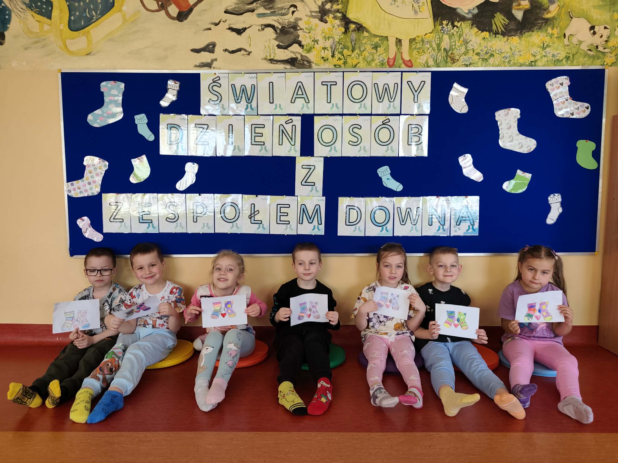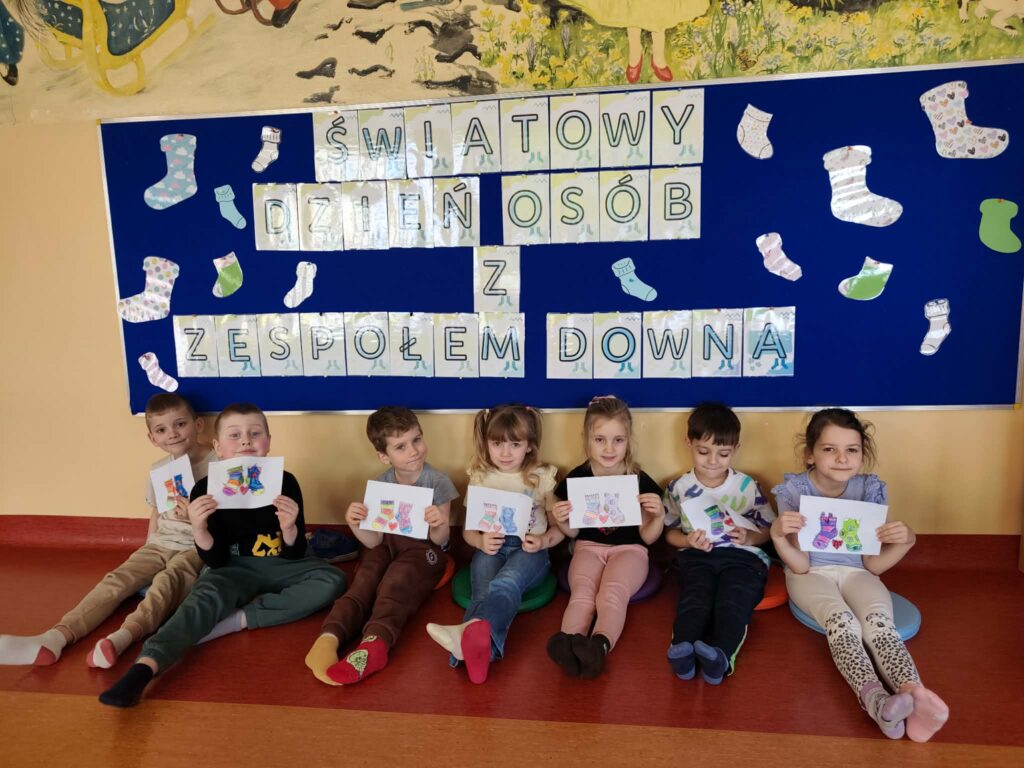 Podczas zajęć przedszkolaki kolorowały własne skarpetki, tworząc niezwykle barwne i pomysłowe prace. Następnie dzieci miały okazję przejść przez ścieżkę sensoryczną, która dostarczyła im wielu wrażeń i radości, rozwijając jednocześnie ich zmysły. Przedszkolaki  wysłuchały także opowiadania o skarpetce Lilce, które przybliżyło dzieciom temat akceptacji i wyjątkowości każdego człowieka. Dzieci obejrzały również bajkę edukacyjną, dzięki której mogły lepiej zrozumieć, czym jest zespół Downa i dlaczego warto być życzliwym oraz otwartym na innych.