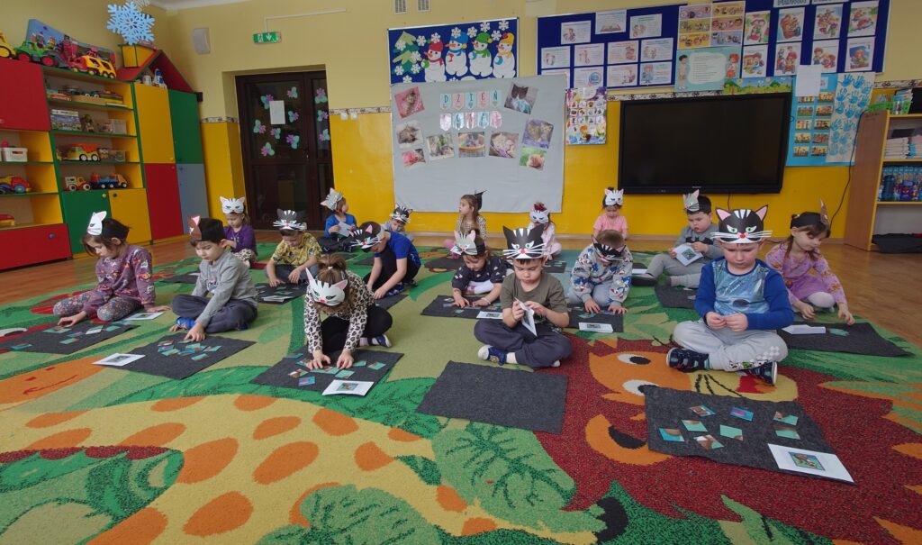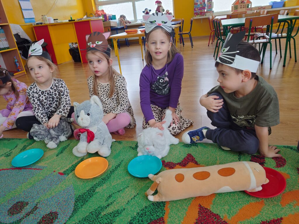 17 lutego obchodziliśmy w grupie Fiołki i Rumianki Dzień Kota. Zajęcia zostały zorganizowane w celu przekazania dzieciom informacji na temat prawidłowej opieki nad zwierzętami, wyrabiania szacunku dla zwierząt, uwrażliwienia i zwrócenia uwagi na los porzuconych i bezdomnych zwierząt.