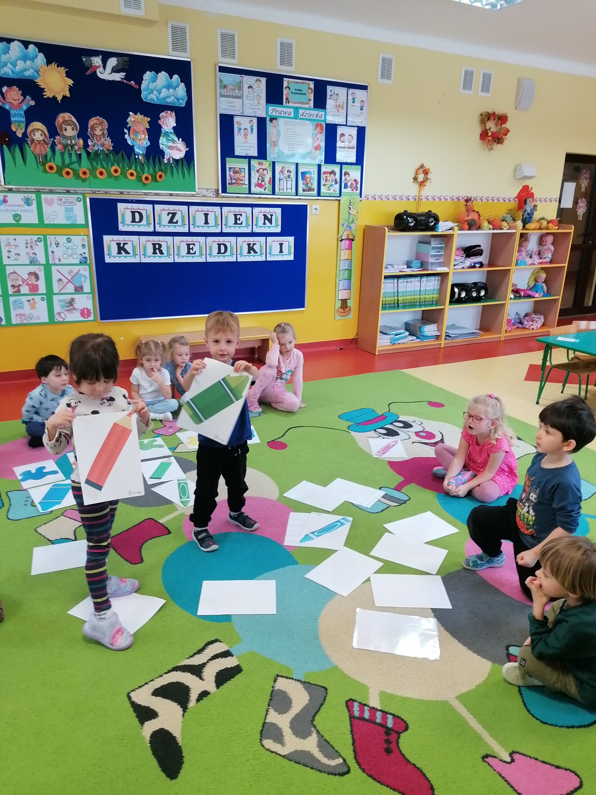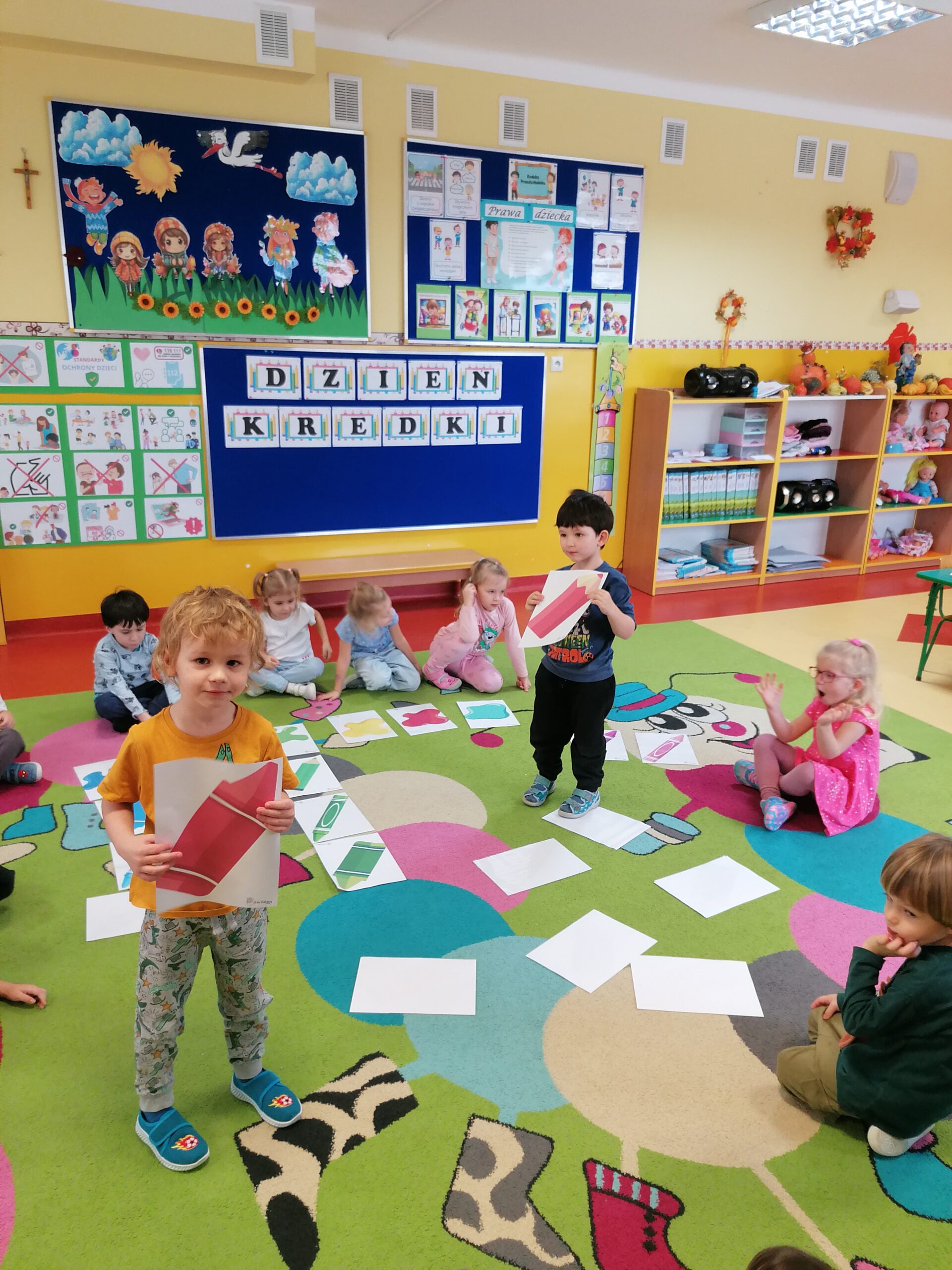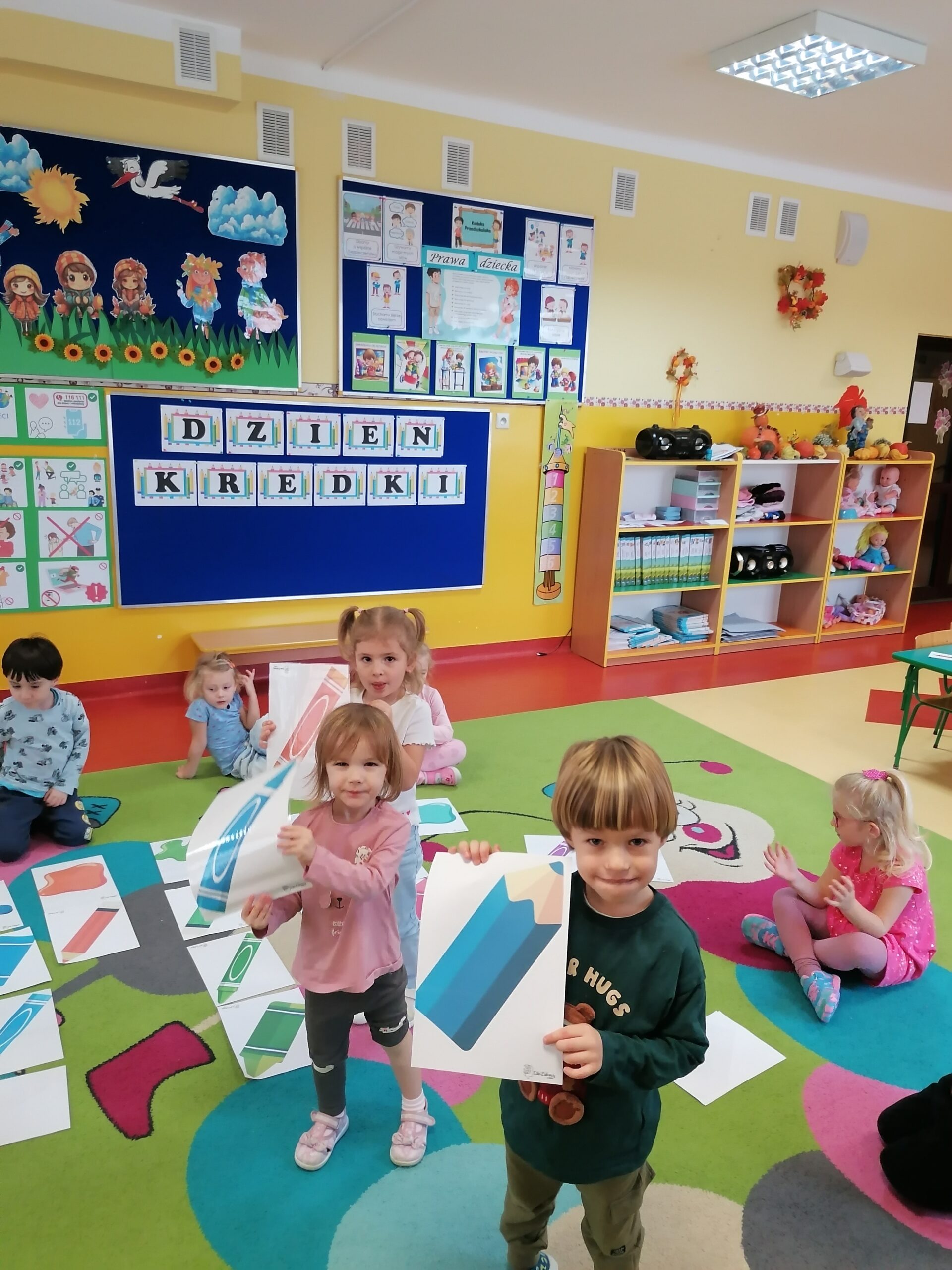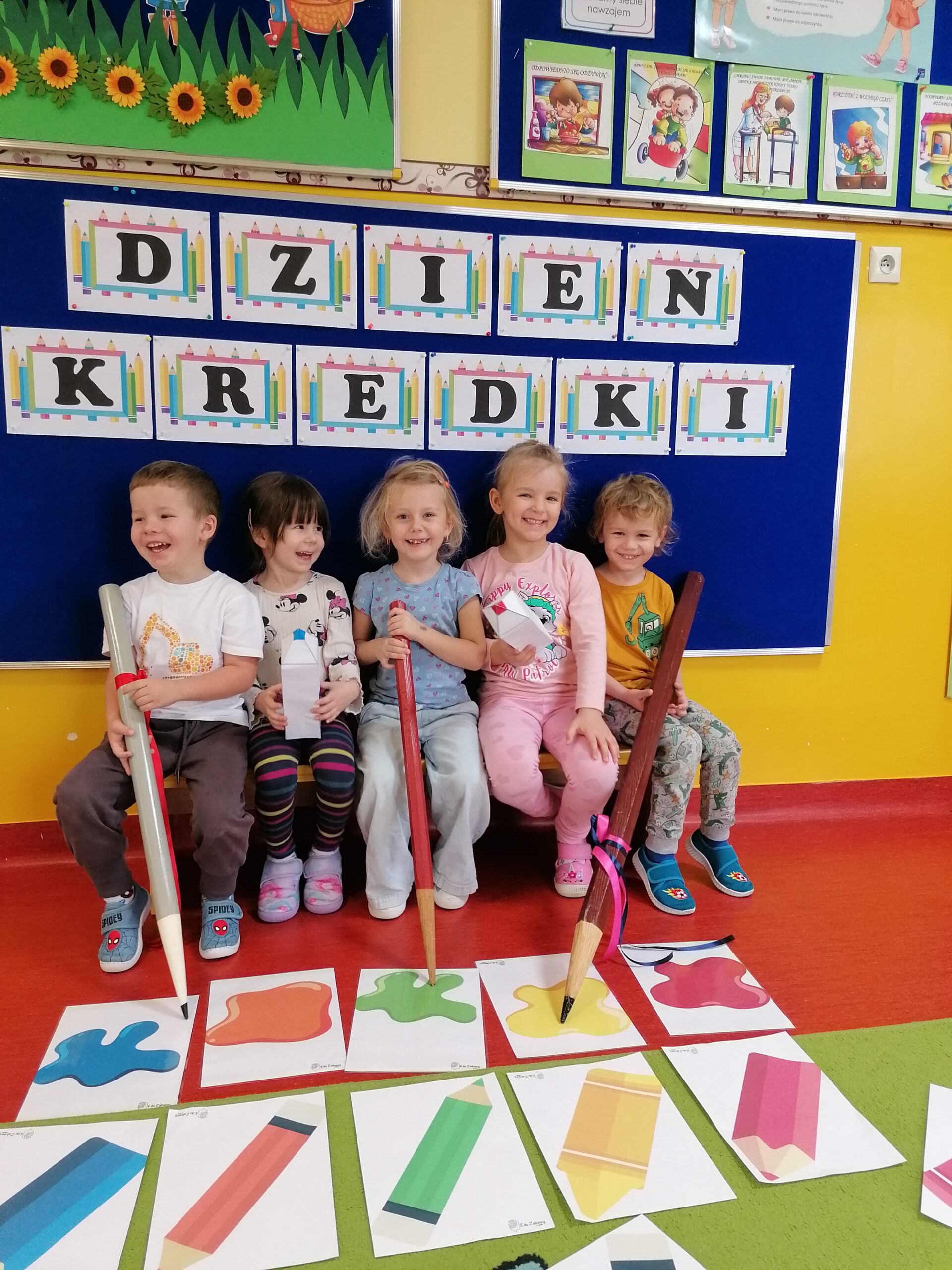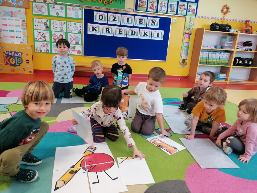 W listopadzie w grupie Sasanki obchodziliśmy,, Dzień Kredki”. W trakcie zajęć przedszkolaki poznały różne rodzaje kredek, ich właściwości i zastosowanie. Doskonaliły umiejętność nazywania i porównywania kolorów. Poprzez zabawy związane z klasyfikowaniem przedmiotów wg liczby i barwy rozwijały kompetencje matematyczne. Wesołe gry i zabawy rozwijały zarówno twórczą aktywność dzieci, jak również sprzyjały współpracy i integracji.