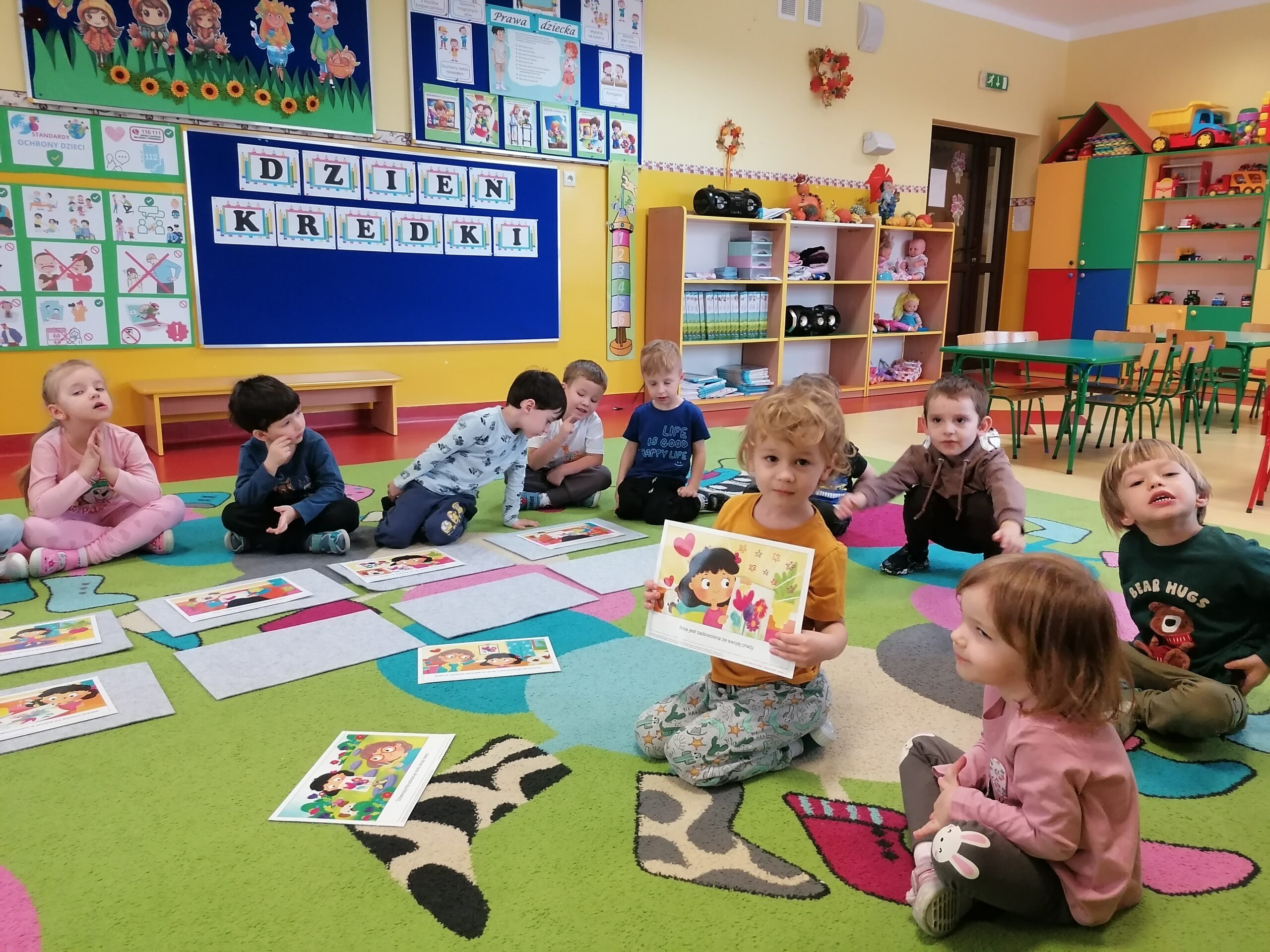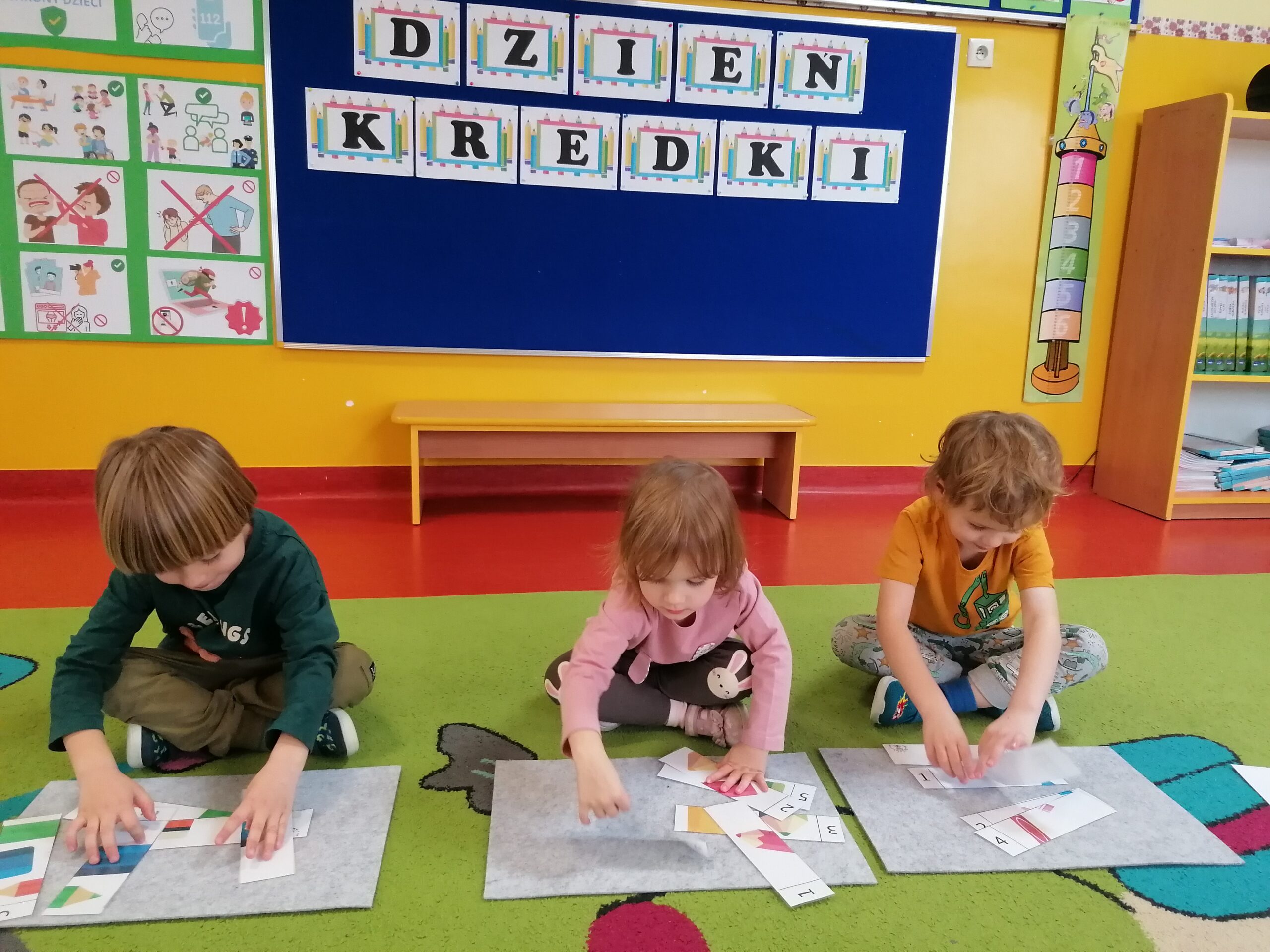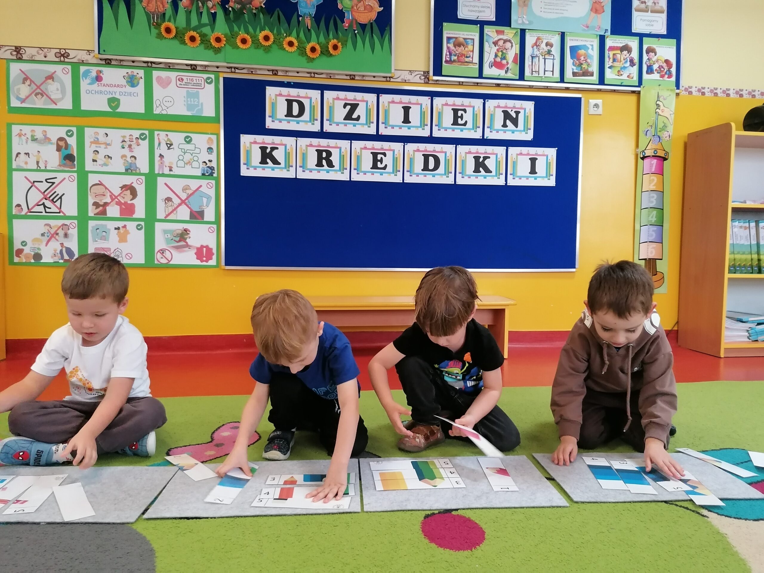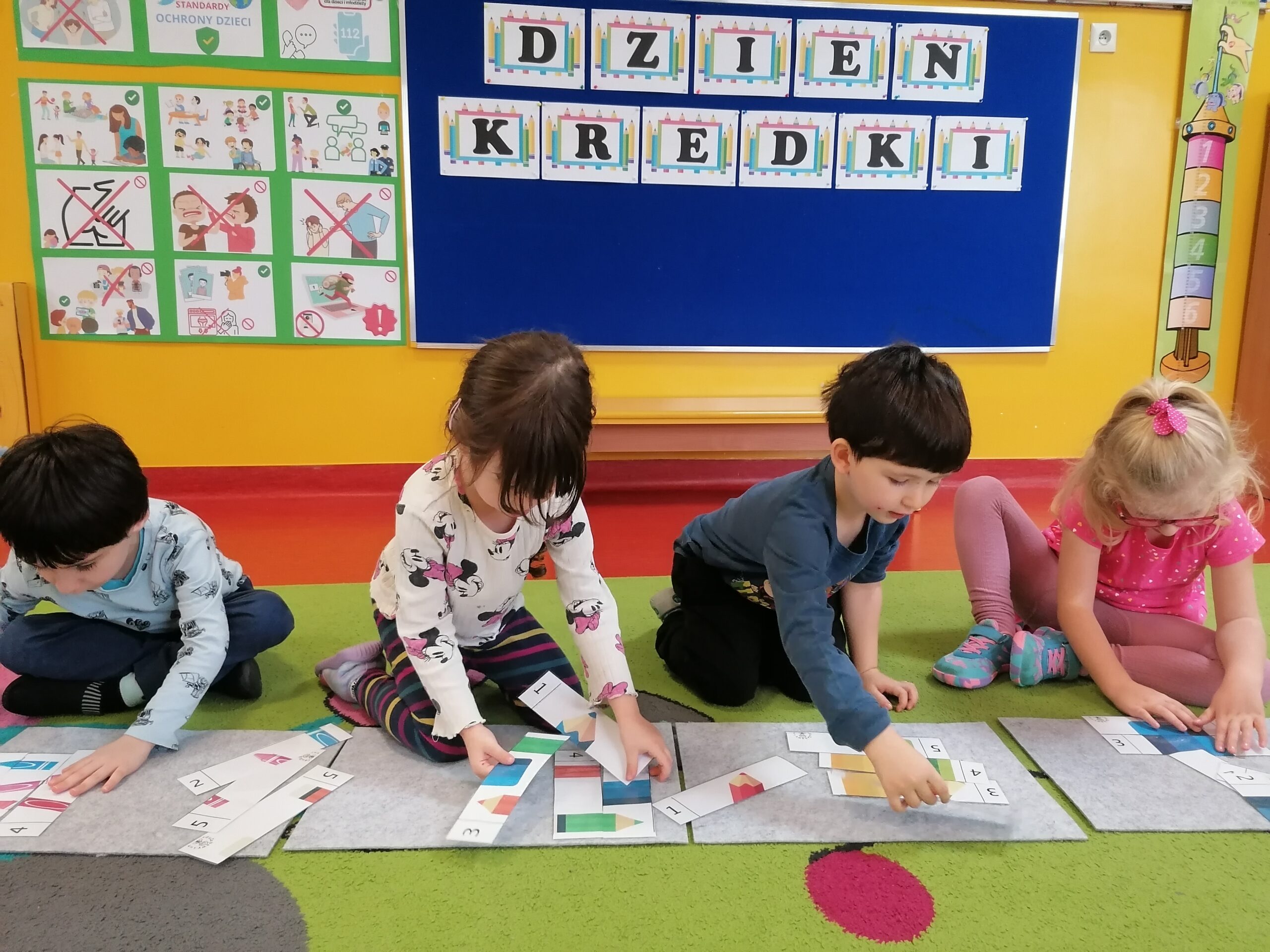 W listopadzie w grupie Sasanki obchodziliśmy,, Dzień Kredki”. W trakcie zajęć przedszkolaki poznały różne rodzaje kredek, ich właściwości i zastosowanie. Doskonaliły umiejętność nazywania i porównywania kolorów. Poprzez zabawy związane z klasyfikowaniem przedmiotów wg liczby i barwy rozwijały kompetencje matematyczne. Wesołe gry i zabawy rozwijały zarówno twórczą aktywność dzieci, jak również sprzyjały współpracy i integracji.