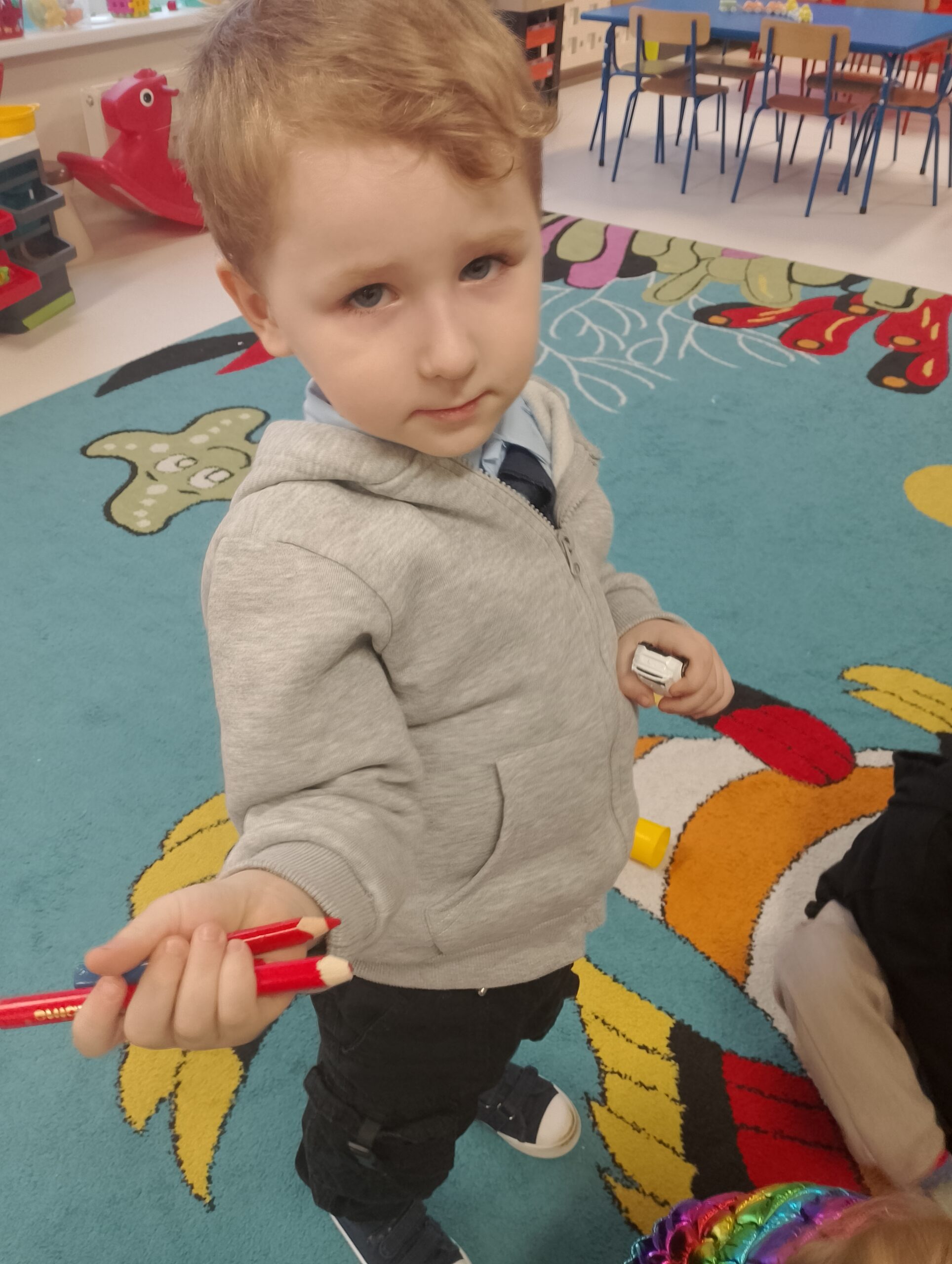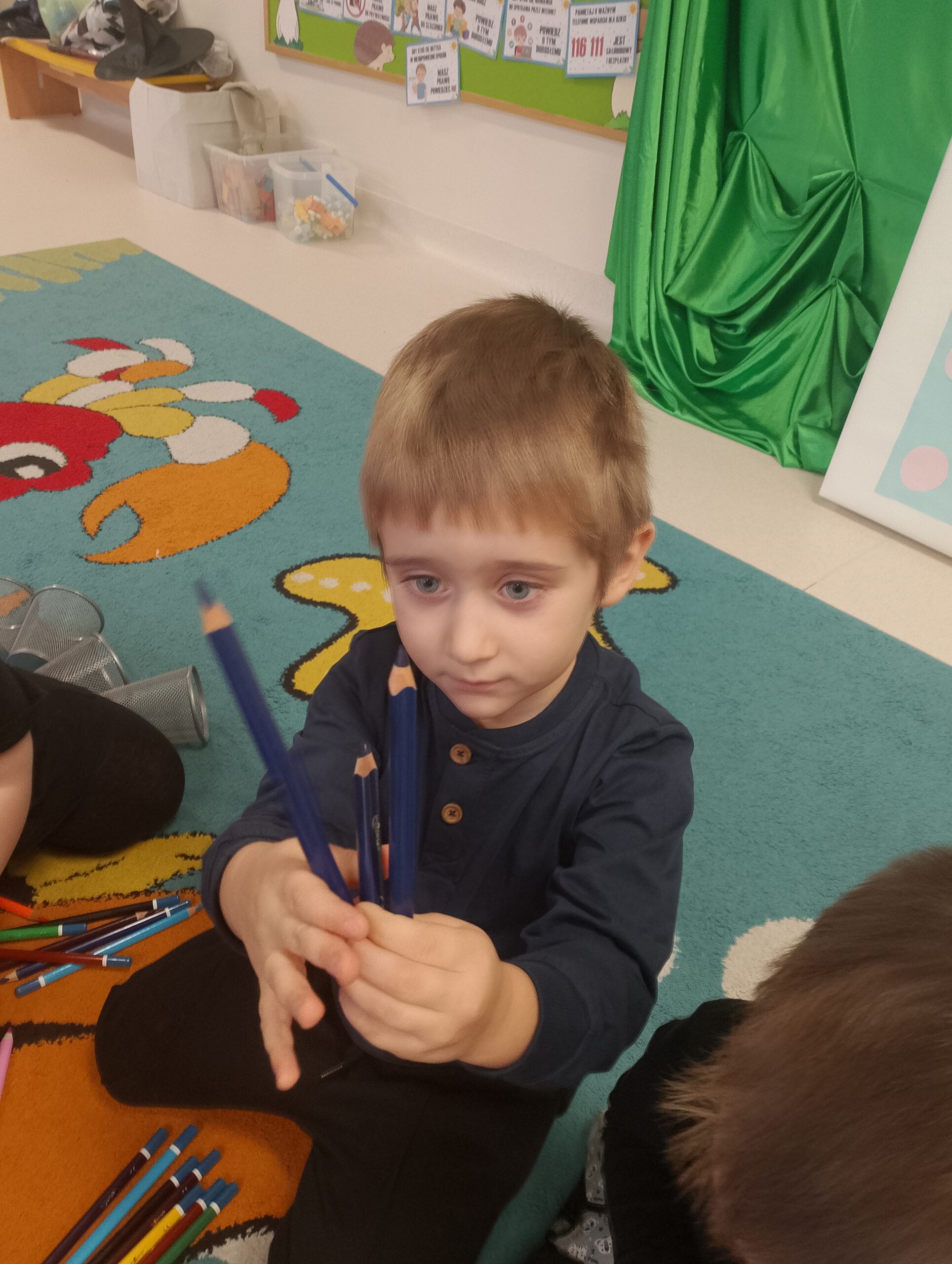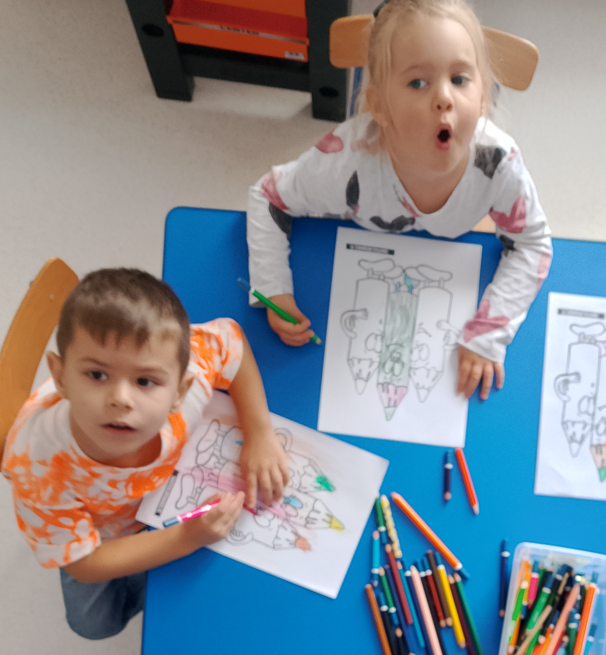 W czasie zajęć dzieci dowiedziały się również, skąd biorą się kredki i jak powstają. Rozmawiały o tym, dlaczego warto dbać o swoje przybory plastyczne, oraz w jaki sposób dzięki kredkom można wyrażać emocje. Nie zabrakło wspólnej zabawy do piosenki „Kolorowe Kredki”