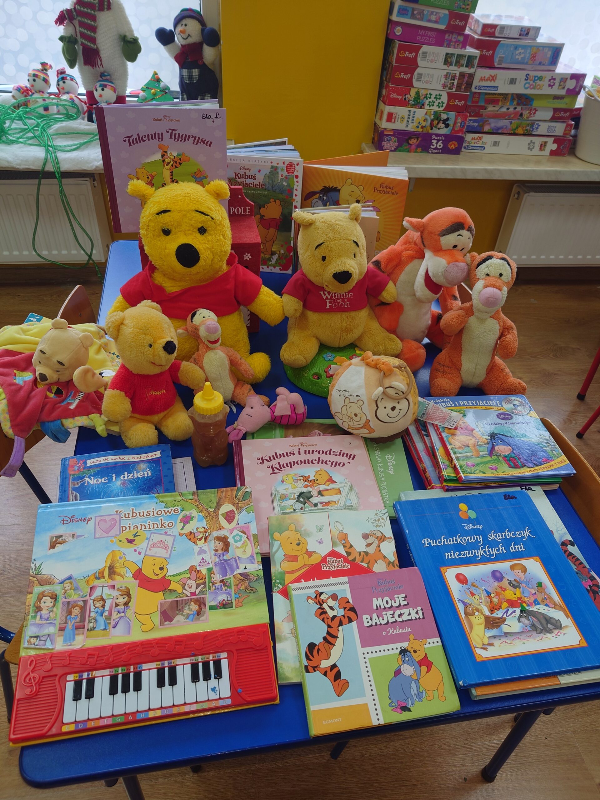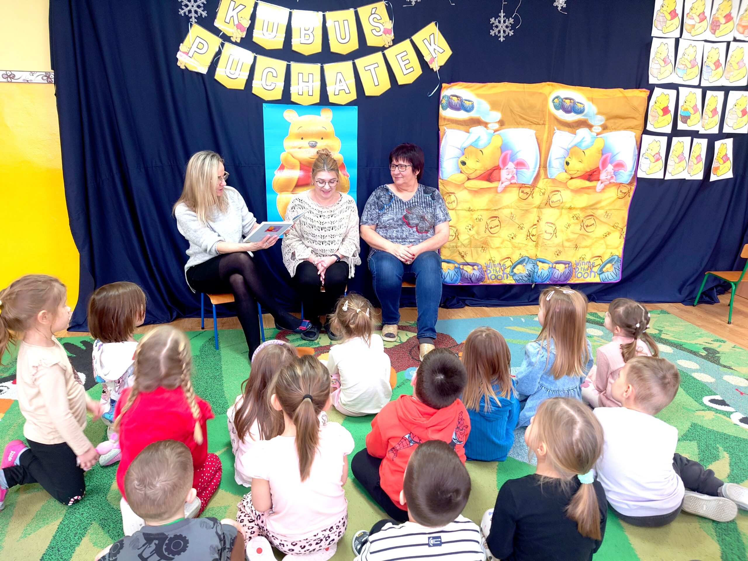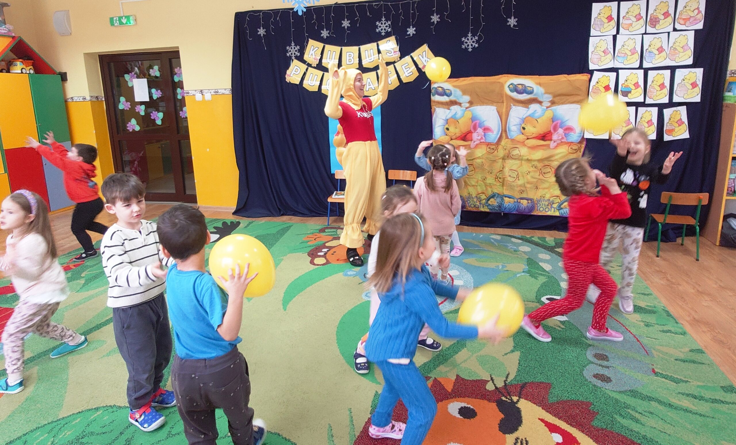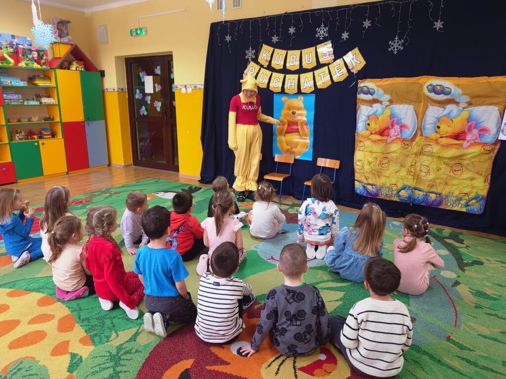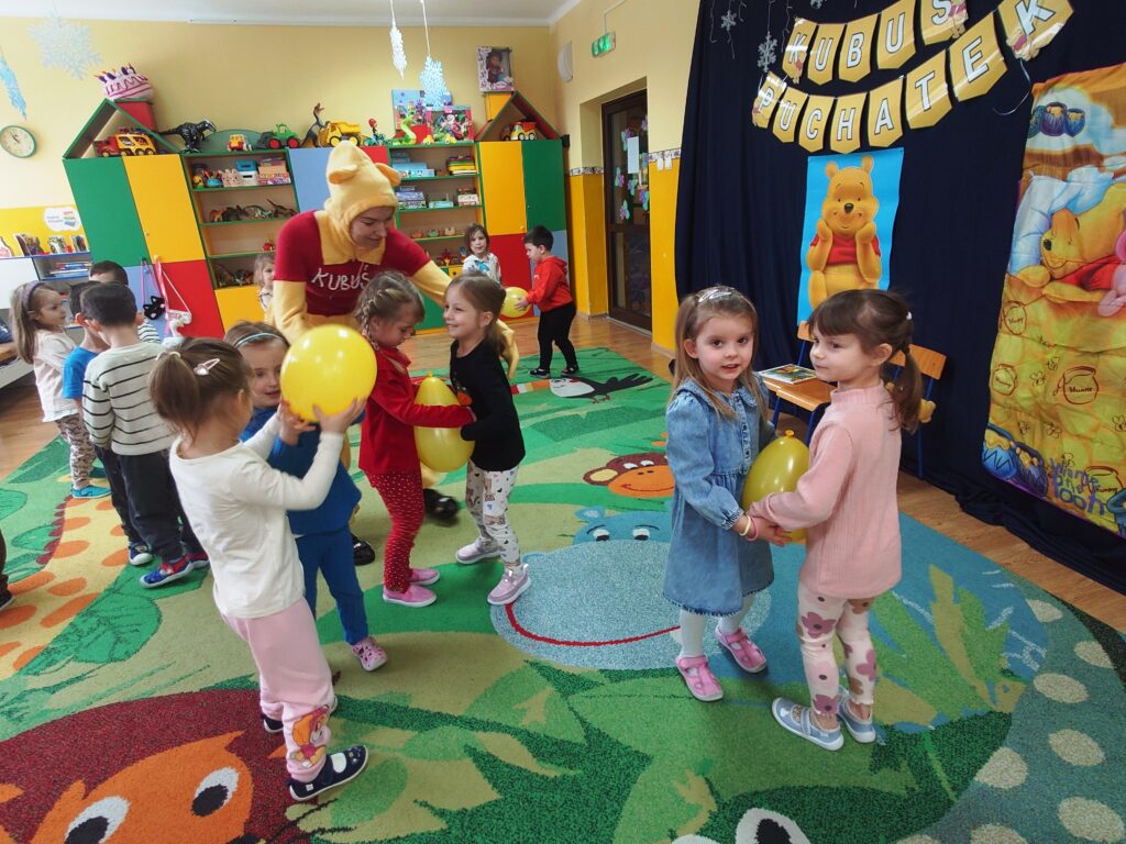 18-tego stycznia obchodzi święto ulubieniec wszystkich dzieci – Kubuś Puchatek, czyli miś o „małym rozumku”, ale „wielkim sercu”. Puchatek uczy, że warto cieszyć się z najmniejszych nawet rzeczy, być życzliwym dla innych, a przyjaźń i pomaganie przyjaciołom jest bardzo ważne. Przygody misia i jego przyjaciół ze Stumilowego Lasu uczą m. in. akceptacji siebie i innych wraz z ich wadami i niedoskonałościami. W grupie Fiołki również postanowiliśmy uczcić to sympatyczne święto. W tym dniu każdy przyniósł do przedszkola przedmioty związane z Kubusiem, dzięki czemu postawał okazały kącik Puchatkowy. Dzieci miały również okazje wziąć udział w zabawach ruchowych wspólnie z Kubusiem Puchatkiem oraz wysłuchać bajki czytanej przez Panią Dyrektor i pracowników przedszkola Panią Martę i Panią Anie.