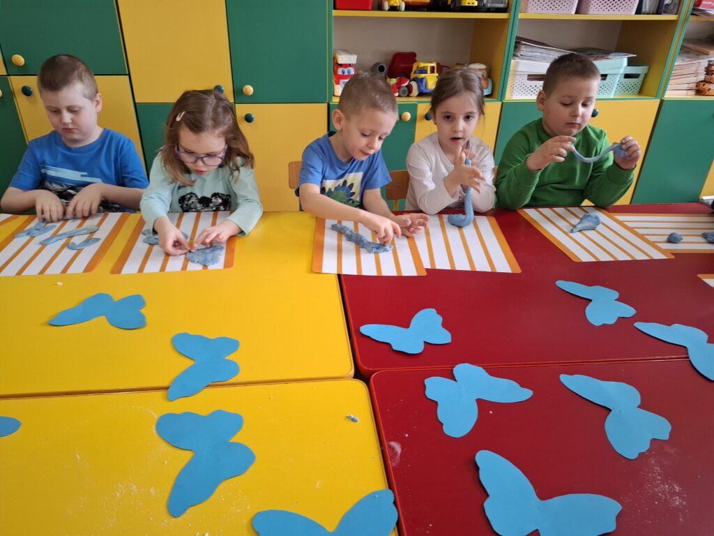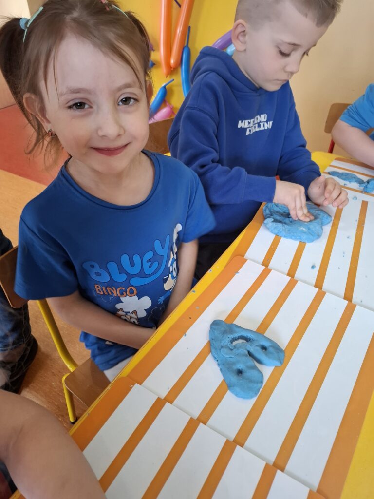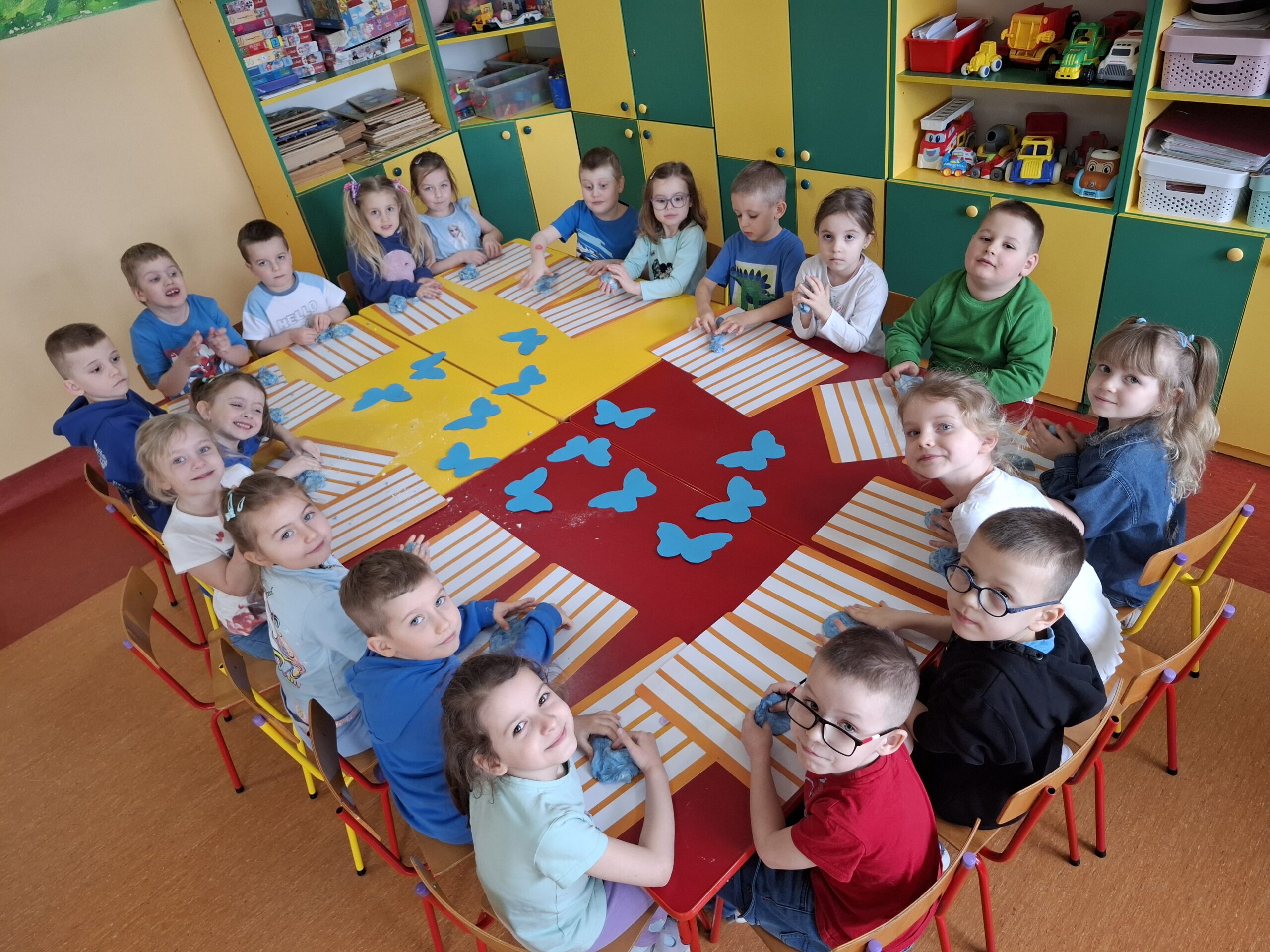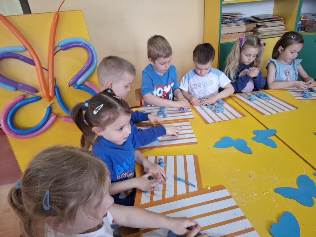 Na zakończenie zajęć przedszkolaki z niebieskiej masy stworzyły własne motylki – symbol jedności z osobami w spektrum autyzmu. Motyl oznacza różnorodność, delikatność oraz przemianę. Podkreśla, że każdy człowiek rozwija się w swoim tempie i na swój sposób, a piękno tkwi właśnie w tej różnorodności.