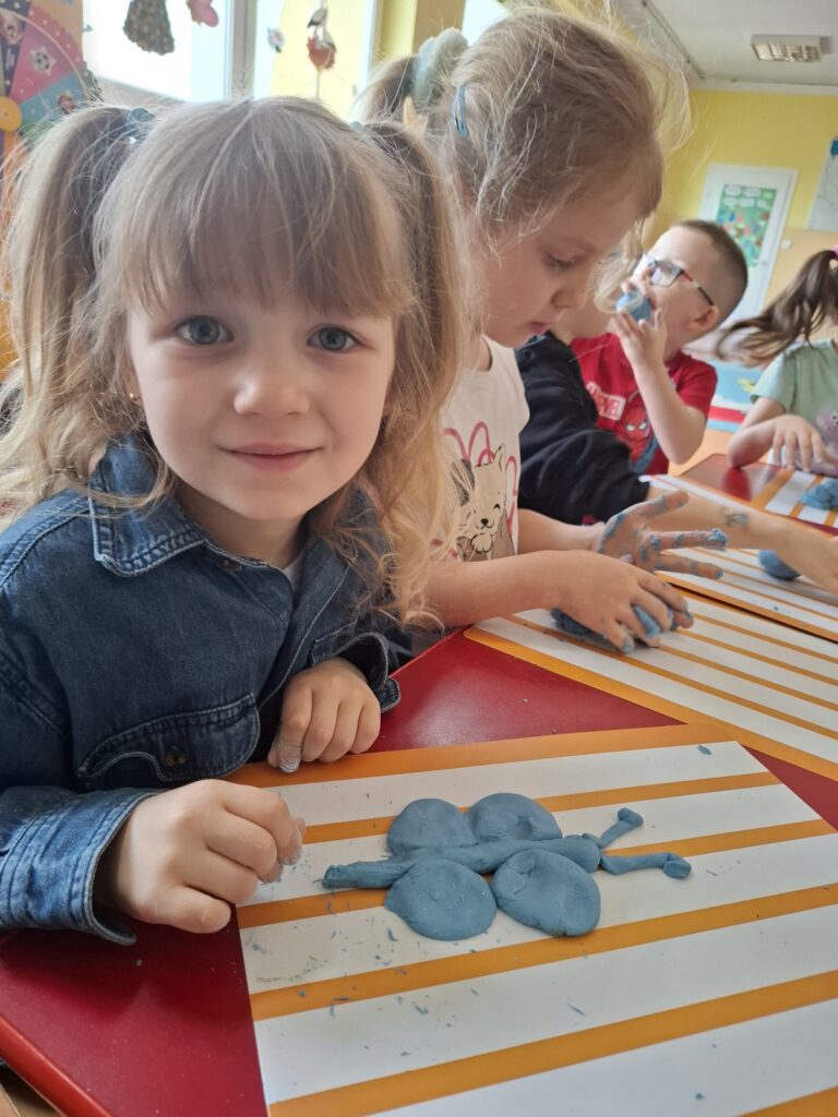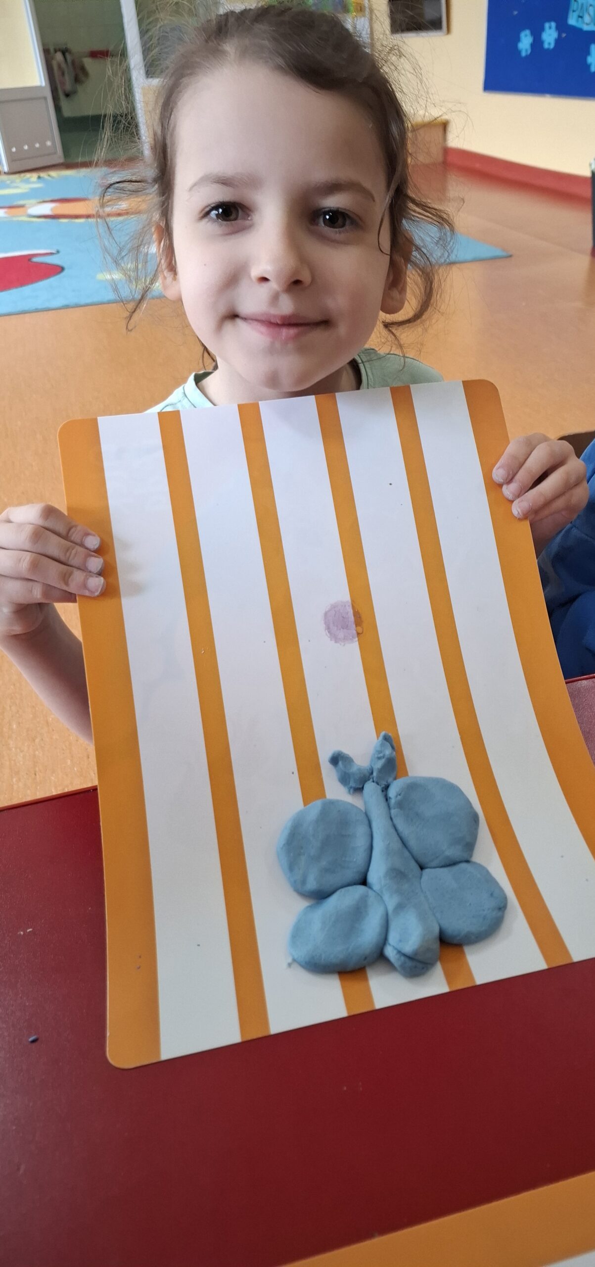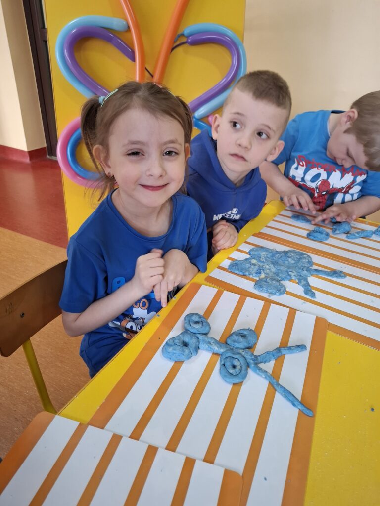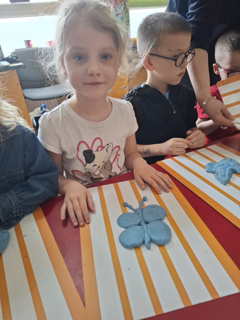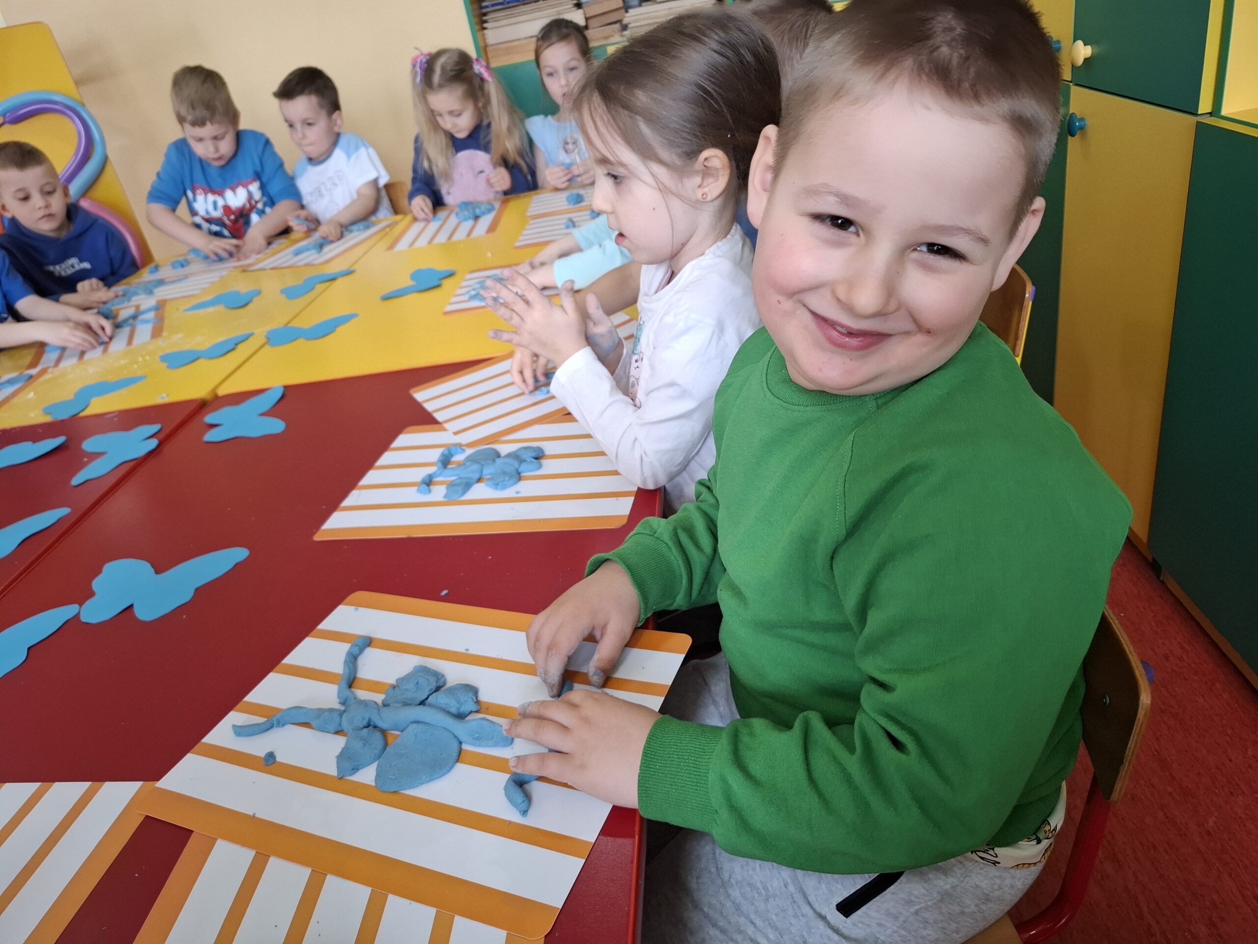 Na zakończenie zajęć przedszkolaki z niebieskiej masy stworzyły własne motylki – symbol jedności z osobami w spektrum autyzmu. Motyl oznacza różnorodność, delikatność oraz przemianę. Podkreśla, że każdy człowiek rozwija się w swoim tempie i na swój sposób, a piękno tkwi właśnie w tej różnorodności.