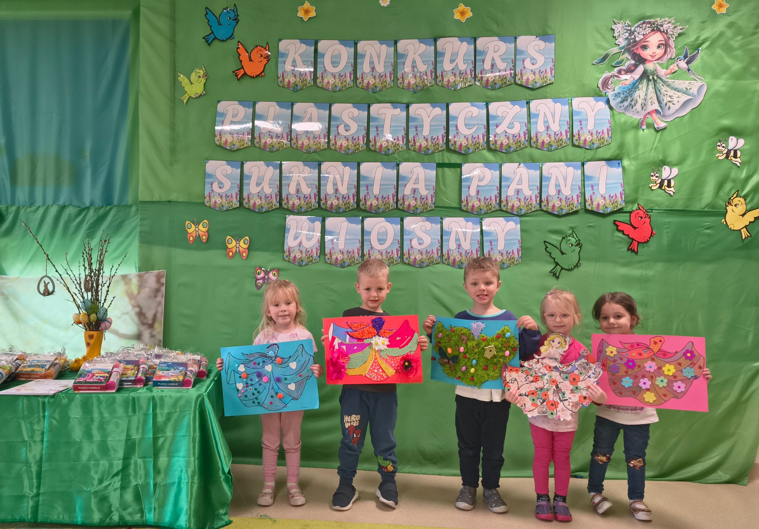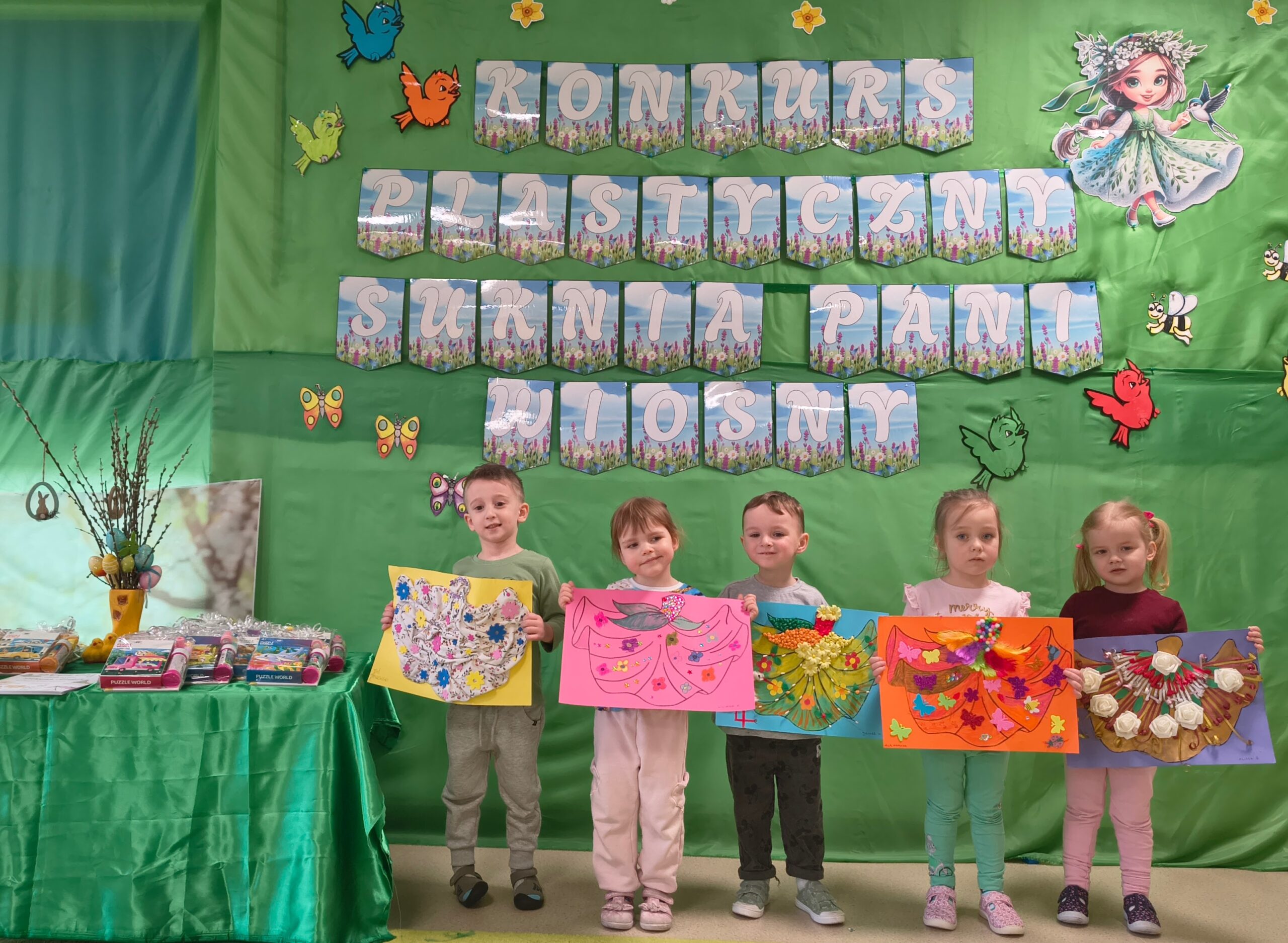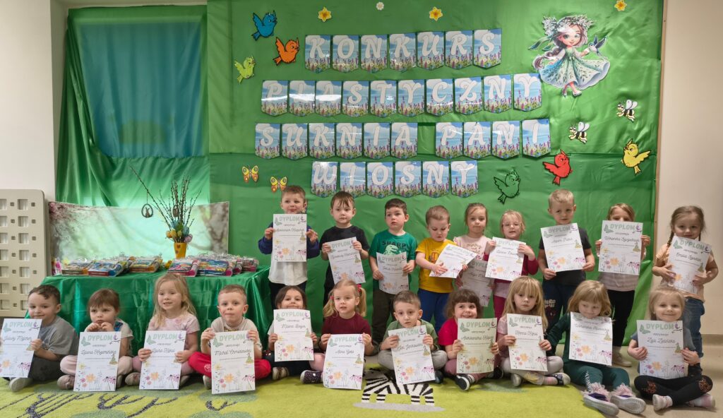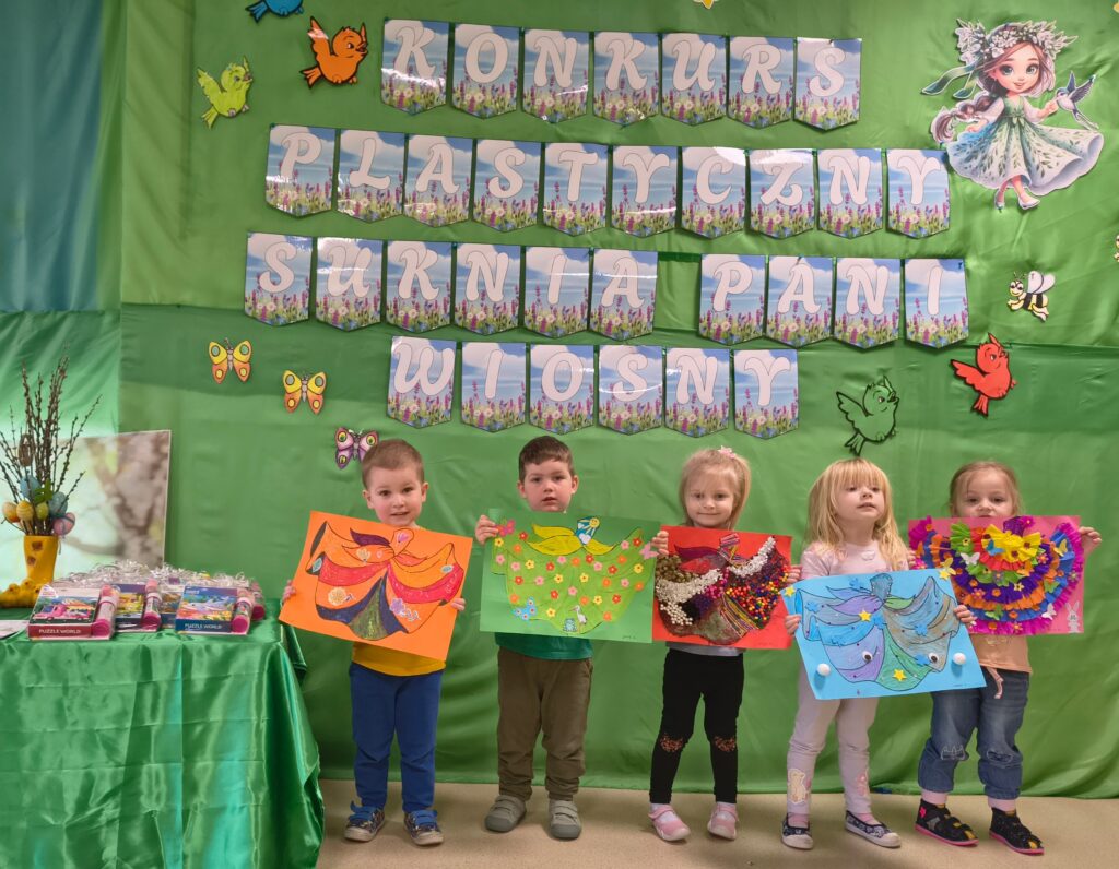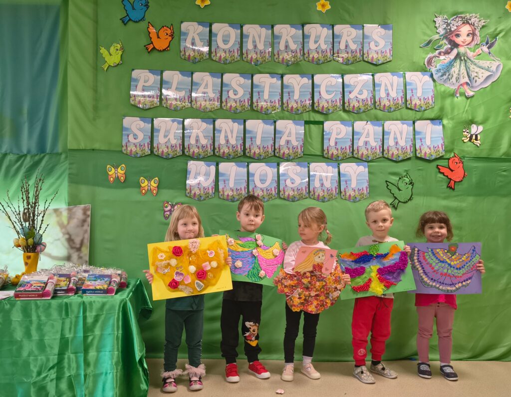 W grupie „Bratki” został zrealizowany wyjątkowy konkurs plastyczny, w którym dzieci wraz z rodzicami miały za zadanie udekorować suknię Pani Wiosny. Celem konkursu było rozwijanie umiejętności plastycznych, kreatywności oraz uwrażliwienie dzieci na piękno nadchodzącej pory roku.