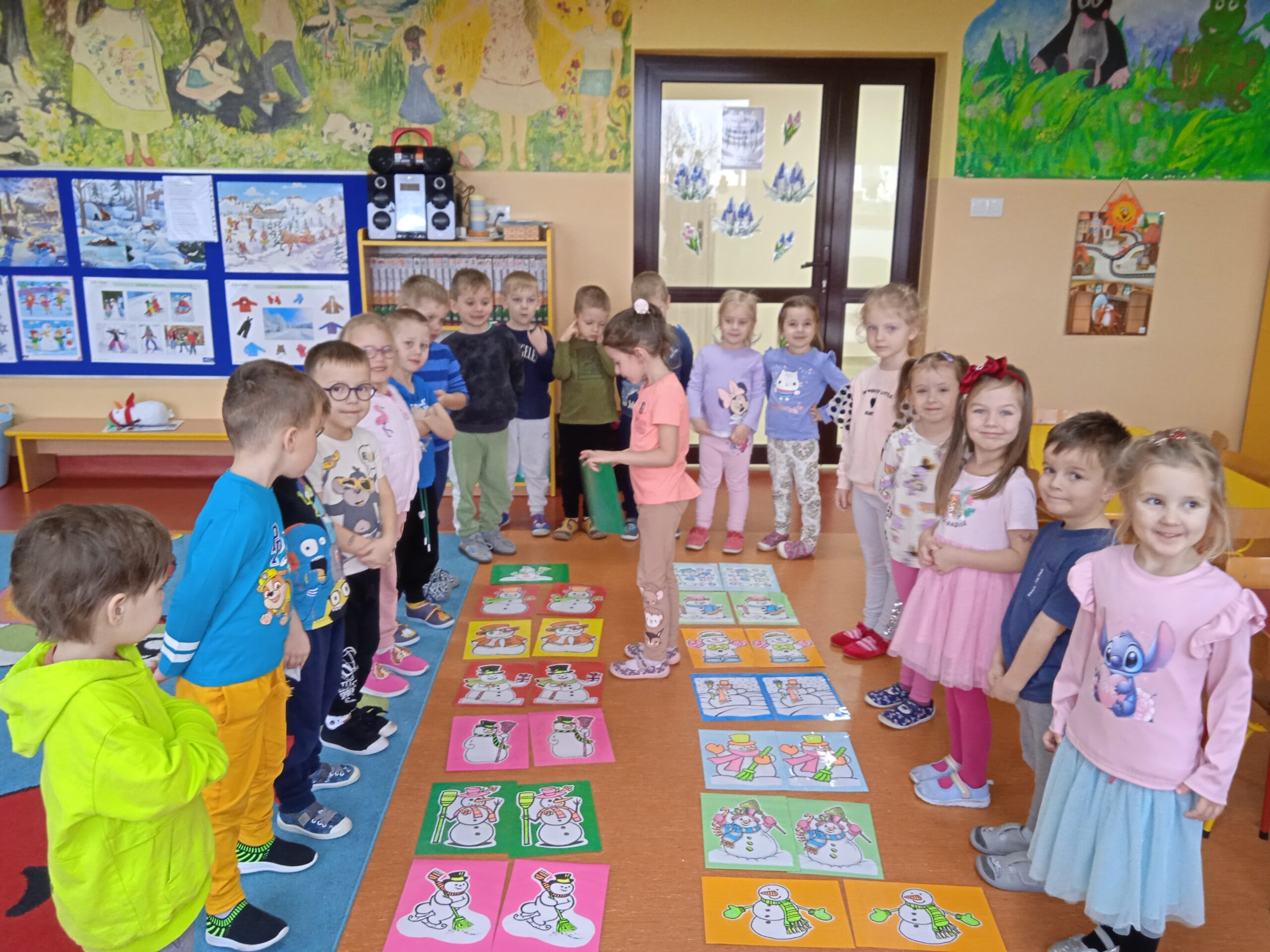 Ćwiczenia i zabawy o tematyce zimowej w grupie Szafirki.