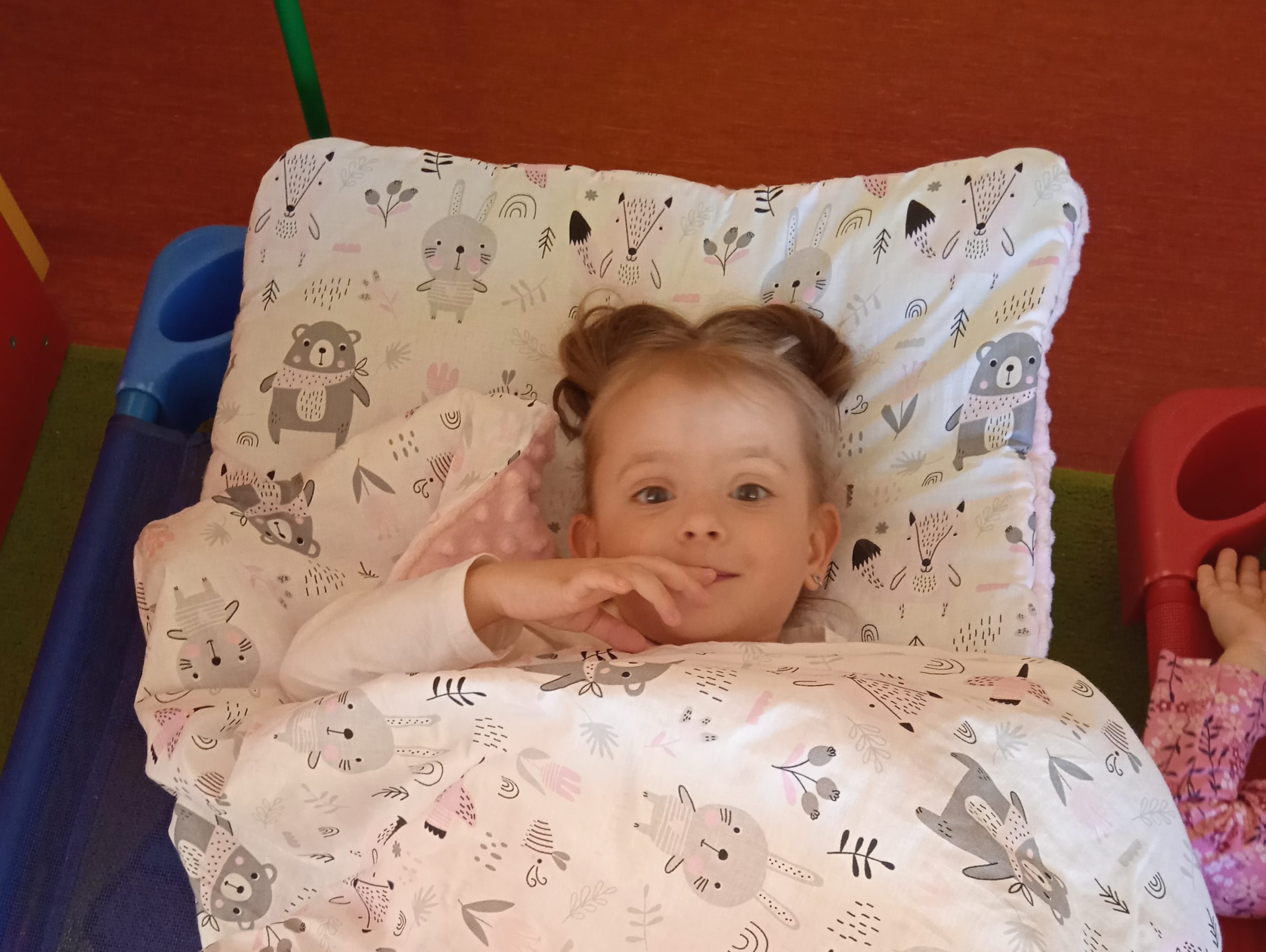 „Poobiedni odpoczynek maluszków z grupy I przy muzyce relaksacyjnej”.