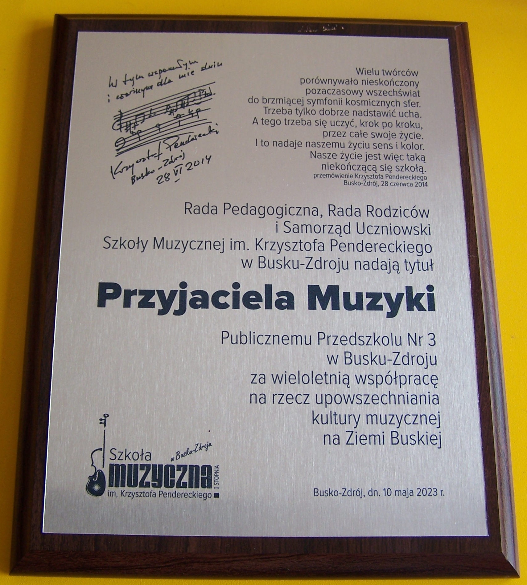 Nasze Przedszkole z tytułem „Przyjaciela Muzyki”