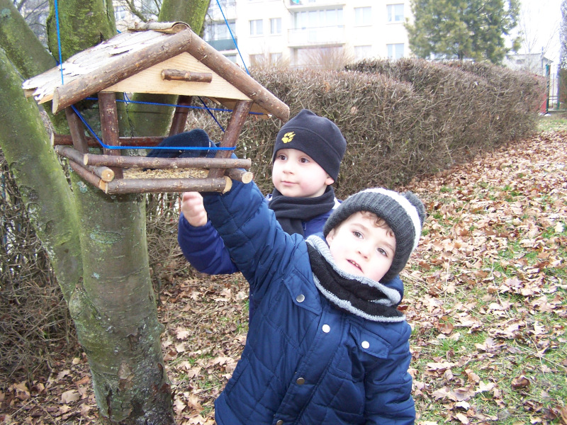 Przedszkolaki dbają zimą o ptaki