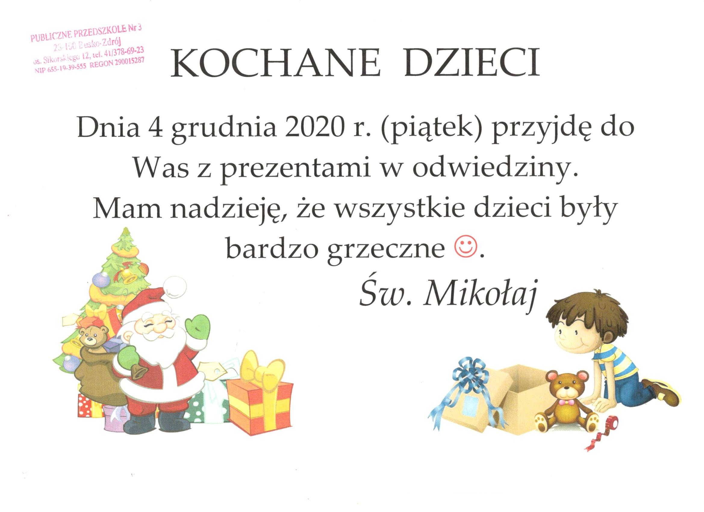 Wizyta Świętego Mikołaja 2020 r.