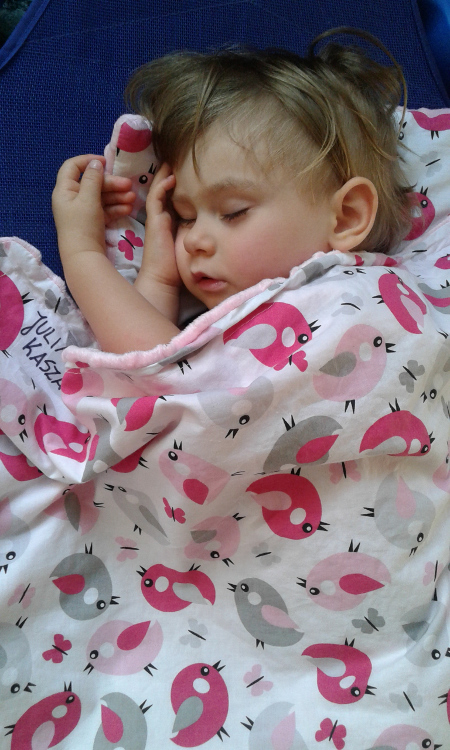 Poobiedni odpoczynek maluszków z grupy I przy muzyce relaksacyjnej (wych. Elżbieta L., Dorota B.)