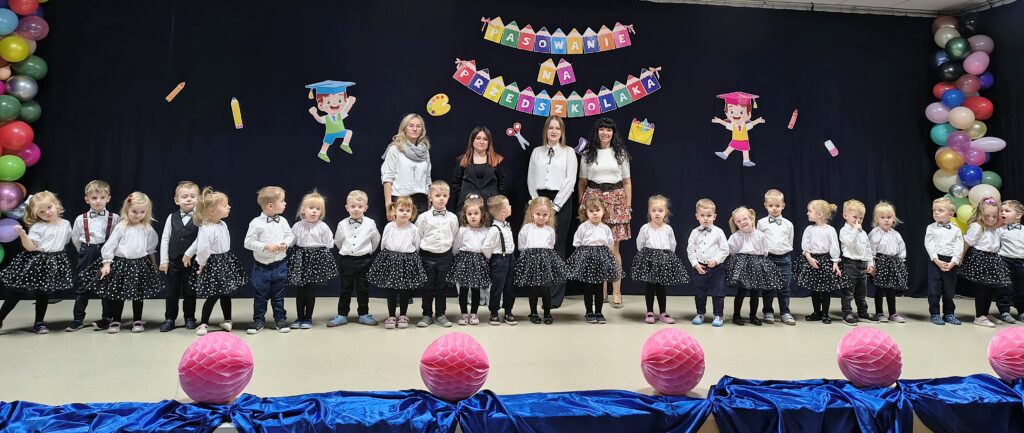 Uroczystość „Pasowania na Przedszkolaka” to pierwszy tak ważny dzień dla dzieci, które we wrześniu zaczęły swoją przygodę z przedszkolem. Spotkanie rozpoczęło się od części artystycznej, w której trzylatki zaprezentowały swoje umiejętności – dając tym samym dowód, jak dużo już potrafią. Następnie „Bratki” złożyły uroczyste ślubowanie, a Pani Dyrektor pasowała ich na przedszkolaków. Na pamiątkę tego ważnego dnia dzieci otrzymały dyplomy i medale. Niewątpliwie to ogromne i niezapomniane przeżycie na długo pozostanie w pamięci naszych przedszkolaków i ich rodziców.
