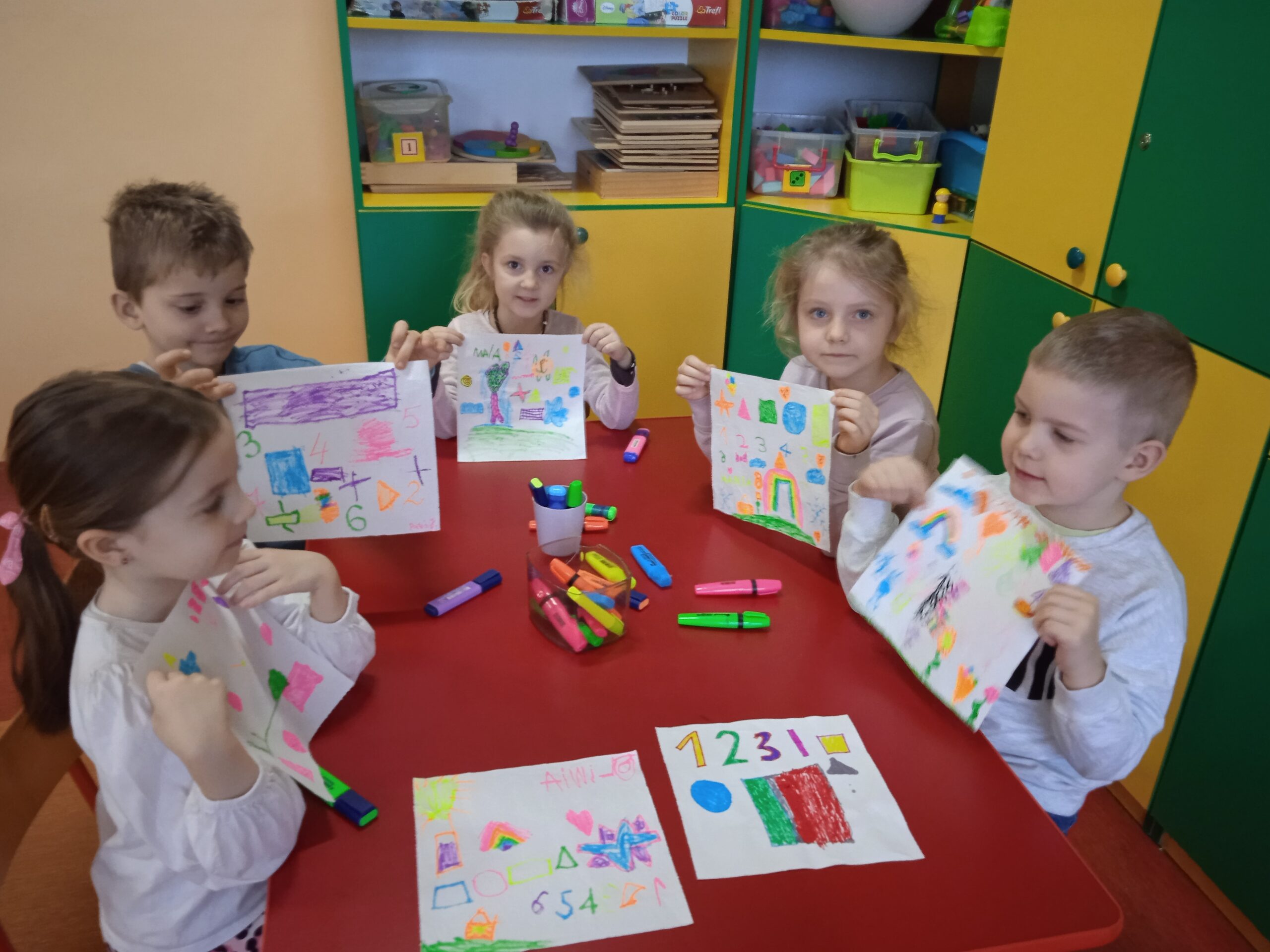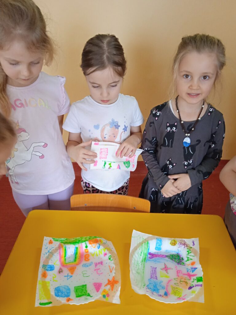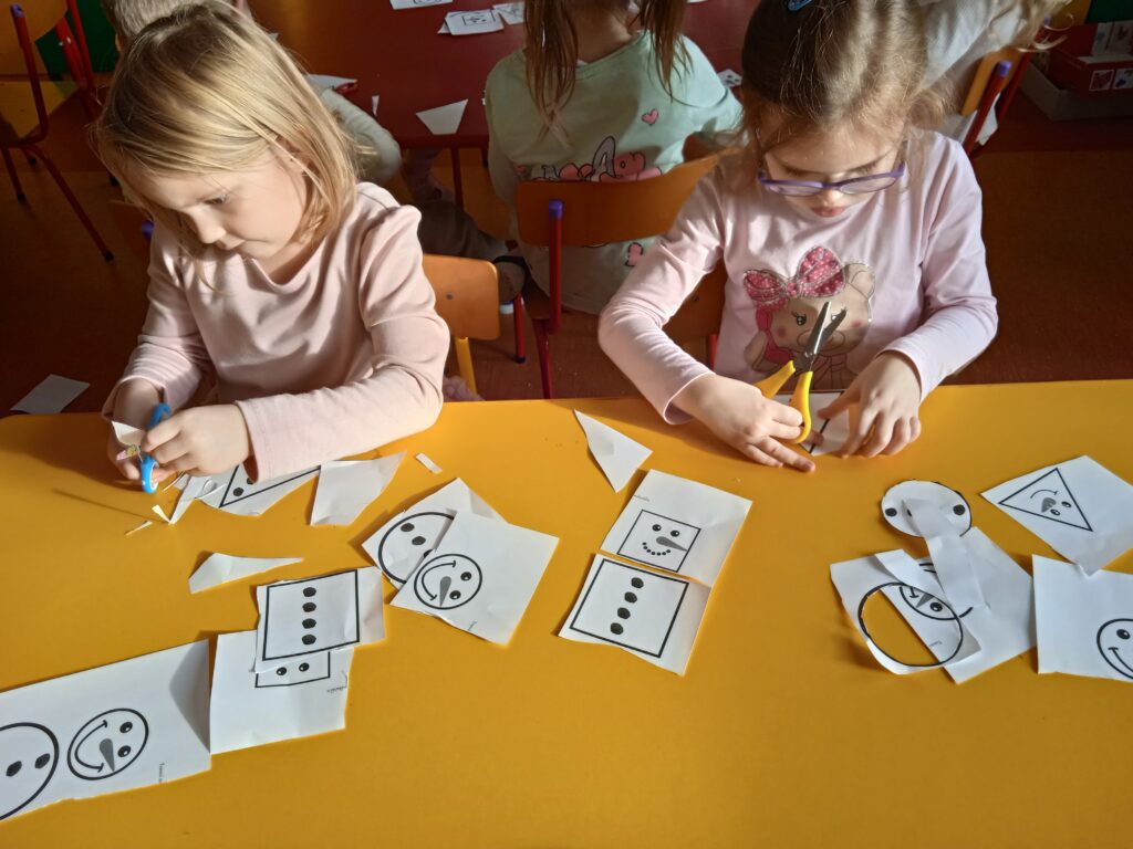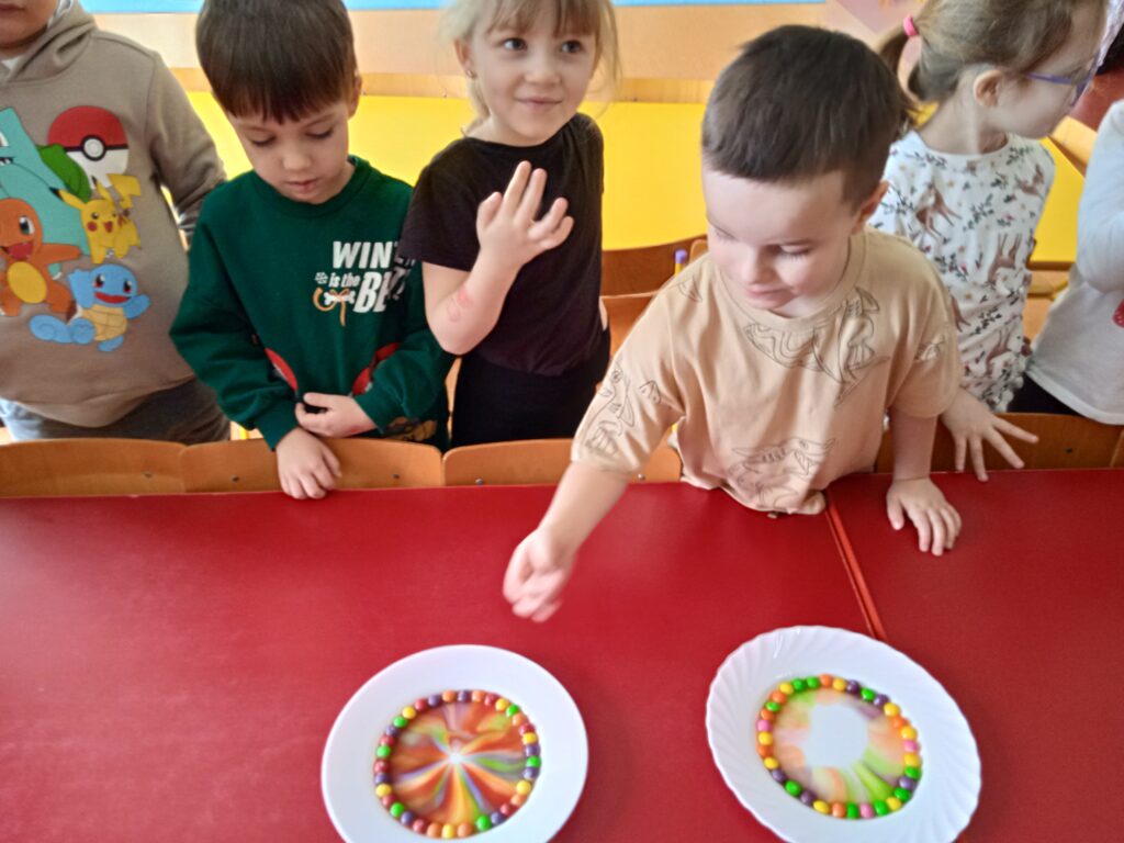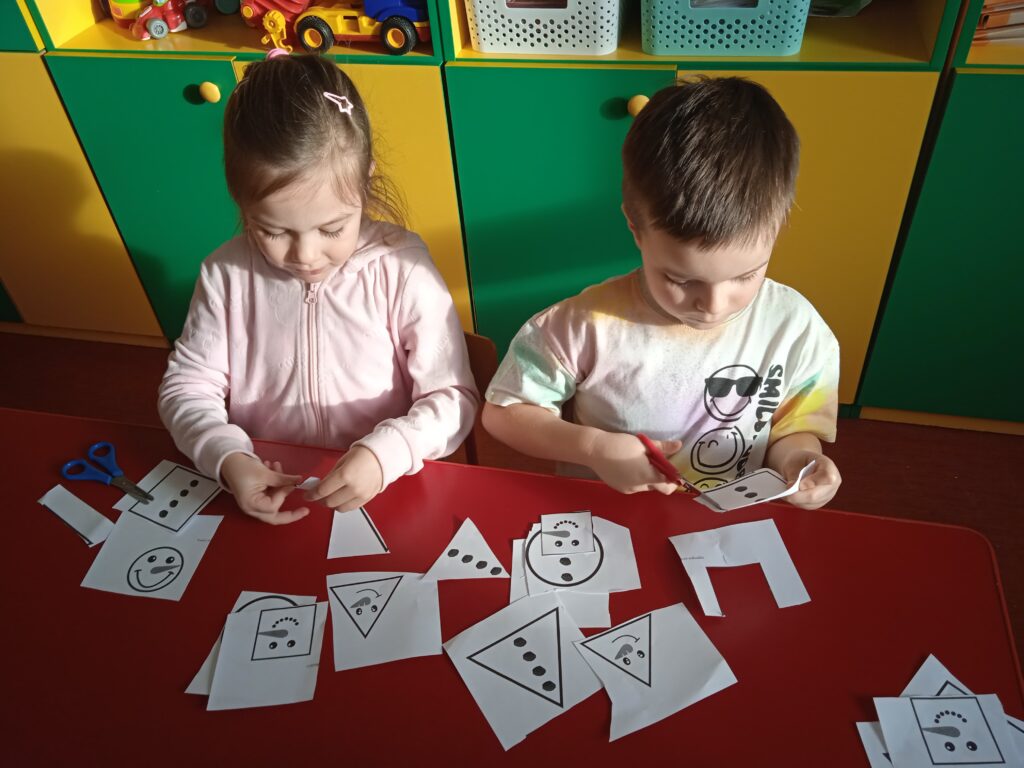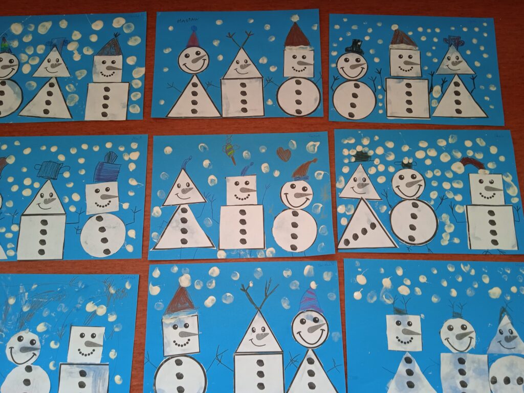 W ramach Innowacji Pedagogicznej „Kreatywna Matematyka” dzieci realizowały moduły „Matematyczne eksperymenty” i „Zimowa geometria”. Uczestniczyły w zabawie badawczej „Słodka geometria” z wykorzystaniem kolorowych cukierków i zabawach matematycznych : „Czystość to zdrowie”, „Matematyczne czary – mary” i „Bałwankowa matematyka”. Poprzez tego rodzaju zabawy dzieci kształtują myślenie przyczynowo – skutkowe, doświadczają matematyki za pomocą zmysłów dotyku i wzroku, rozpoznają i nazywają figury geometryczne, cyfry, rozwijają ciekawość i zainteresowania, oraz czerpią radość z odkrywania i eksperymentowania.
