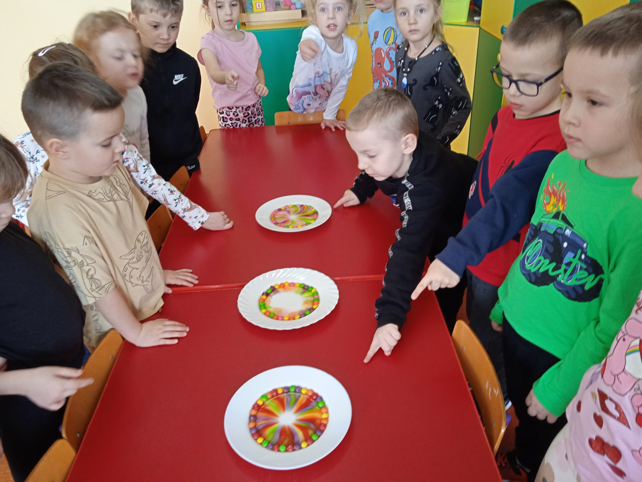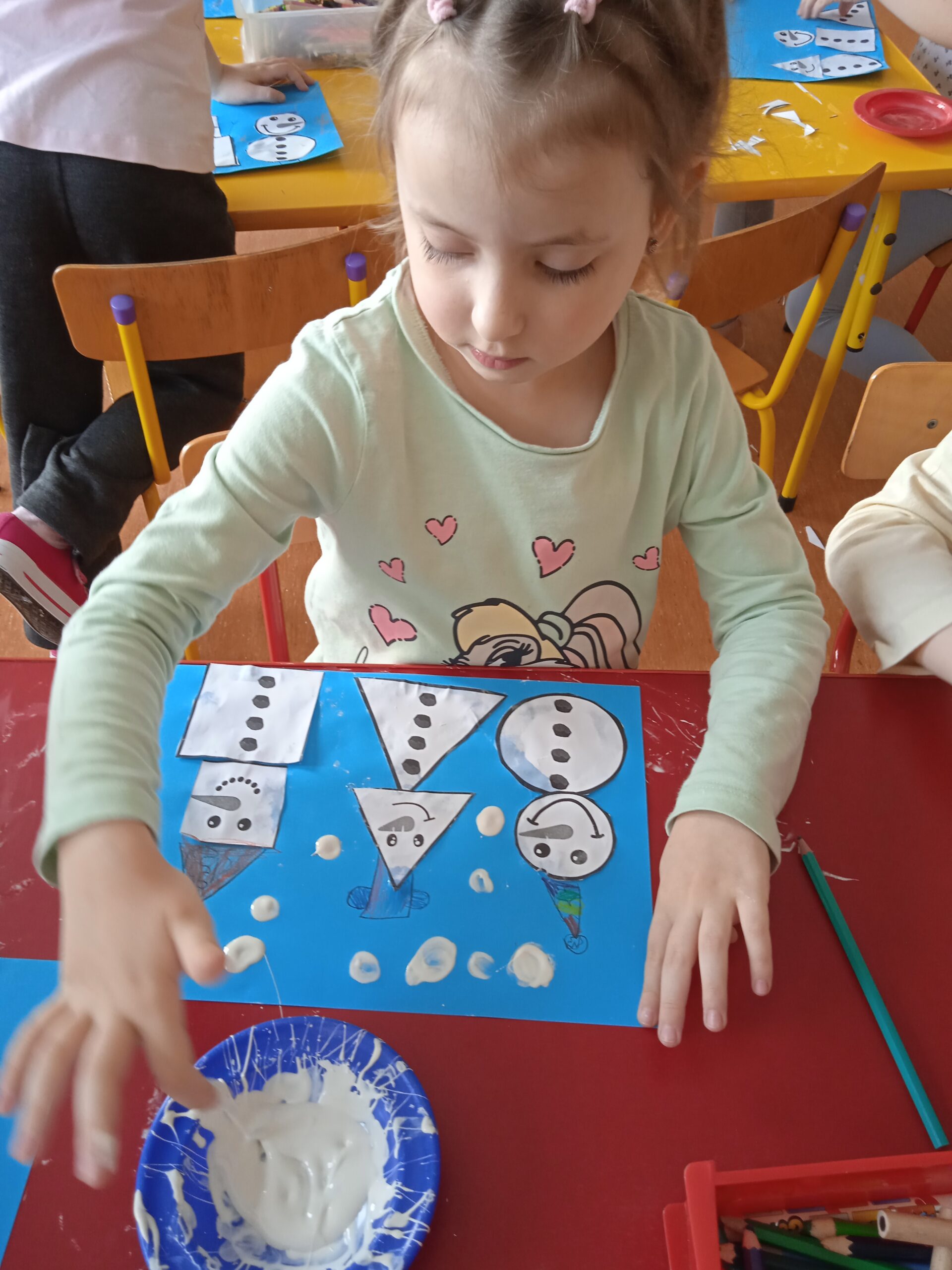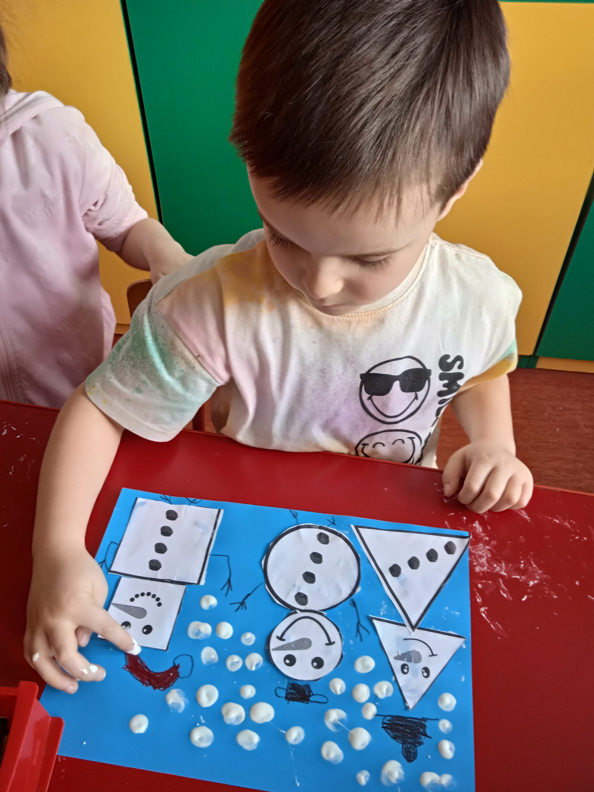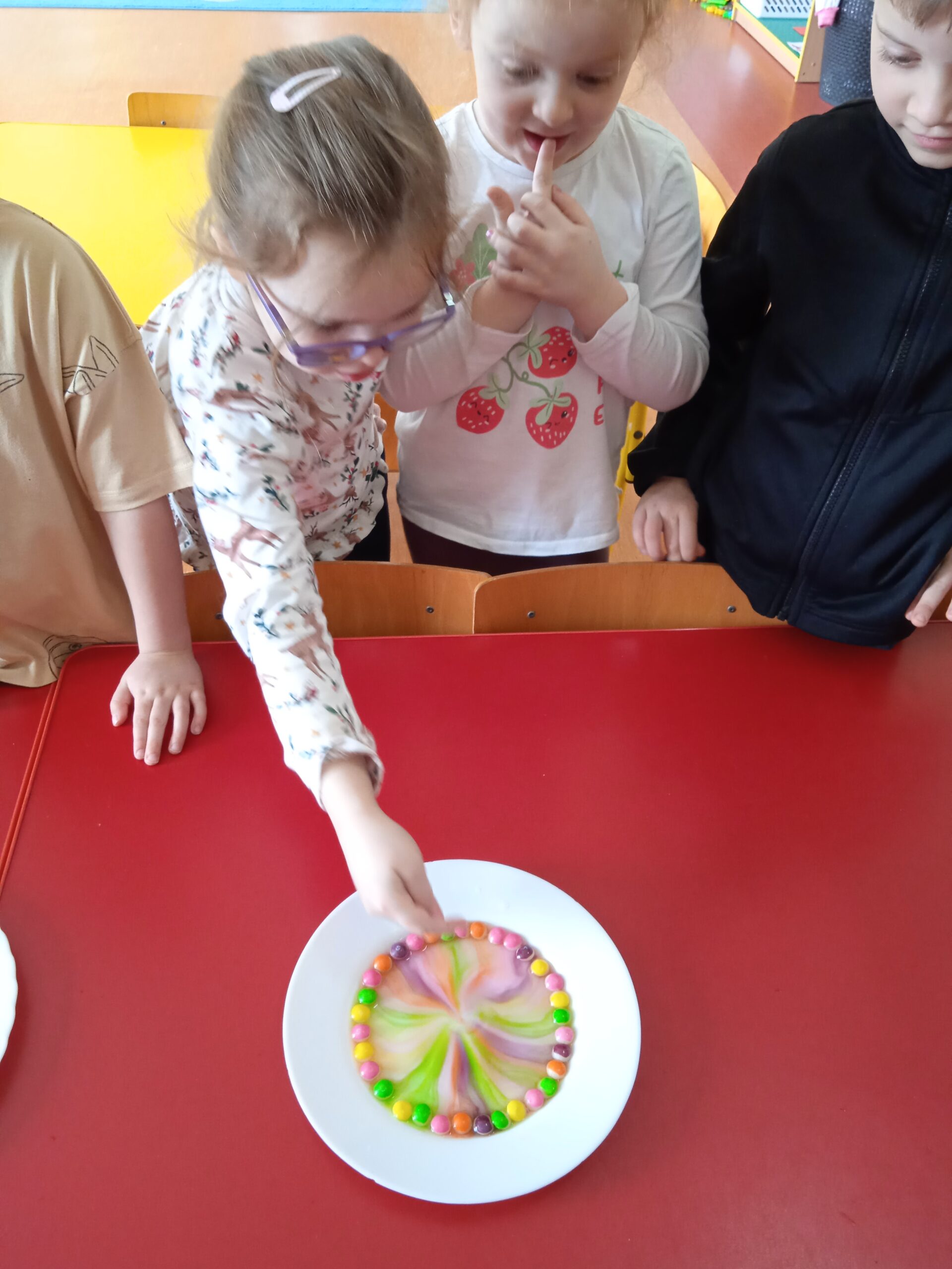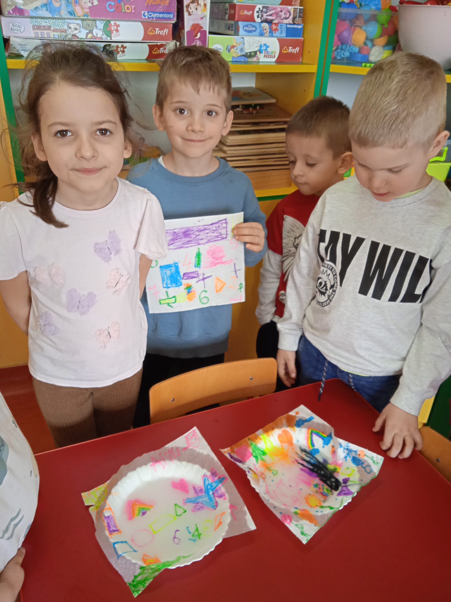 W ramach Innowacji Pedagogicznej „Kreatywna Matematyka” dzieci realizowały moduły „Matematyczne eksperymenty” i „Zimowa geometria”. Uczestniczyły w zabawie badawczej „Słodka geometria” z wykorzystaniem kolorowych cukierków i zabawach matematycznych : „Czystość to zdrowie”, „Matematyczne czary – mary” i „Bałwankowa matematyka”. Poprzez tego rodzaju zabawy dzieci kształtują myślenie przyczynowo – skutkowe, doświadczają matematyki za pomocą zmysłów dotyku i wzroku, rozpoznają i nazywają figury geometryczne, cyfry, rozwijają ciekawość i zainteresowania, oraz czerpią radość z odkrywania i eksperymentowania.