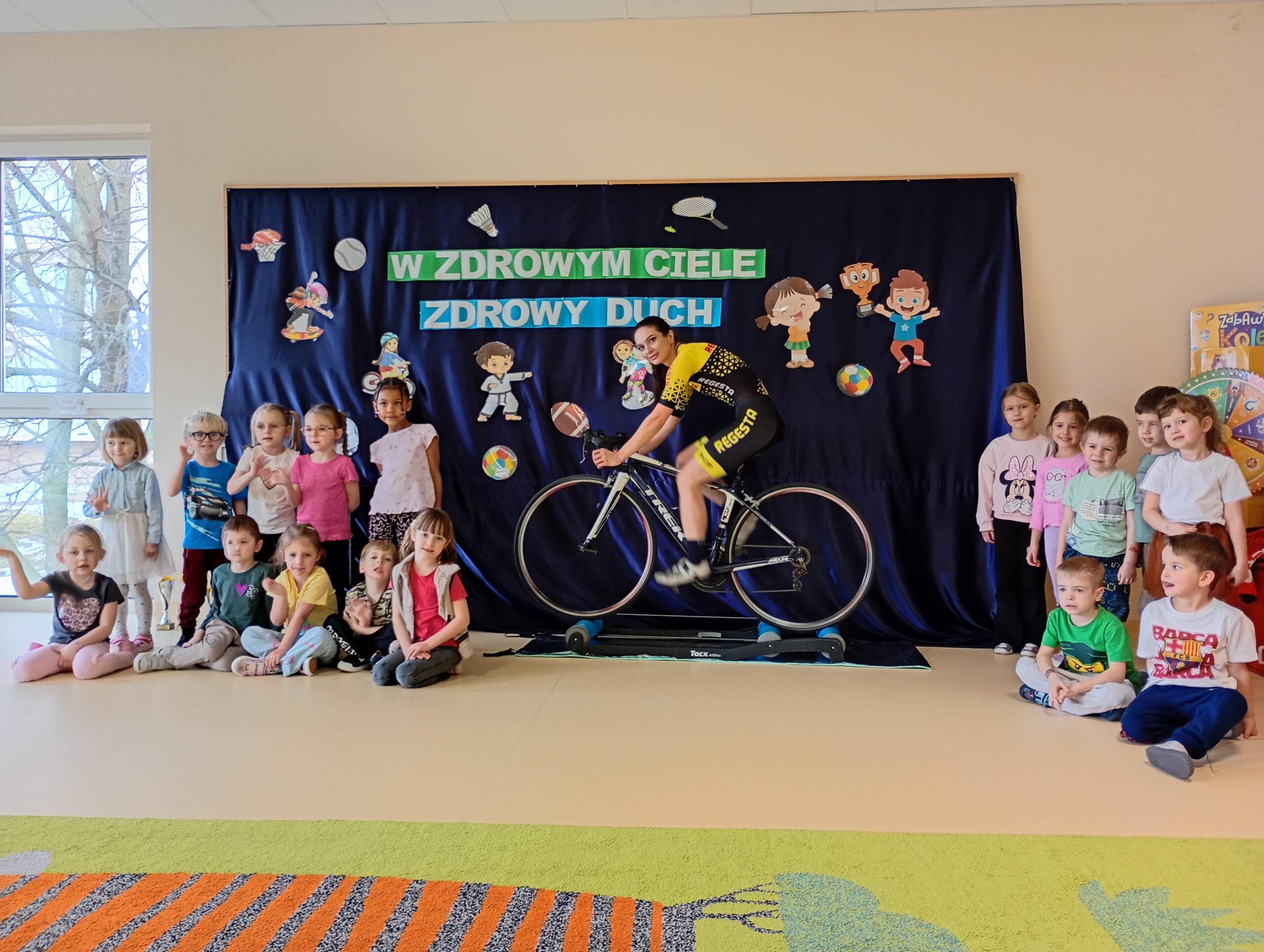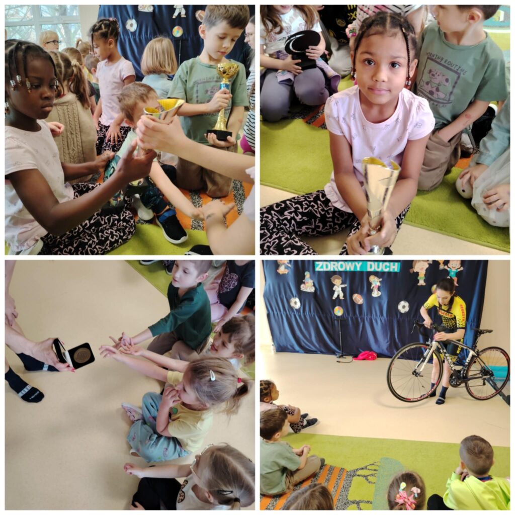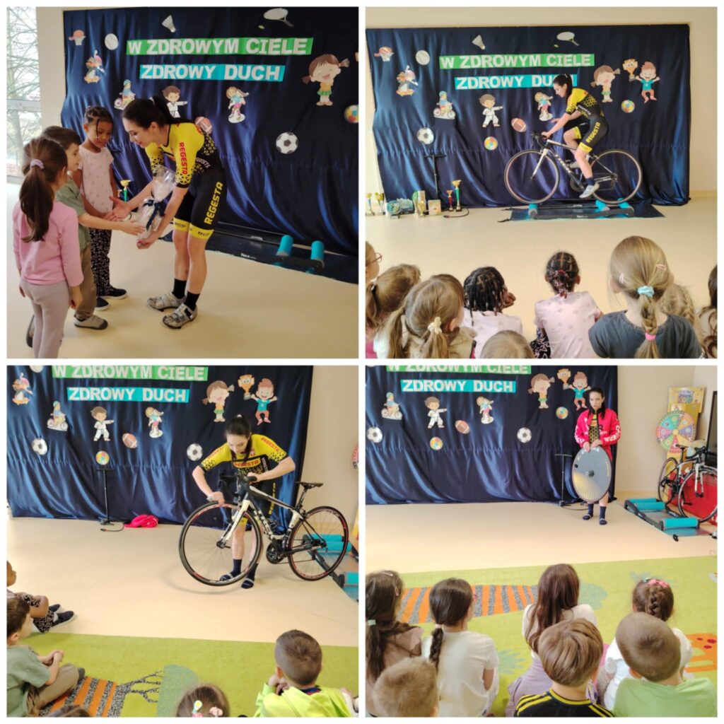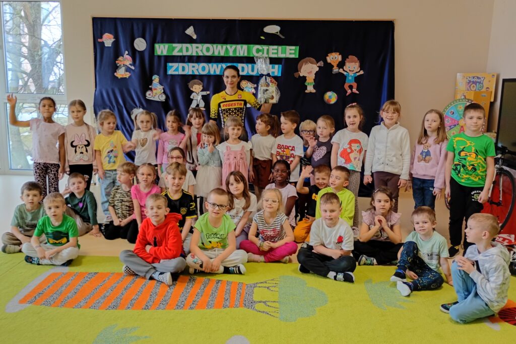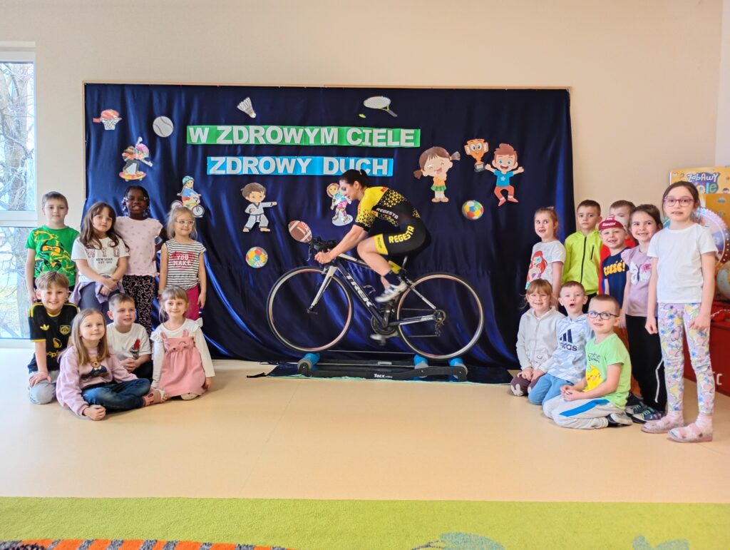 W ramach Tygodnia Zdrowia przedszkolaków z grup „Krokusy” oraz „Stokrotki” odwiedziła Pani Olena Lipiec, utalentowana kolarka szosowa i biegaczka, a także Sportowiec Roku 2025. Podczas zajęć dzieci dowiedziały się, jak ważny jest sport oraz zdrowe odżywianie. Przekonały się również, że sport to styl życia, który łączy pasję oraz ciężką pracę, dzięki której możemy odnieść sukces w zawodach sportowych. Dzieci były zachwycone wizytą.
