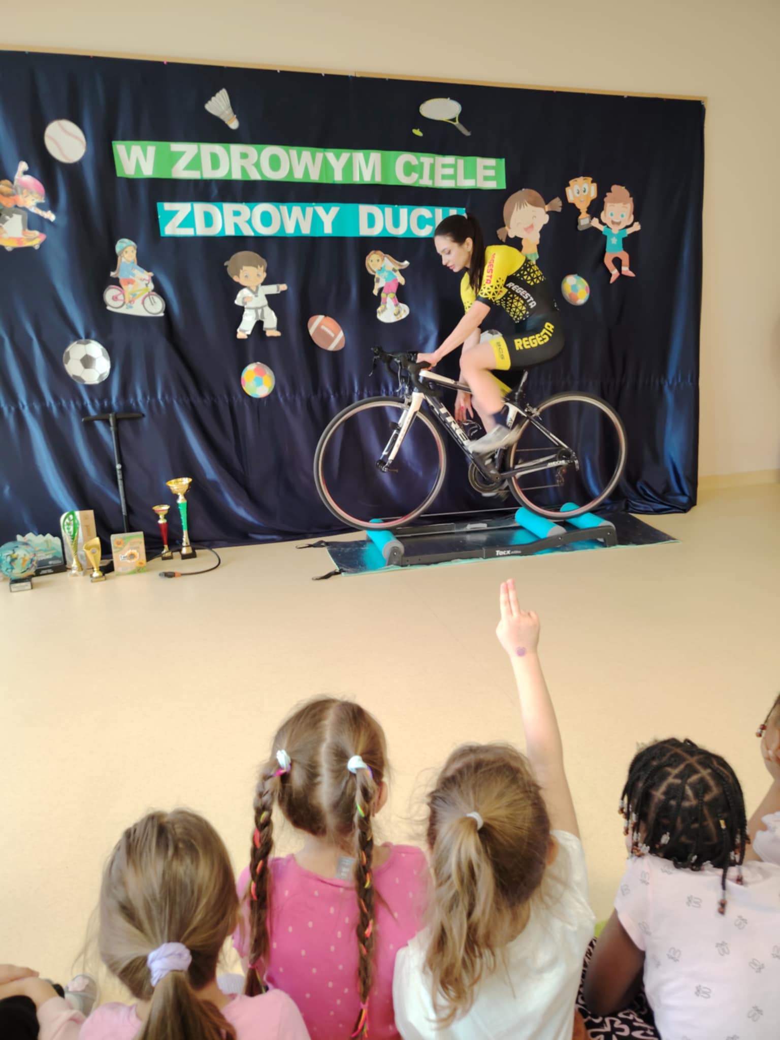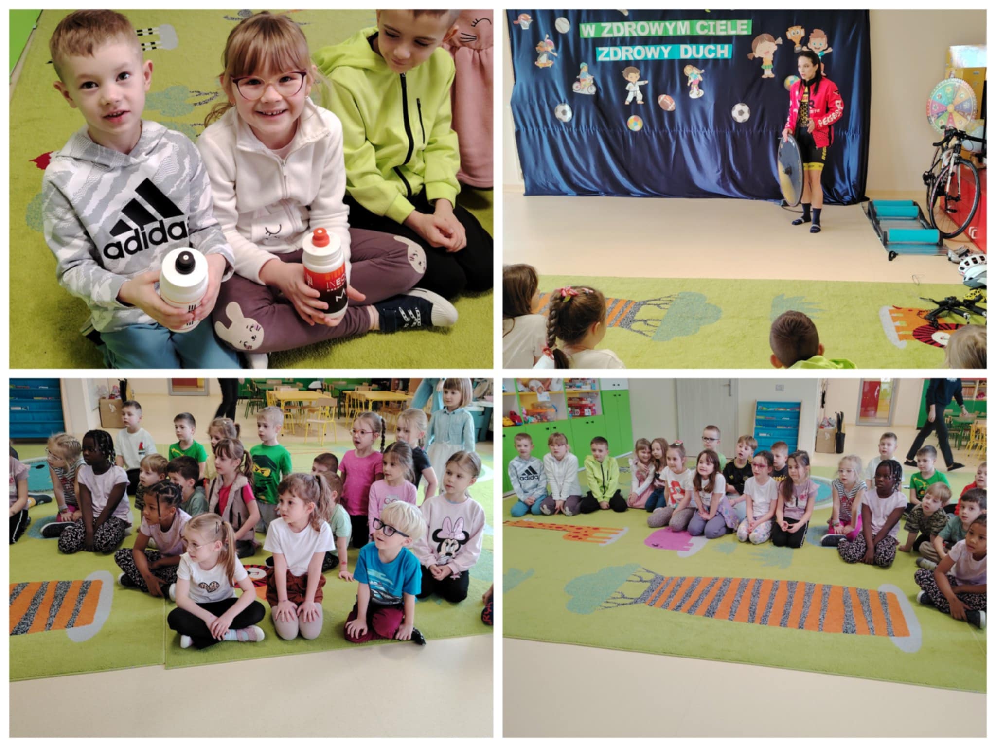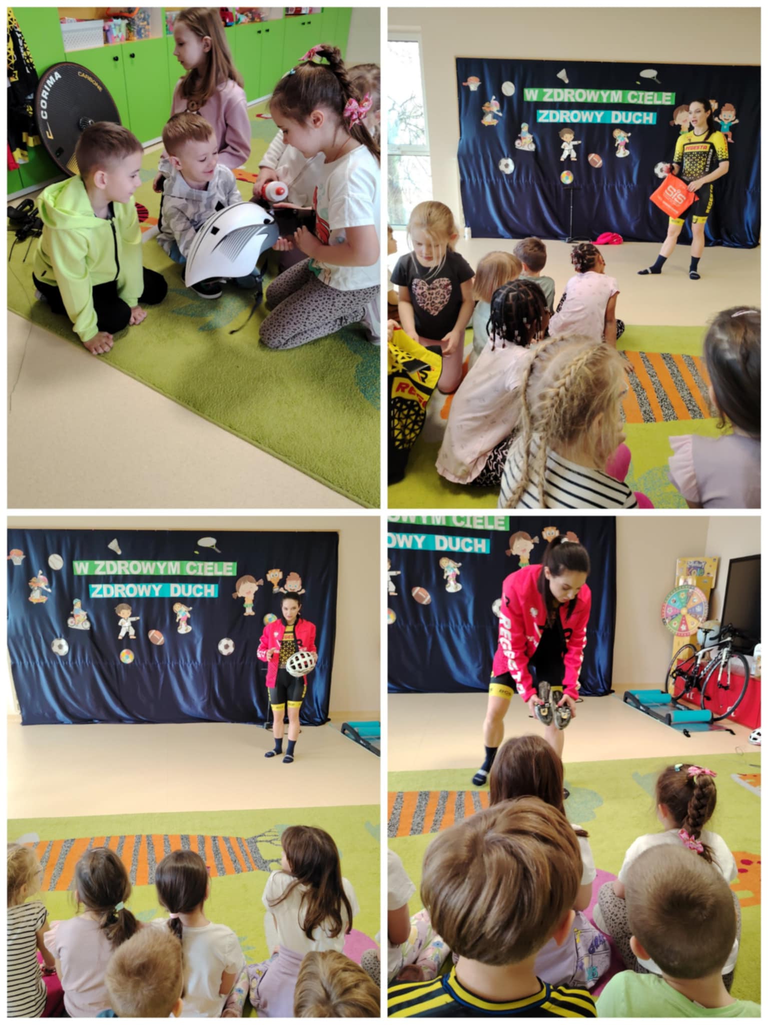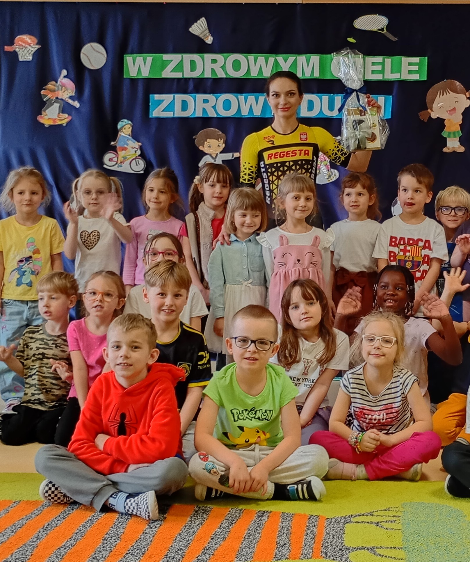 W ramach Tygodnia Zdrowia przedszkolaków z grup „Krokusy” oraz „Stokrotki” odwiedziła Pani Olena Lipiec, utalentowana kolarka szosowa i biegaczka, a także Sportowiec Roku 2025. Podczas zajęć dzieci dowiedziały się, jak ważny jest sport oraz zdrowe odżywianie. Przekonały się również, że sport to styl życia, który łączy pasję oraz ciężką pracę, dzięki której możemy odnieść sukces w zawodach sportowych. Dzieci były zachwycone wizytą.