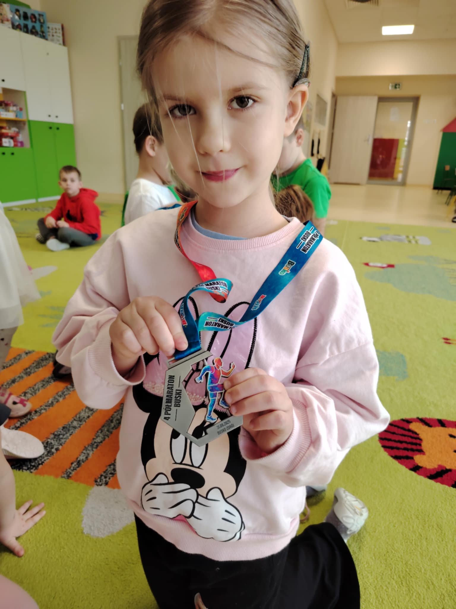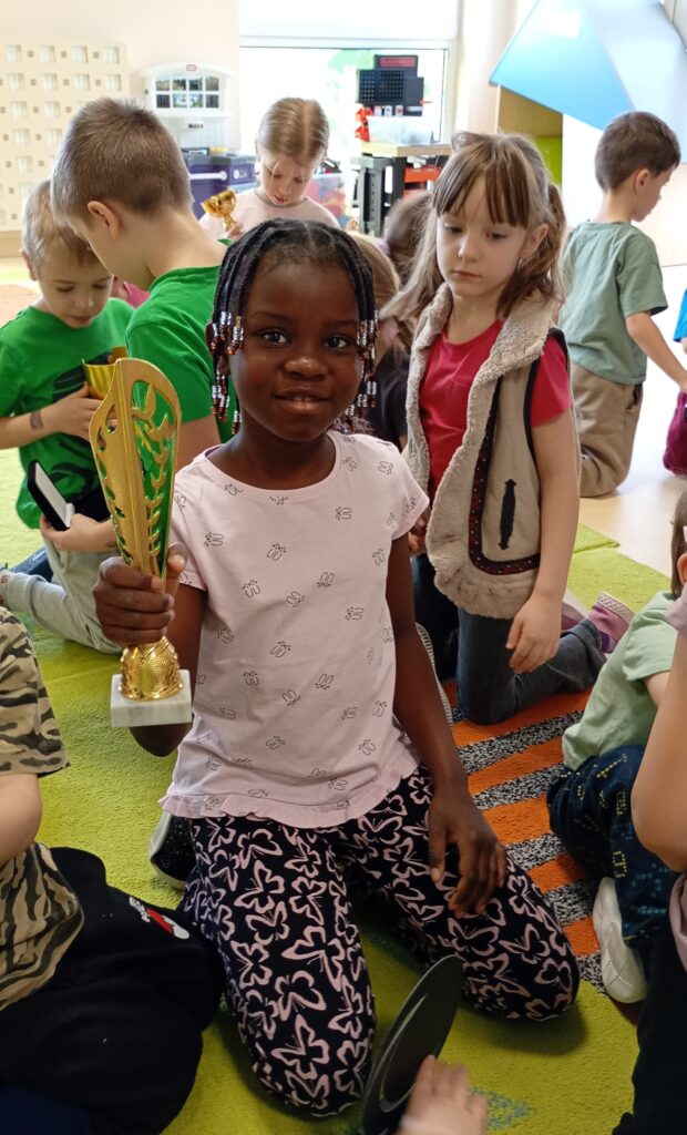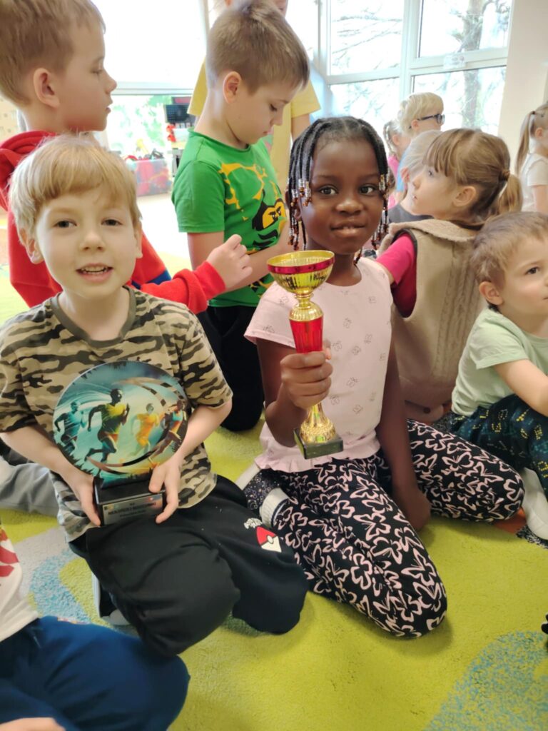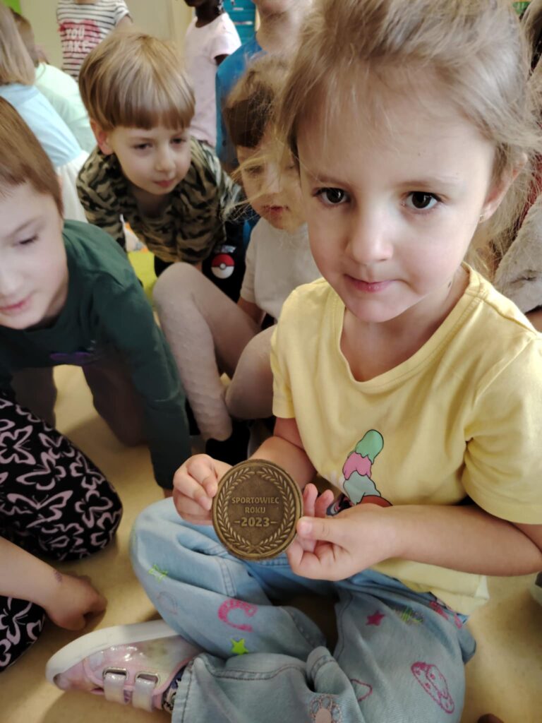 Pani Olena opowiedziała przedszkolakom o swoich sportowych pasjach, pokazała, jak wygląda codzienny trening, zaprezentowała potrzebny sprzęt, medale oraz puchary. Zaciekawione dzieci z zainteresowaniem zadawały pytania. Celem zajęć było zaprezentowanie przedszkolakom, jakie korzyści płyną z aktywnie spędzonego czasu i uprawiania sportu.