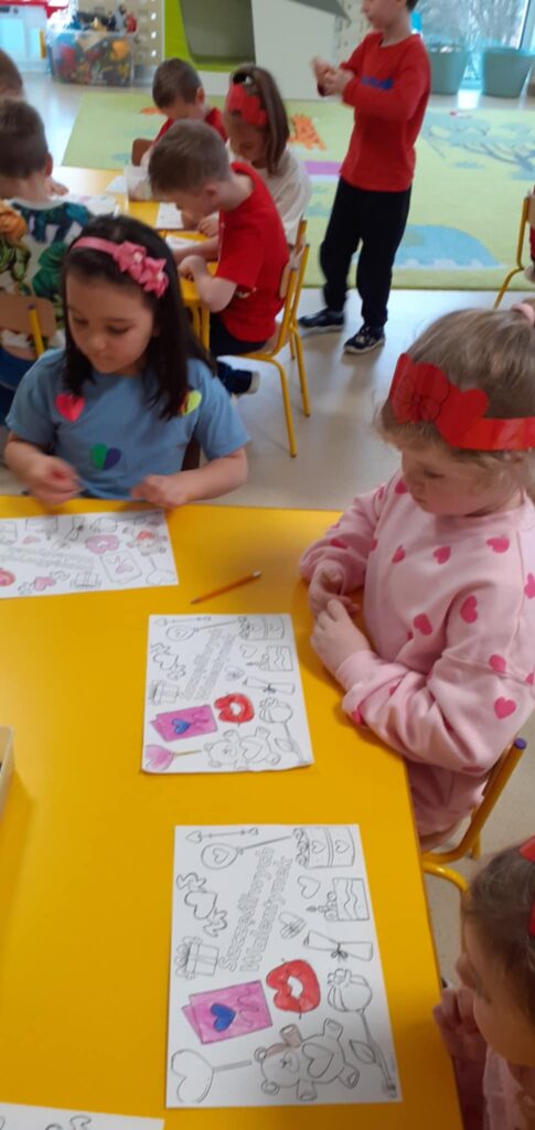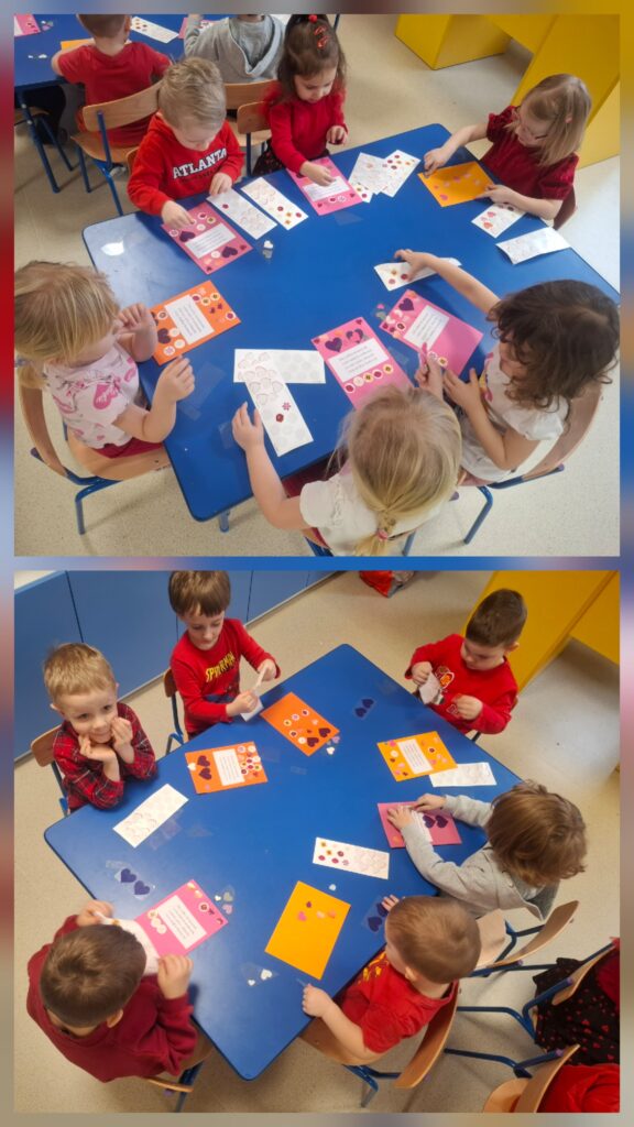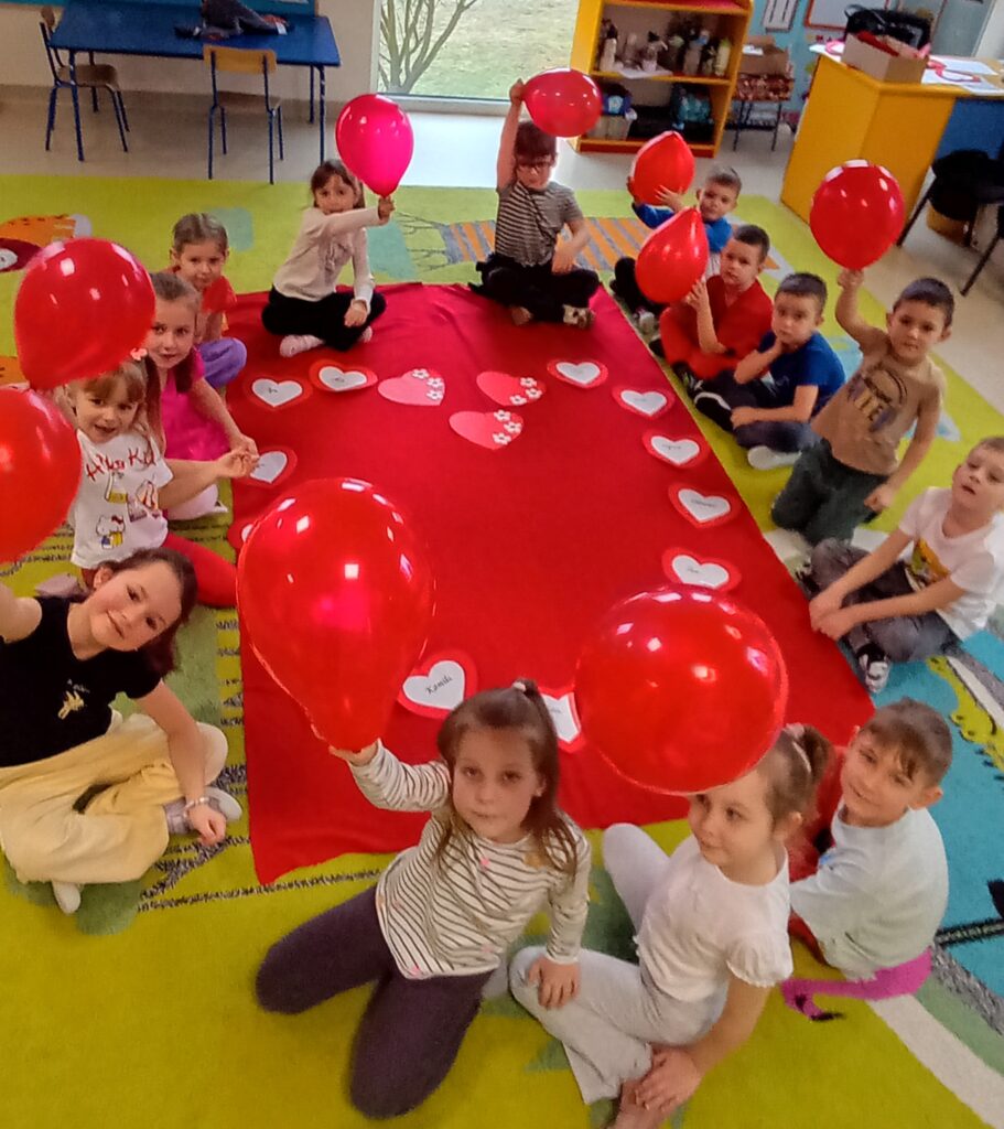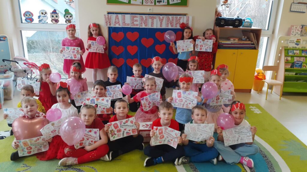 Walentynki to radosne i kolorowe święto, które ma na celu promowanie miłości, przyjaźni i życzliwości wśród maluchów. Dzieci w tym dniu przygotowywały własnoręcznie kartki walentynkowe dla swoich kolegów i koleżanek, ozdabiając je serduszkami, kolorowymi napisami lub naklejkami. Nie zabrakło również zabaw tematycznych oraz tańców w rytmie walentynkowych piosenek.