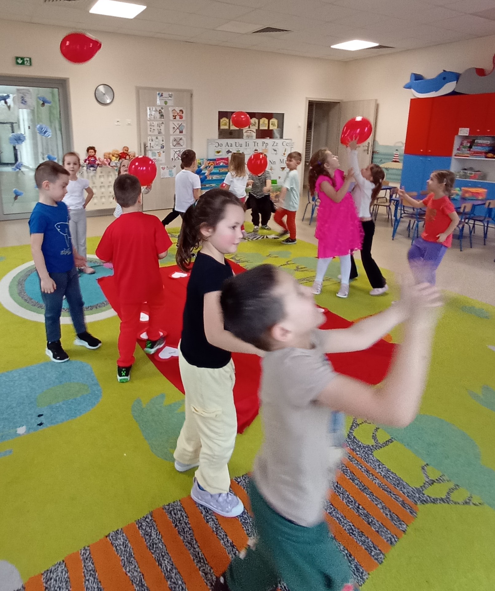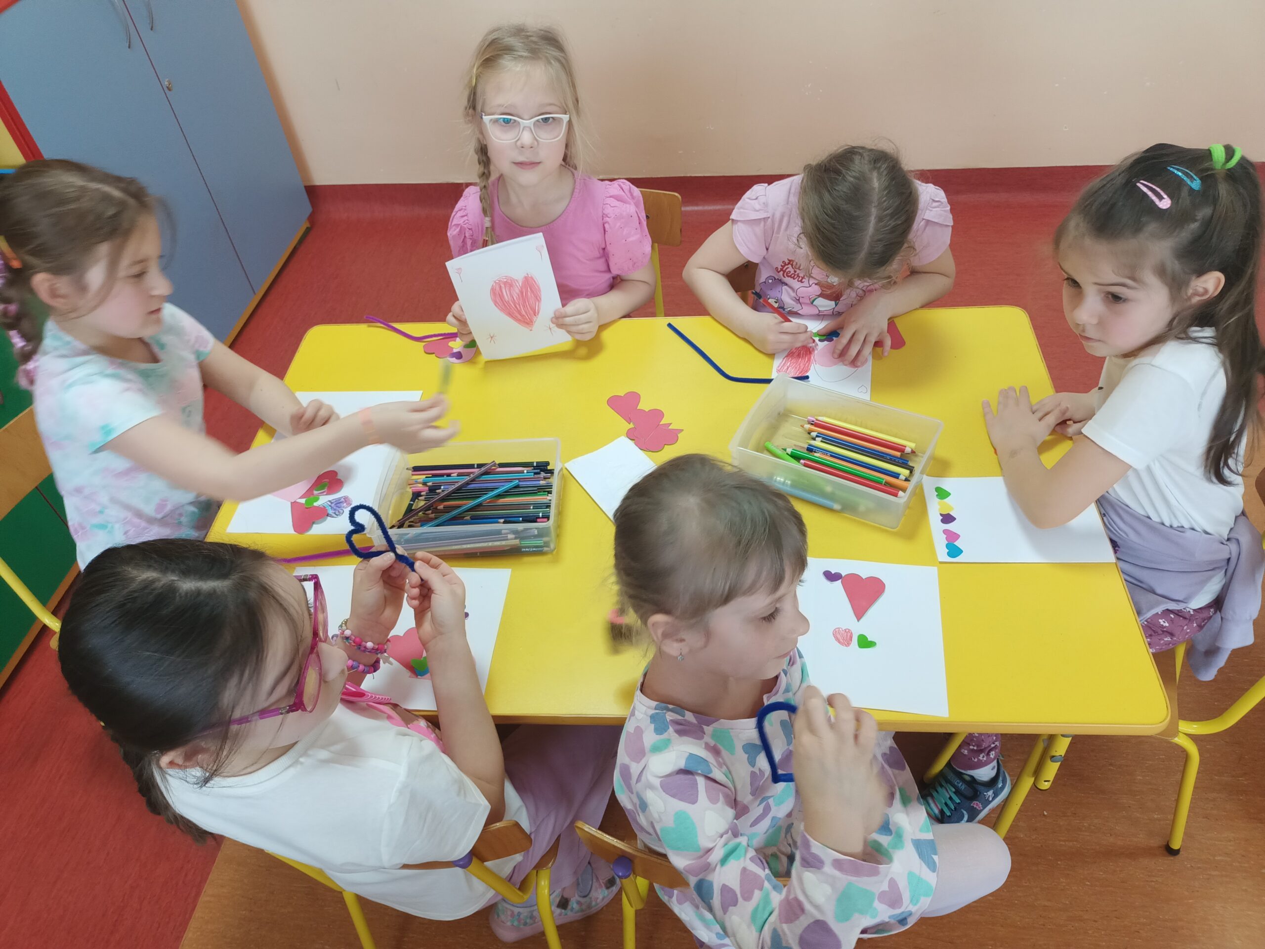 Walentynki to radosne i kolorowe święto, które ma na celu promowanie miłości, przyjaźni i życzliwości wśród maluchów. Dzieci w tym dniu przygotowywały własnoręcznie kartki walentynkowe dla swoich kolegów i koleżanek, ozdabiając je serduszkami, kolorowymi napisami lub naklejkami. Nie zabrakło również zabaw tematycznych oraz tańców w rytmie walentynkowych piosenek.