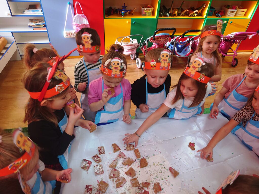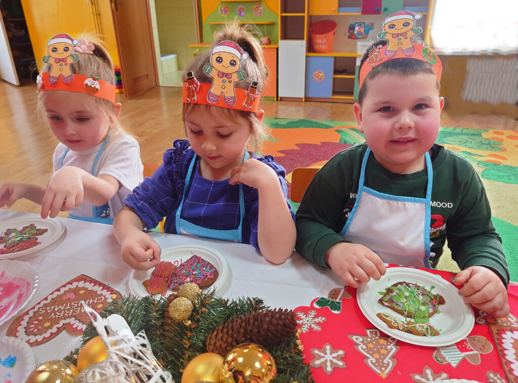 Warsztaty dekorowania pierników to dla przedszkolaków świetna zabawa, która sprawia wiele radości i wprowadza w świąteczny nastrój. W trakcie warsztatów dzieci poznały różne techniki zdobienia lukrem i kolorowymi posypkami, a także nauczyły się, jak tworzyć własne, oryginalne wzory. Pięknie ozdobione małe dzieła sztuki, dzieciaki zabrały ze sobą do domów.