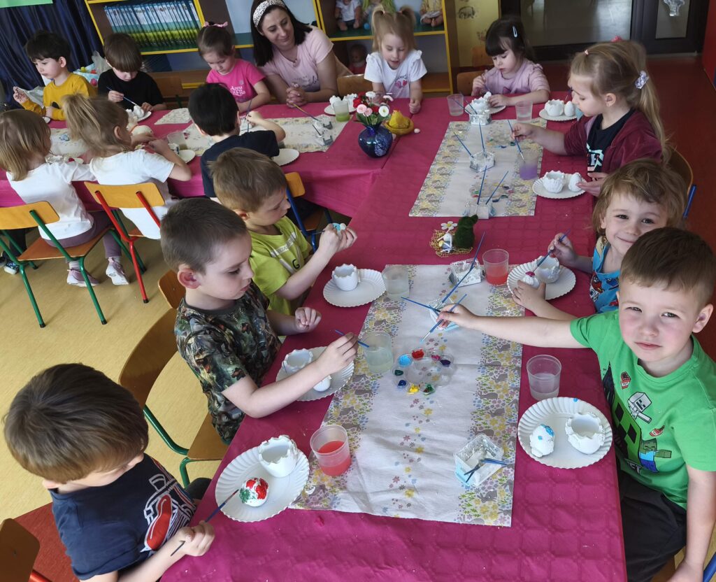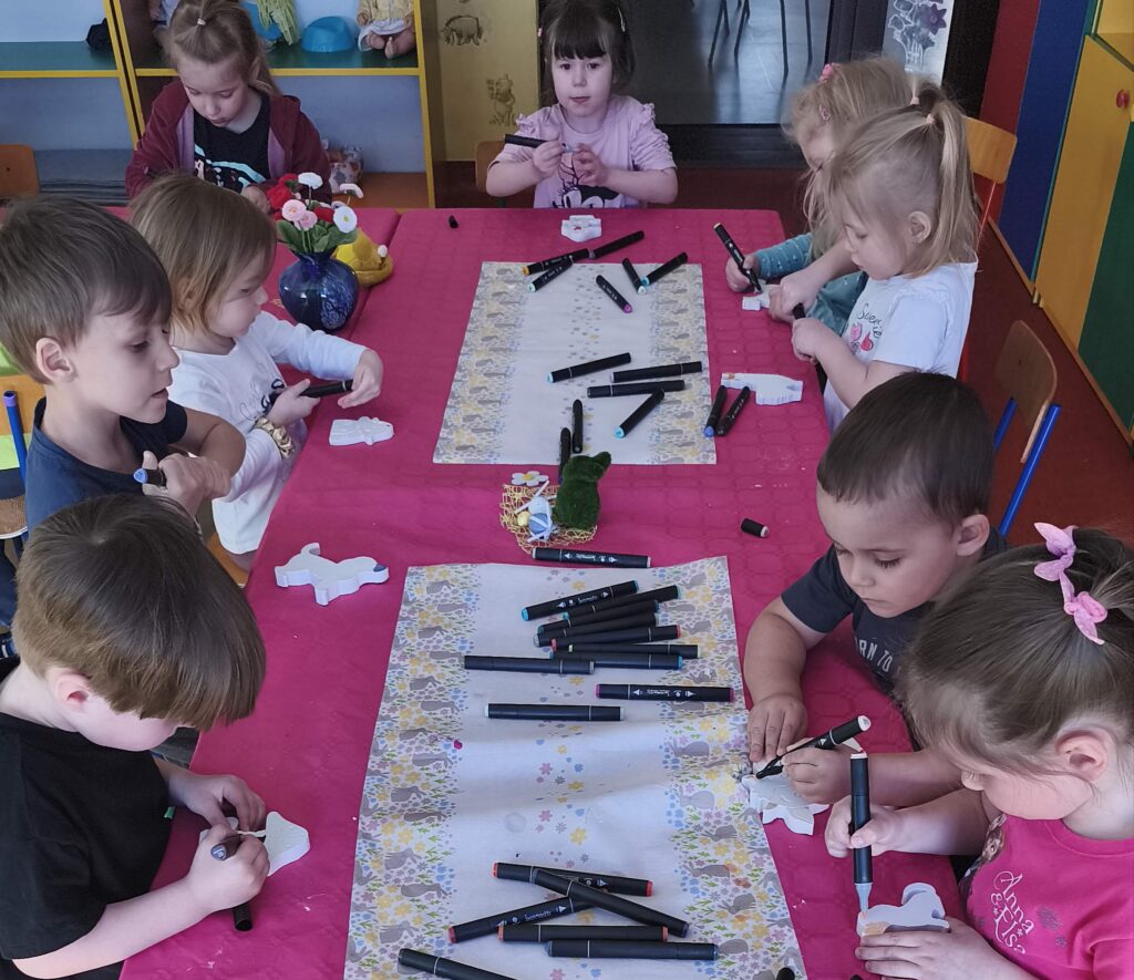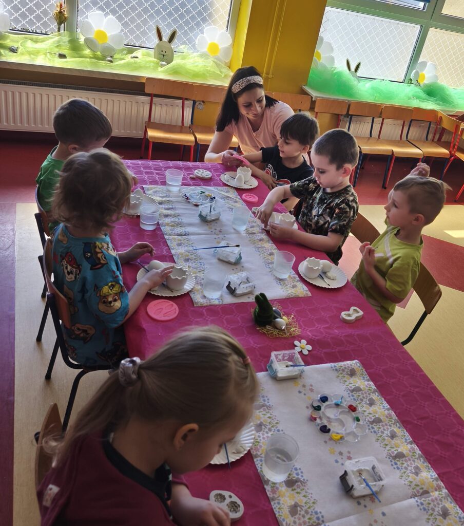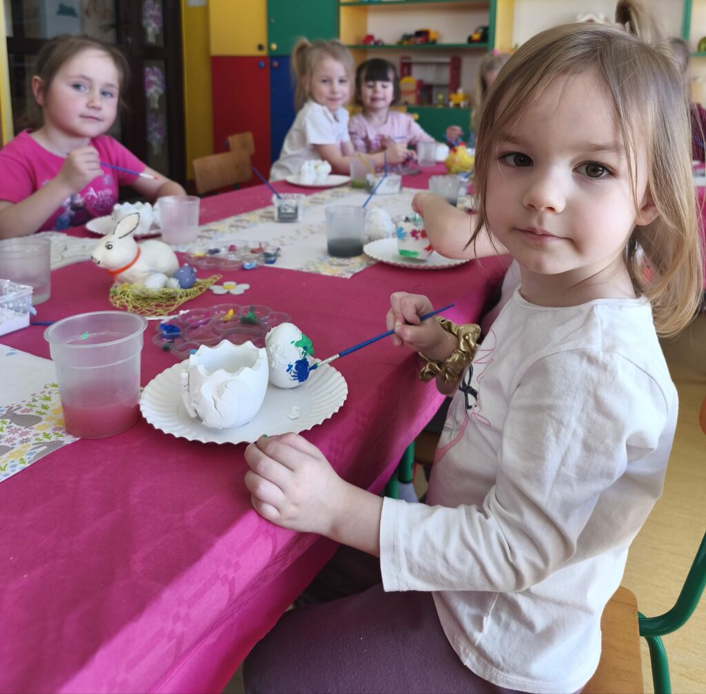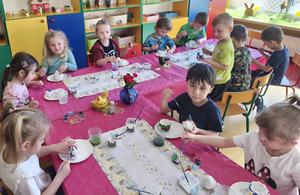 23 marca w grupie Sasanek odbyły się niezwykle kreatywne warsztaty plastyczne. Zajęcia z wykorzystaniem gipsu i gliny były znakomitą okazją, aby poprzez twórczą zabawę wprowadzić świąteczny nastrój . Własnoręcznie wykonane przez dzieci ozdoby, inspirowane Wielkanocą, sprzyjały rozwijaniu umiejętności plastycznych oraz były okazją do budowania poczucia sprawczości i dumy z własnej pracy.
