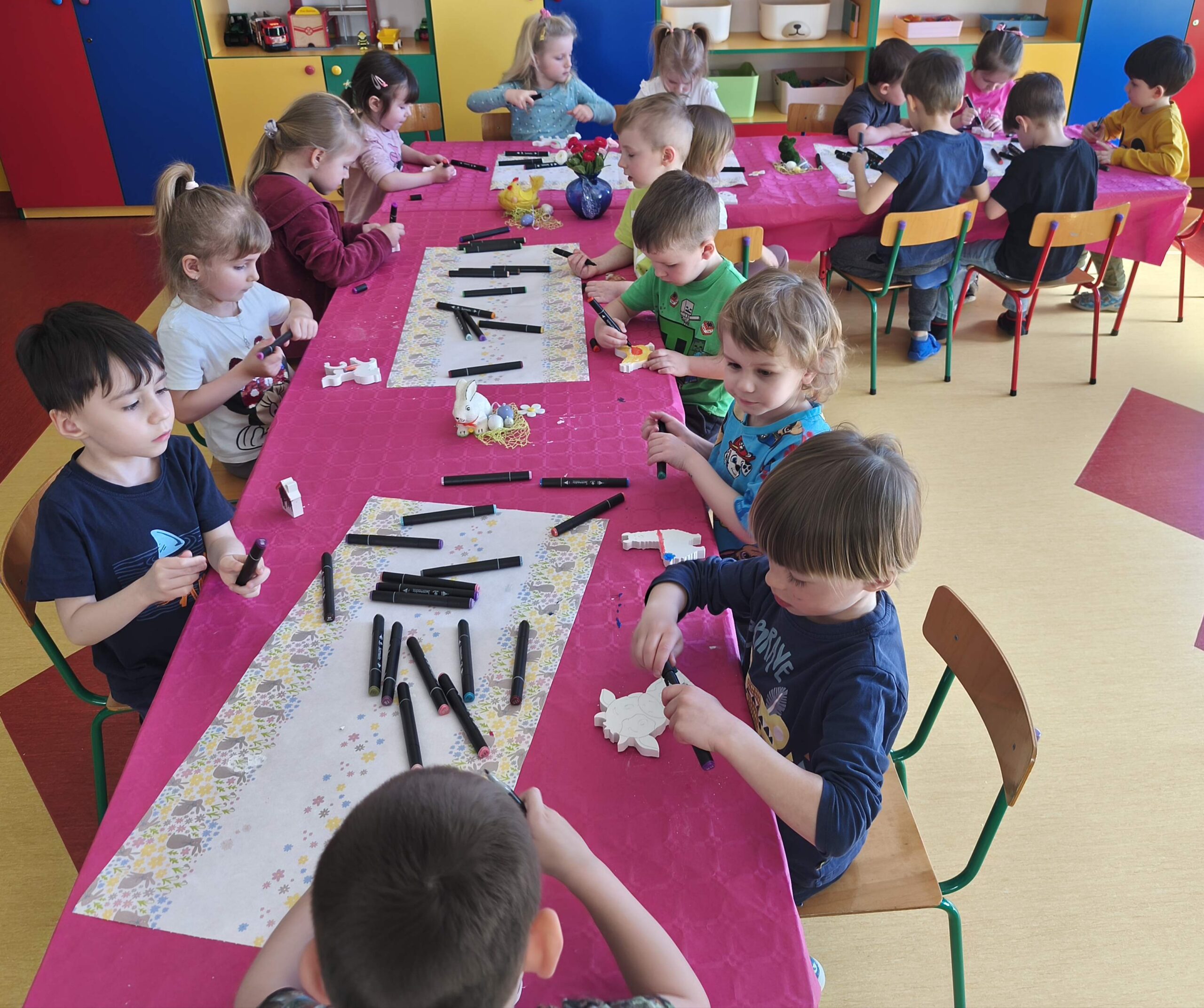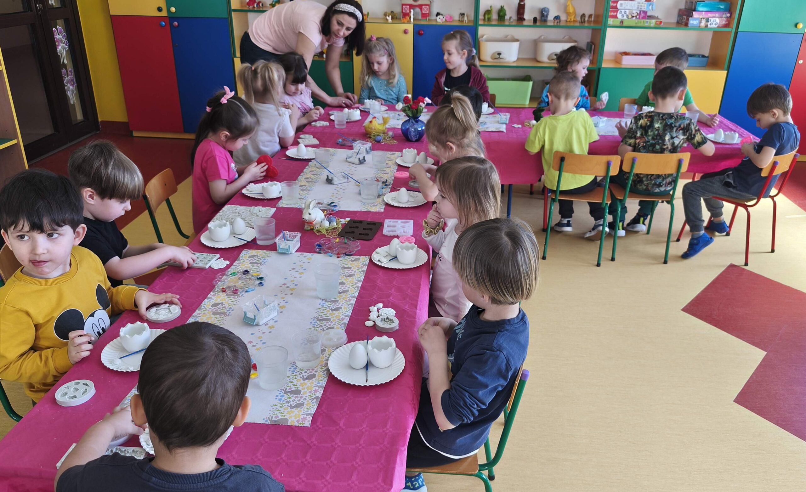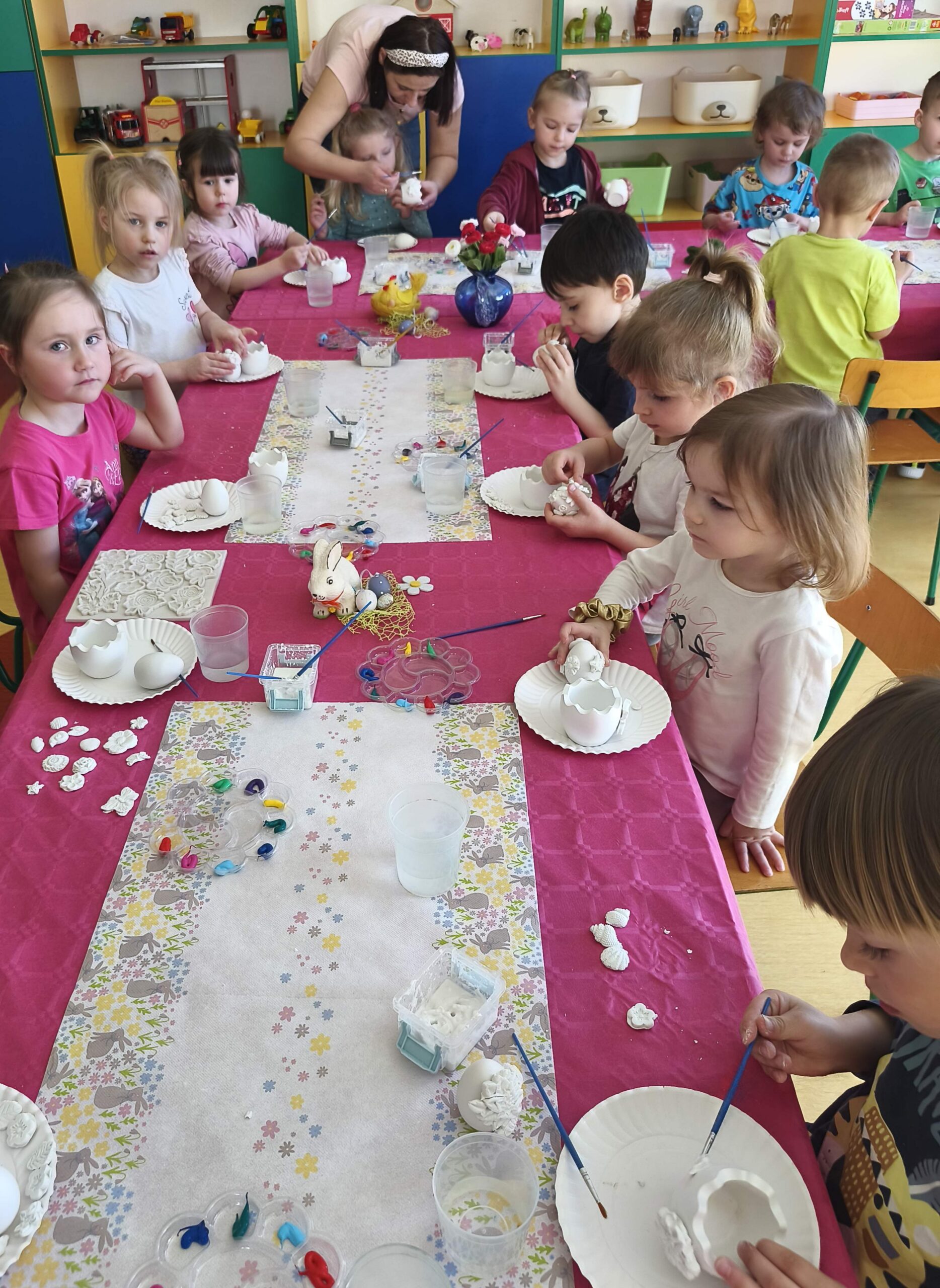 23 marca w grupie Sasanek odbyły się niezwykle kreatywne warsztaty plastyczne. Zajęcia z wykorzystaniem gipsu i gliny były znakomitą okazją, aby poprzez twórczą zabawę wprowadzić świąteczny nastrój . Własnoręcznie wykonane przez dzieci ozdoby, inspirowane Wielkanocą, sprzyjały rozwijaniu umiejętności plastycznych oraz były okazją do budowania poczucia sprawczości i dumy z własnej pracy.