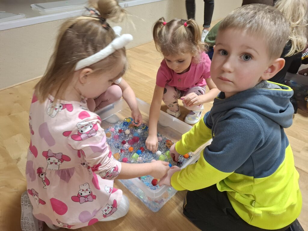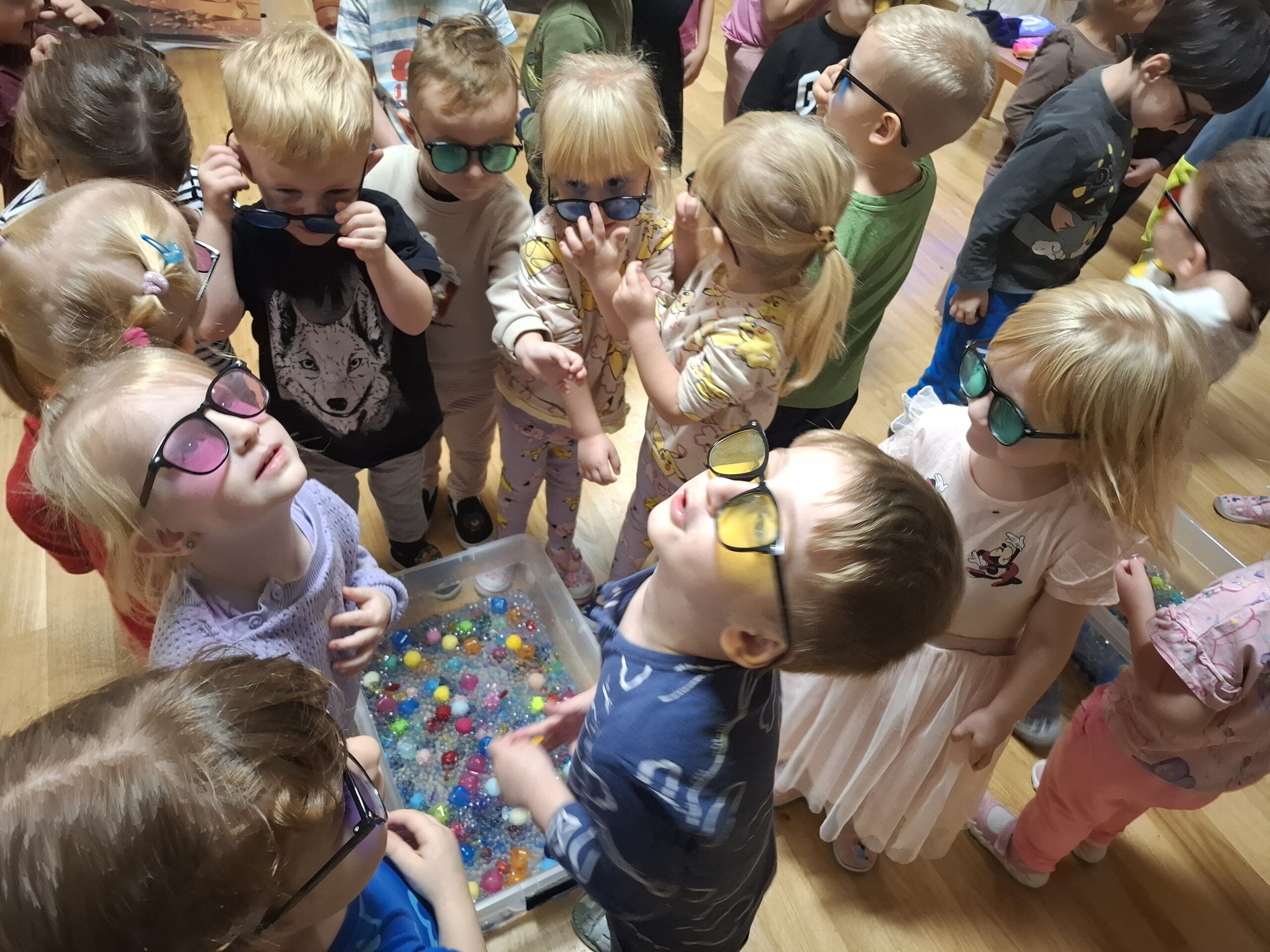 W połowie listopada naszym przedszkolu odbyły się bardzo ciekawe warsztaty sensoryczne, podczas których dzieci poprzez zabawę i doświadczenia stymulowały wszystkie zmysły (wzrok, słuch, dotyk, węch, a także równowagę). Udział w warsztatach był okazją do spojrzenia na świat z innej perspektywy co sprawił dzieciom wiele radości.