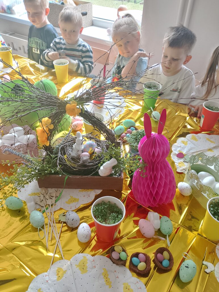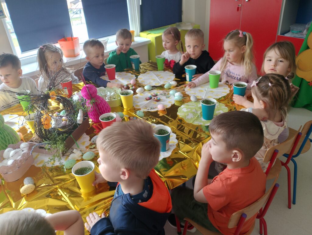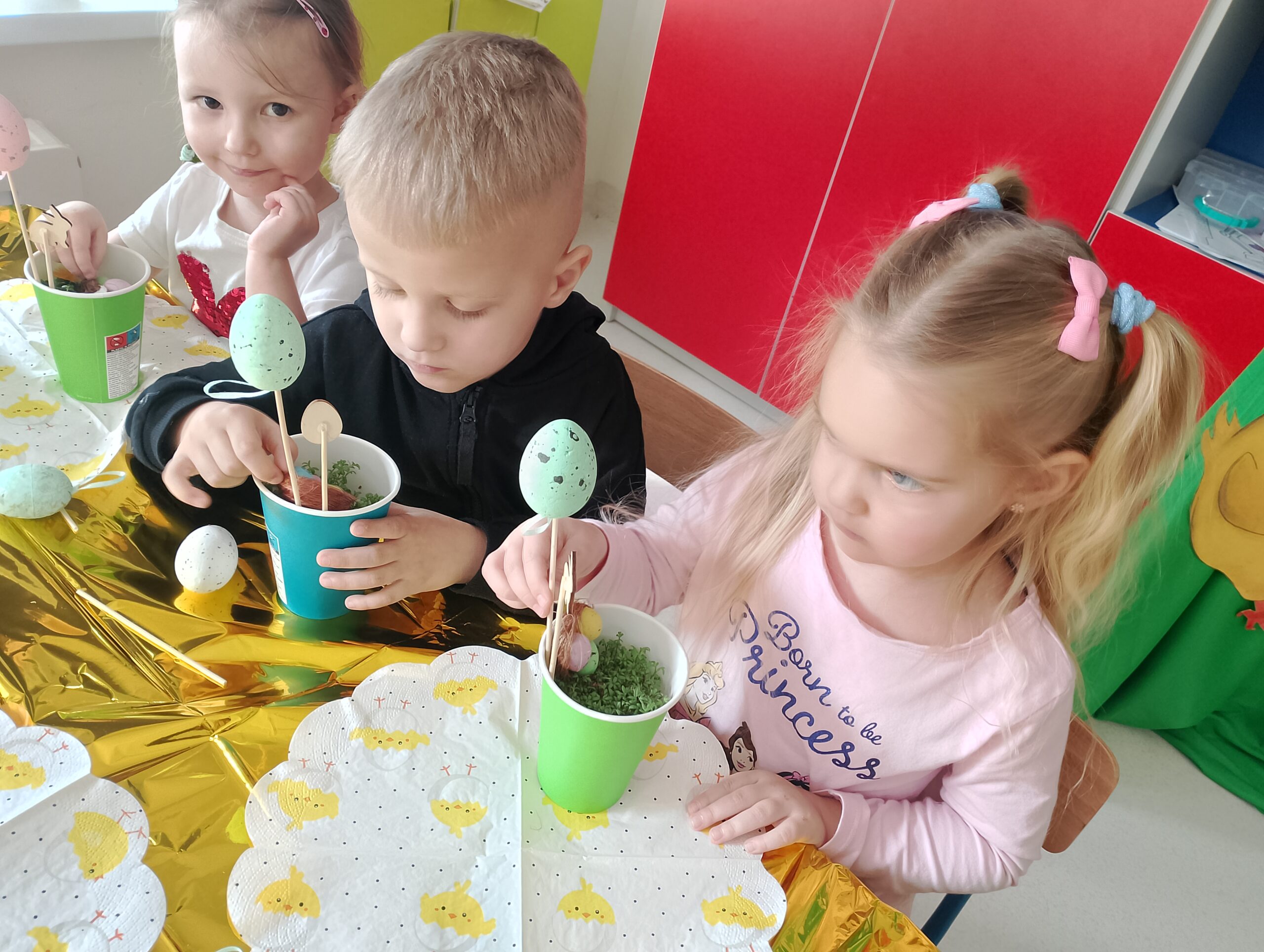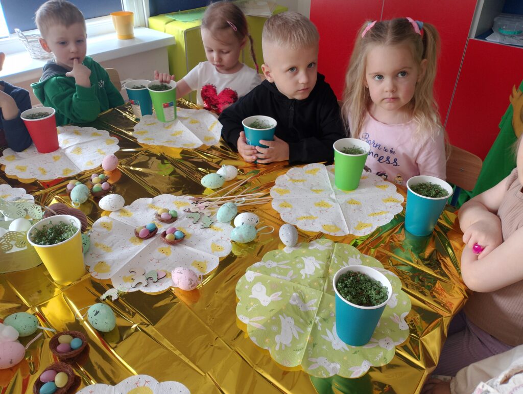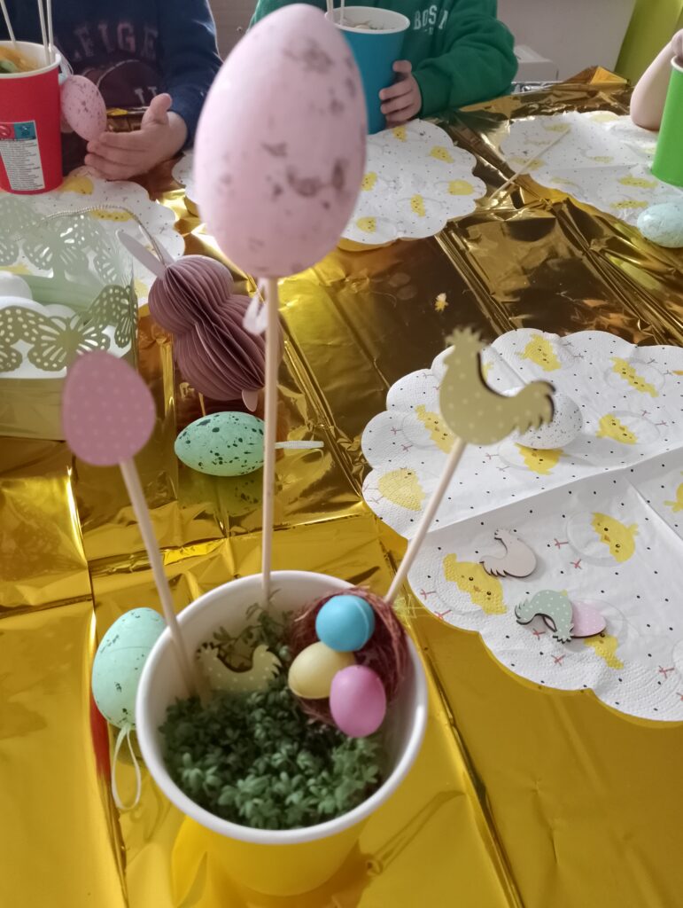 W świątecznej atmosferze radości i kreatywności grupa Maki wzięła udział w wyjątkowych warsztatach wielkanocnych. Był to czas wspólnej zabawy, rozwijania wyobraźni oraz poznawania tradycji związanych z Wielkanocą. Podczas zajęć uczestnicy z zaangażowaniem tworzyli piękne dekoracje świąteczne – kolorowe pisanki, stroiki oraz ozdoby inspirowane wiosną. Nie zabrakło także rozmów o symbolice Świąt Wielkanocnych oraz ich znaczeniu w polskiej tradycji.