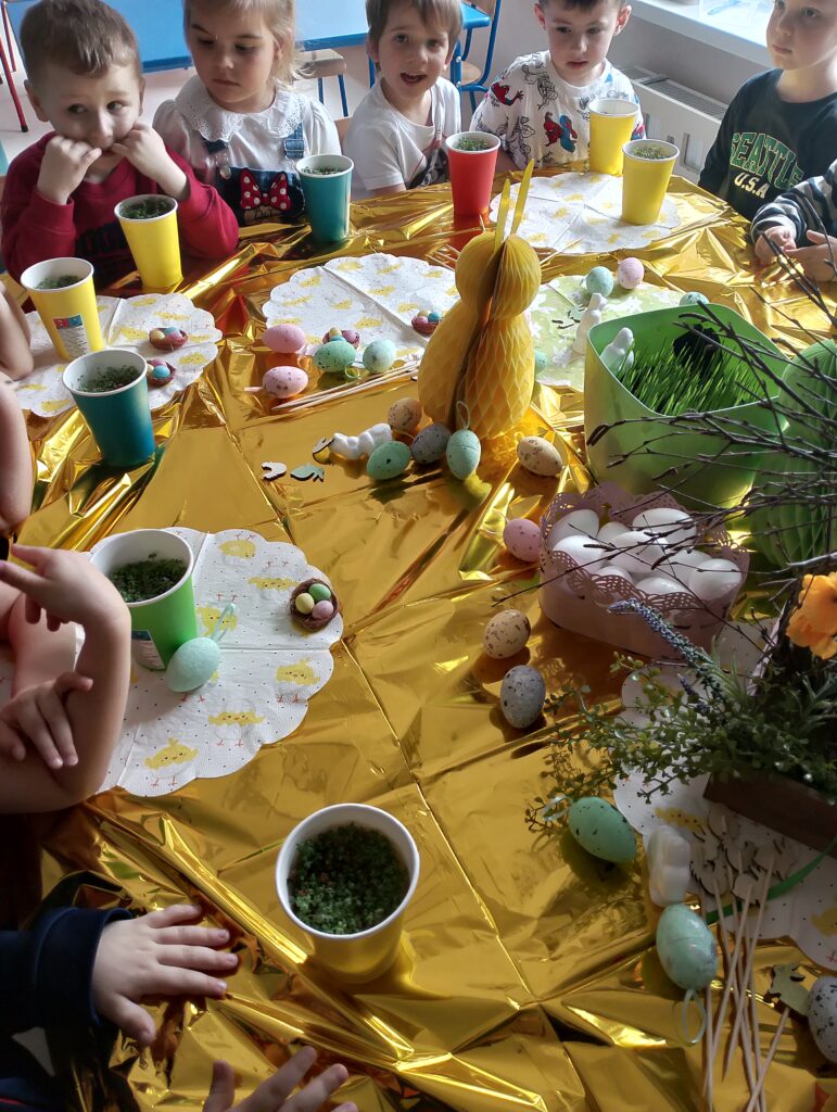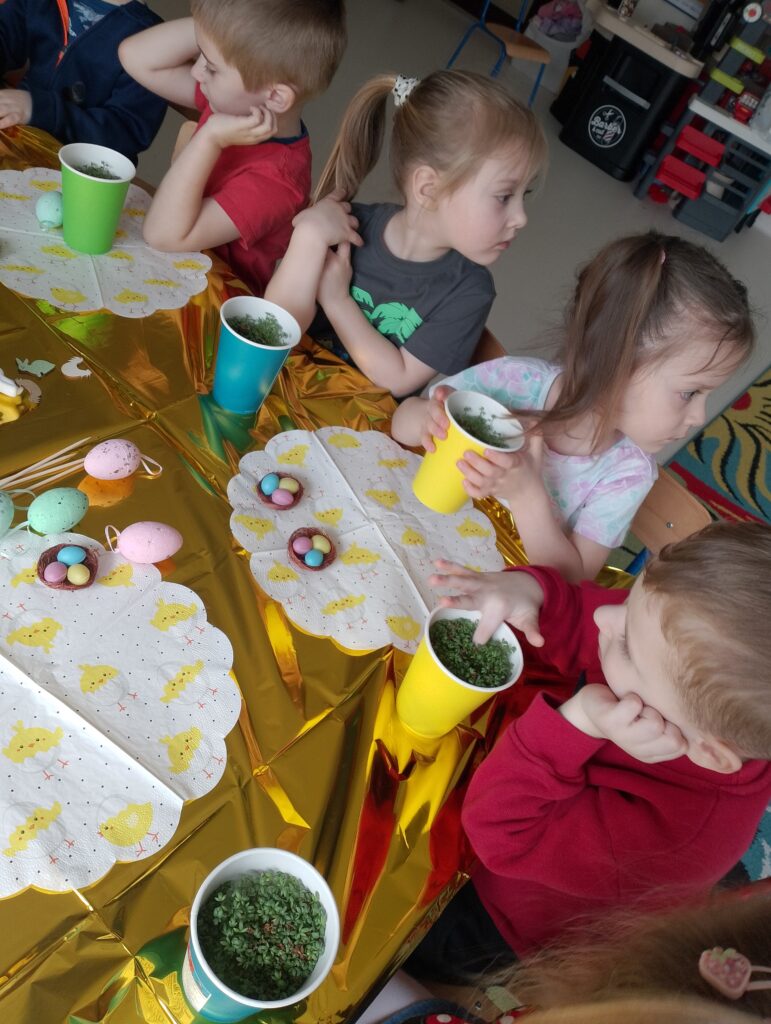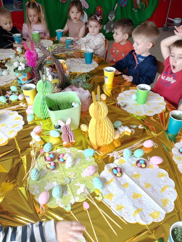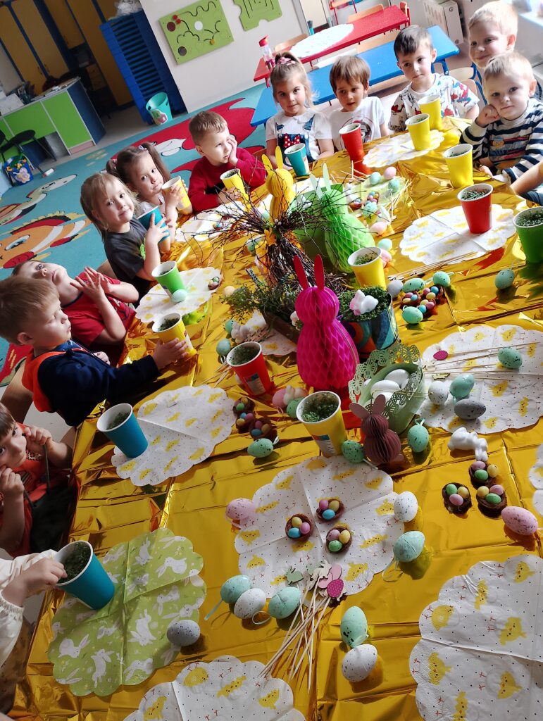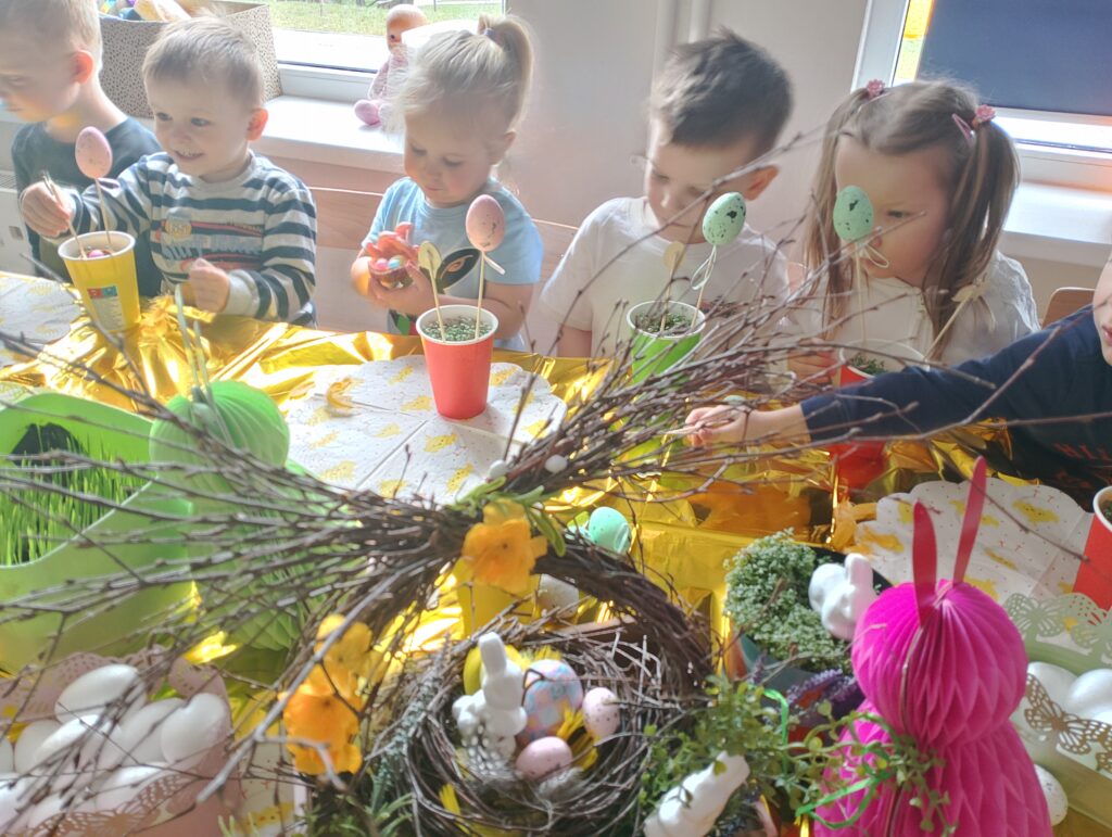 W świątecznej atmosferze radości i kreatywności grupa Maki wzięła udział w wyjątkowych warsztatach wielkanocnych. Był to czas wspólnej zabawy, rozwijania wyobraźni oraz poznawania tradycji związanych z Wielkanocą. Podczas zajęć uczestnicy z zaangażowaniem tworzyli piękne dekoracje świąteczne – kolorowe pisanki, stroiki oraz ozdoby inspirowane wiosną. Nie zabrakło także rozmów o symbolice Świąt Wielkanocnych oraz ich znaczeniu w polskiej tradycji.