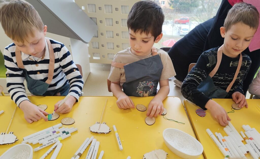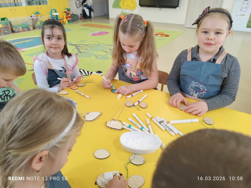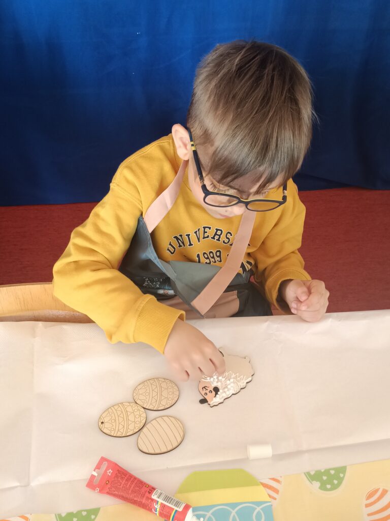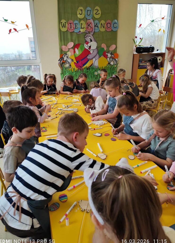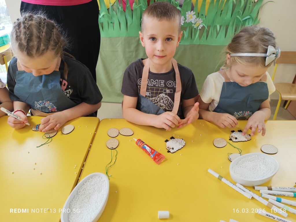 Podczas zajęć dzieci rozwijały swoją kreatywność i zdolności manualne, wykonując własnoręcznie ozdoby wielkanocne do koszyczka za pomocą różnych technik. Przedszkolaki z wielkim zapałem