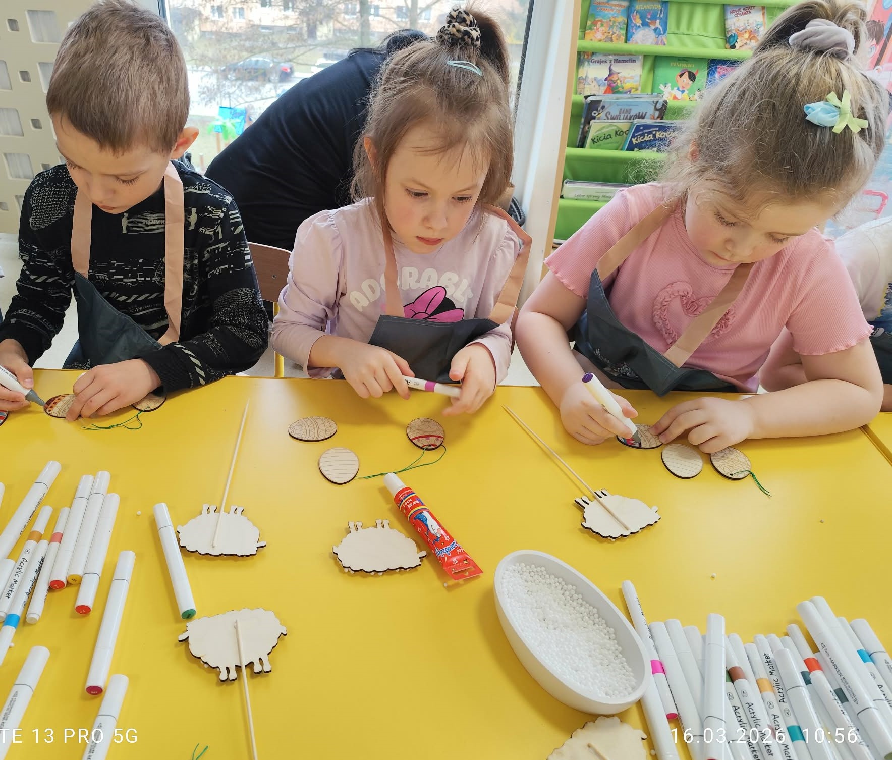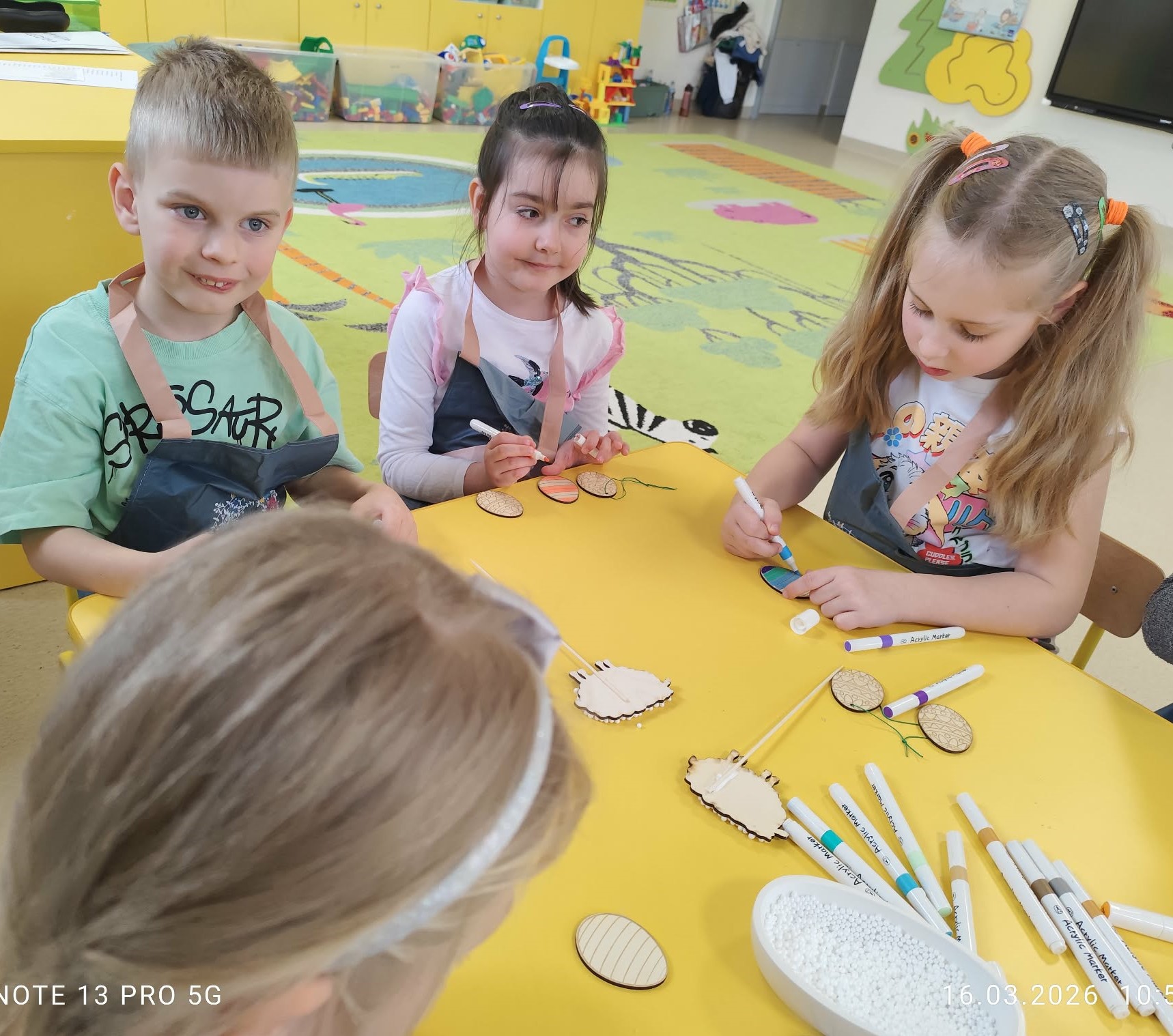 Podczas zajęć dzieci rozwijały swoją kreatywność i zdolności manualne, wykonując własnoręcznie ozdoby wielkanocne do koszyczka za pomocą różnych technik. Przedszkolaki z wielkim zapałem